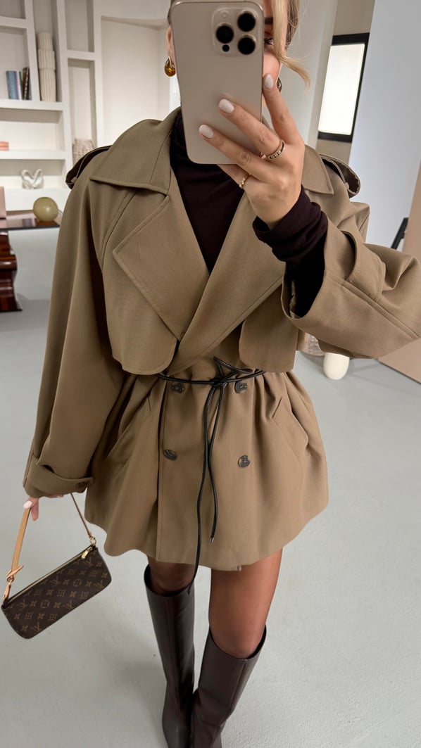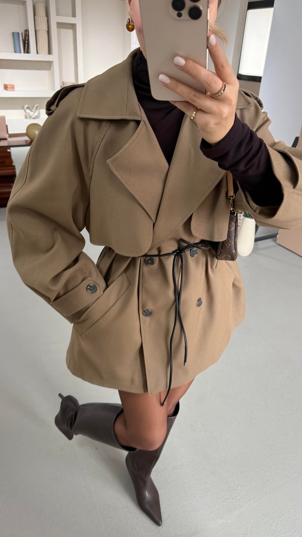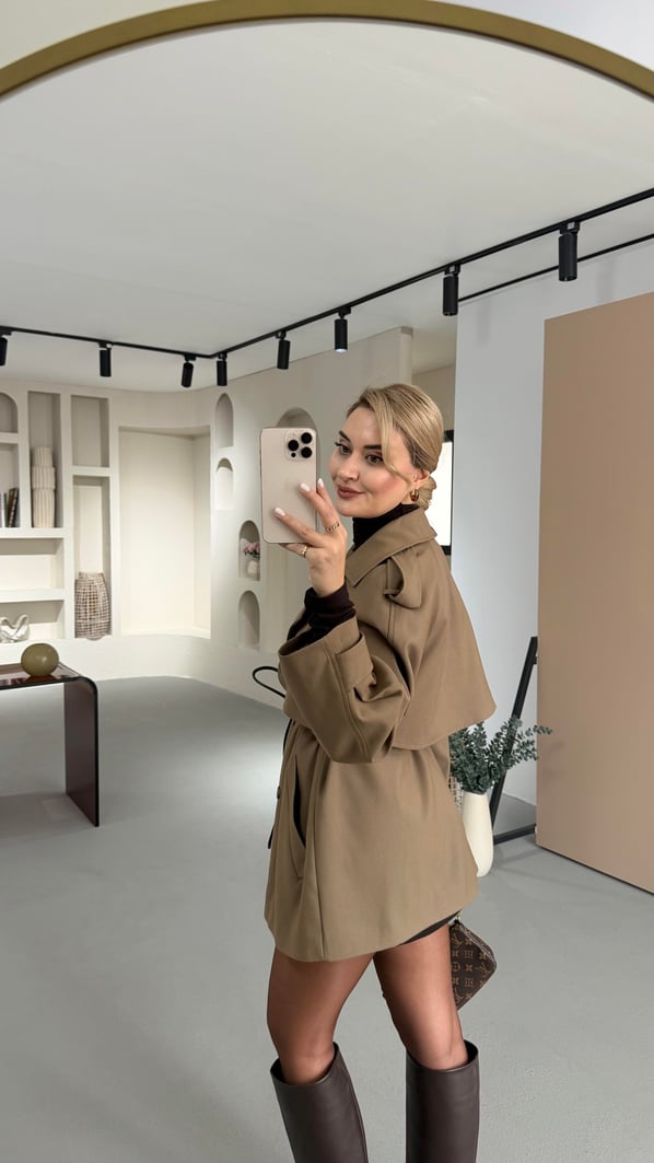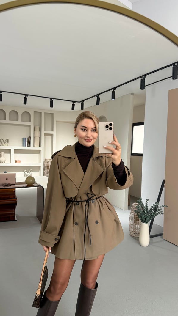 Allerli Deri Kemer Detay Camel Trenç (TRNÇ-0016-CML)