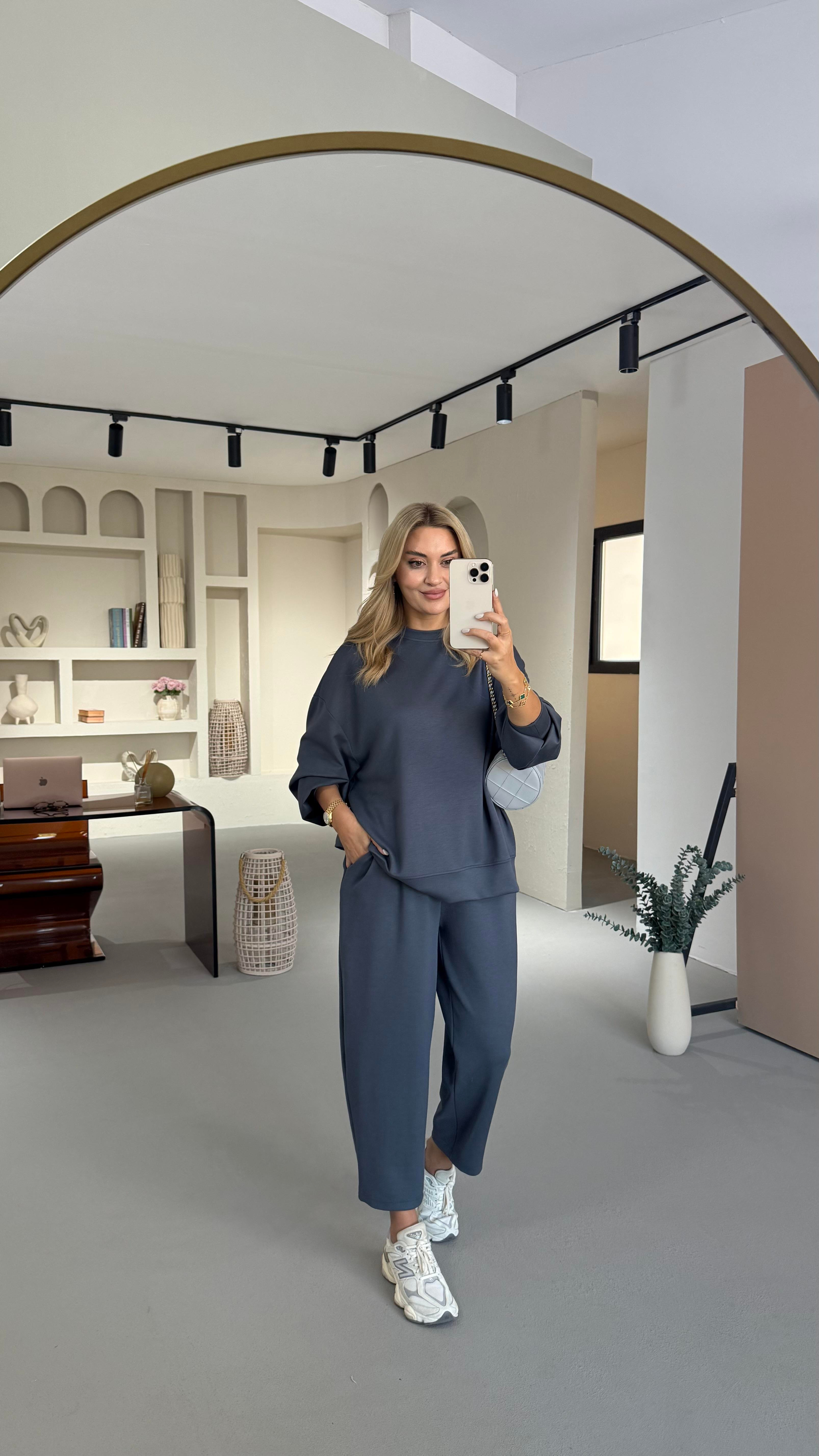 Antrasit Slouchy Pantolon Sweat Modal Takım (TKM-0158-ANT)