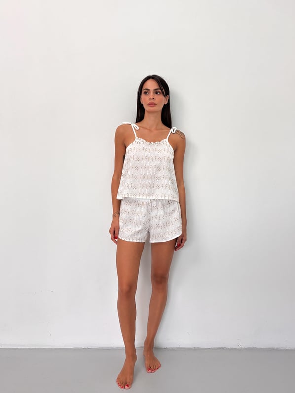 Askısı Ayarlanabilir Şortlu Vizon Fisto Pijama Takımı