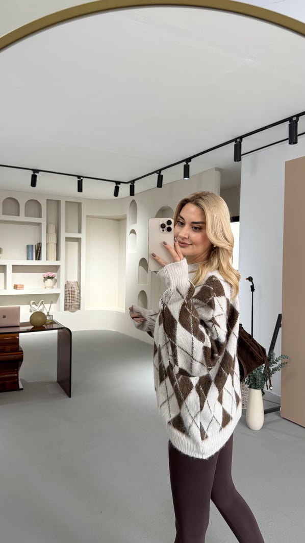 Baklava Desen Krem Yumuşak Dokulu Hırka