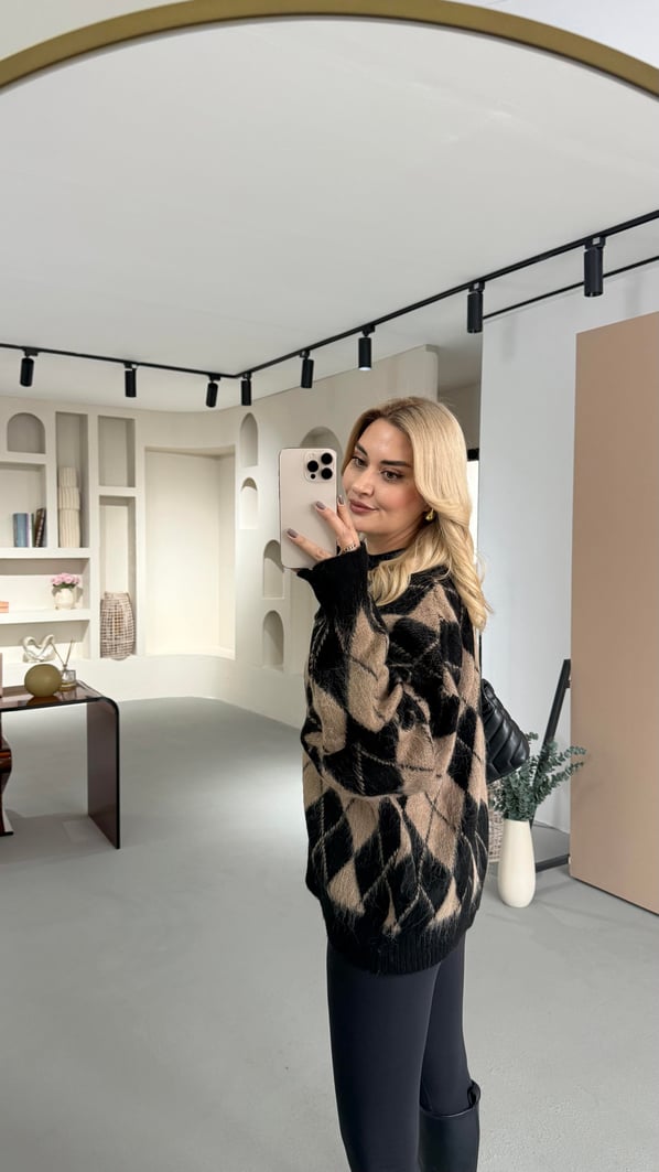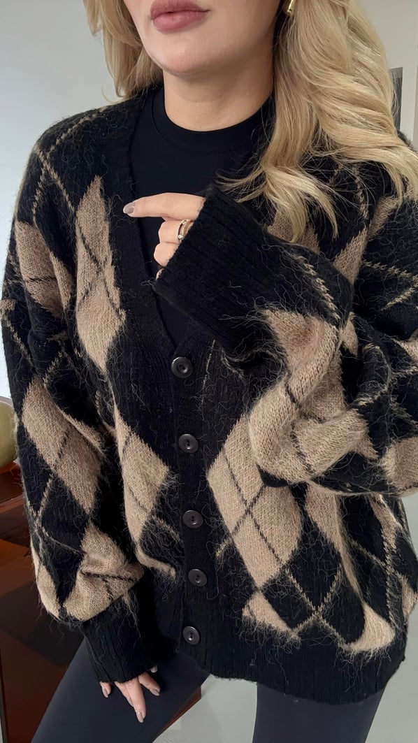 Baklava Desen Siyah Yumuşak Dokulu Hırka