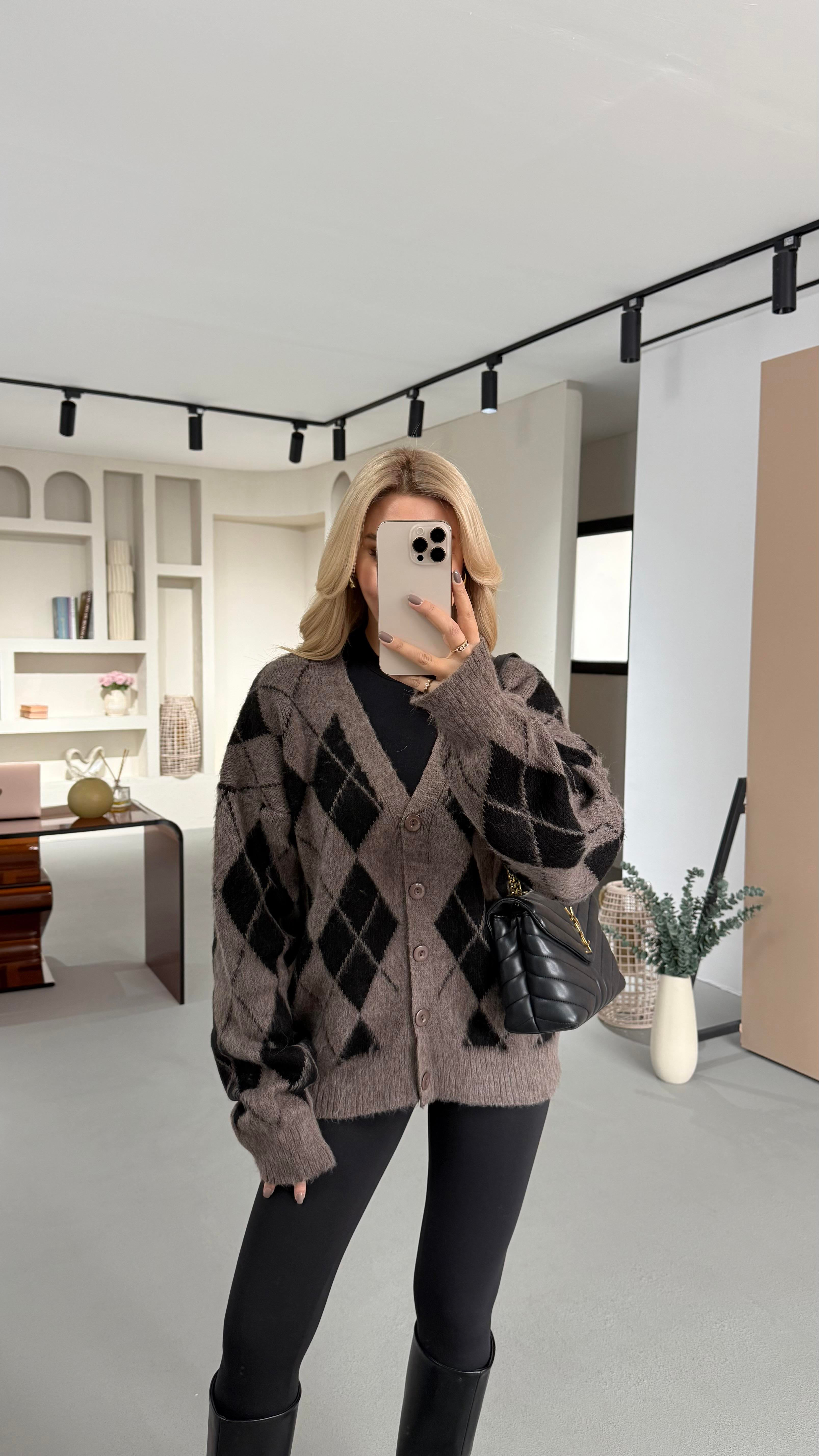 Baklava Desen Vizon Yumuşak Dokulu Hırka