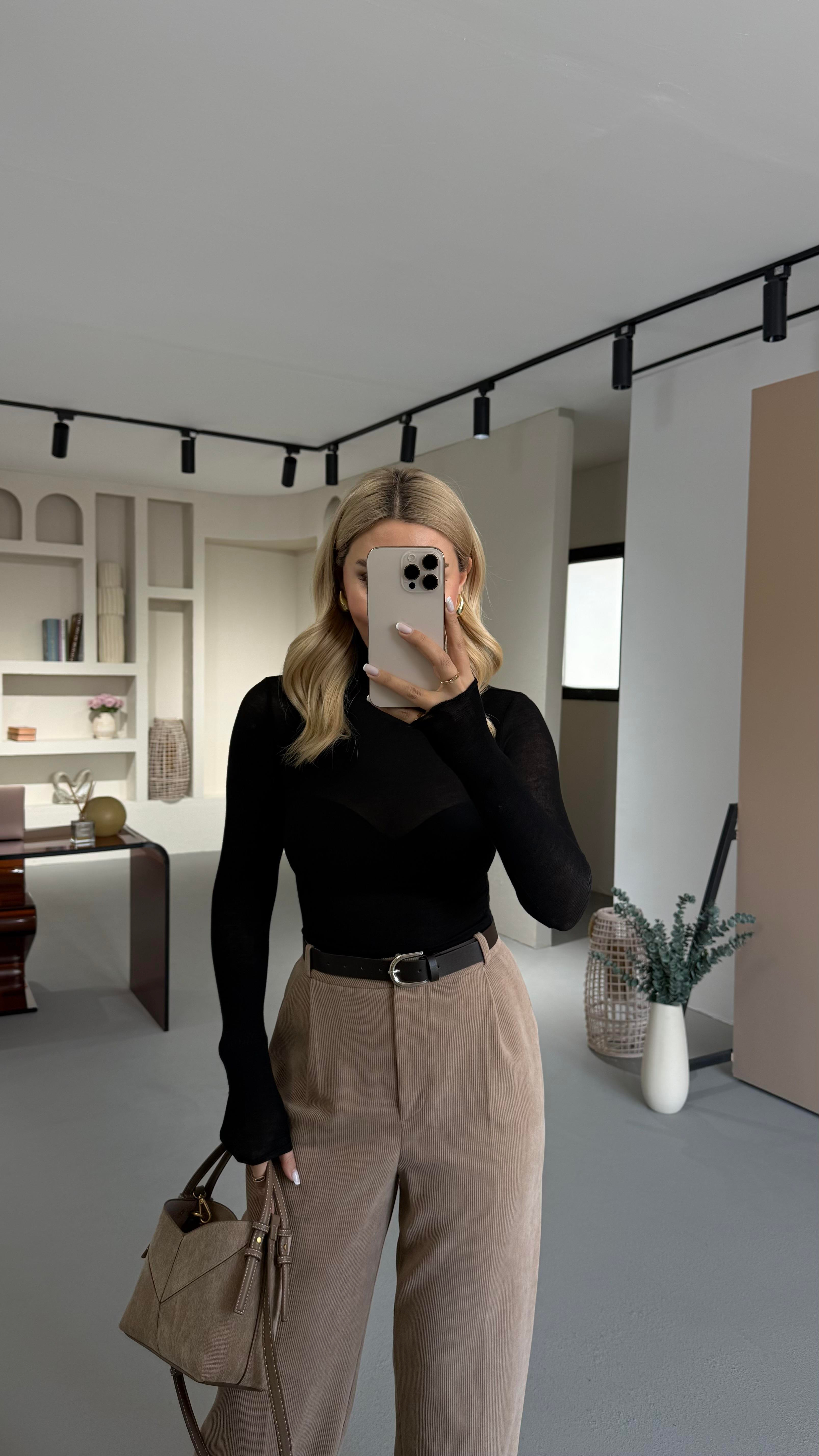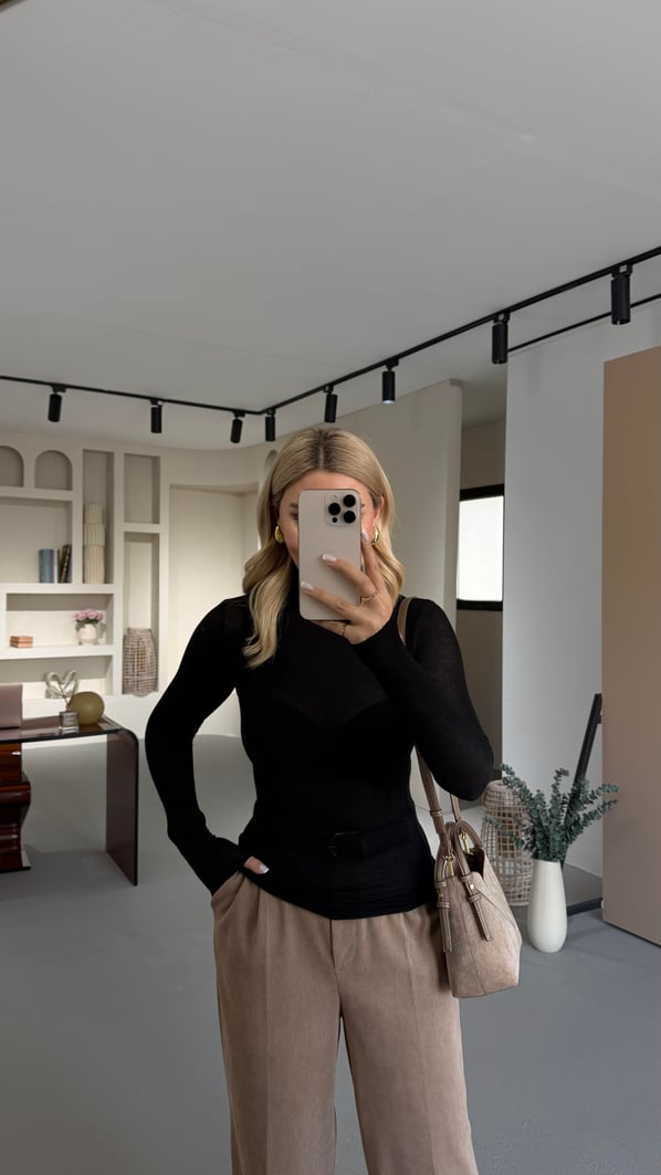 Balıkçı Yaka Siyah Transparan Bluz