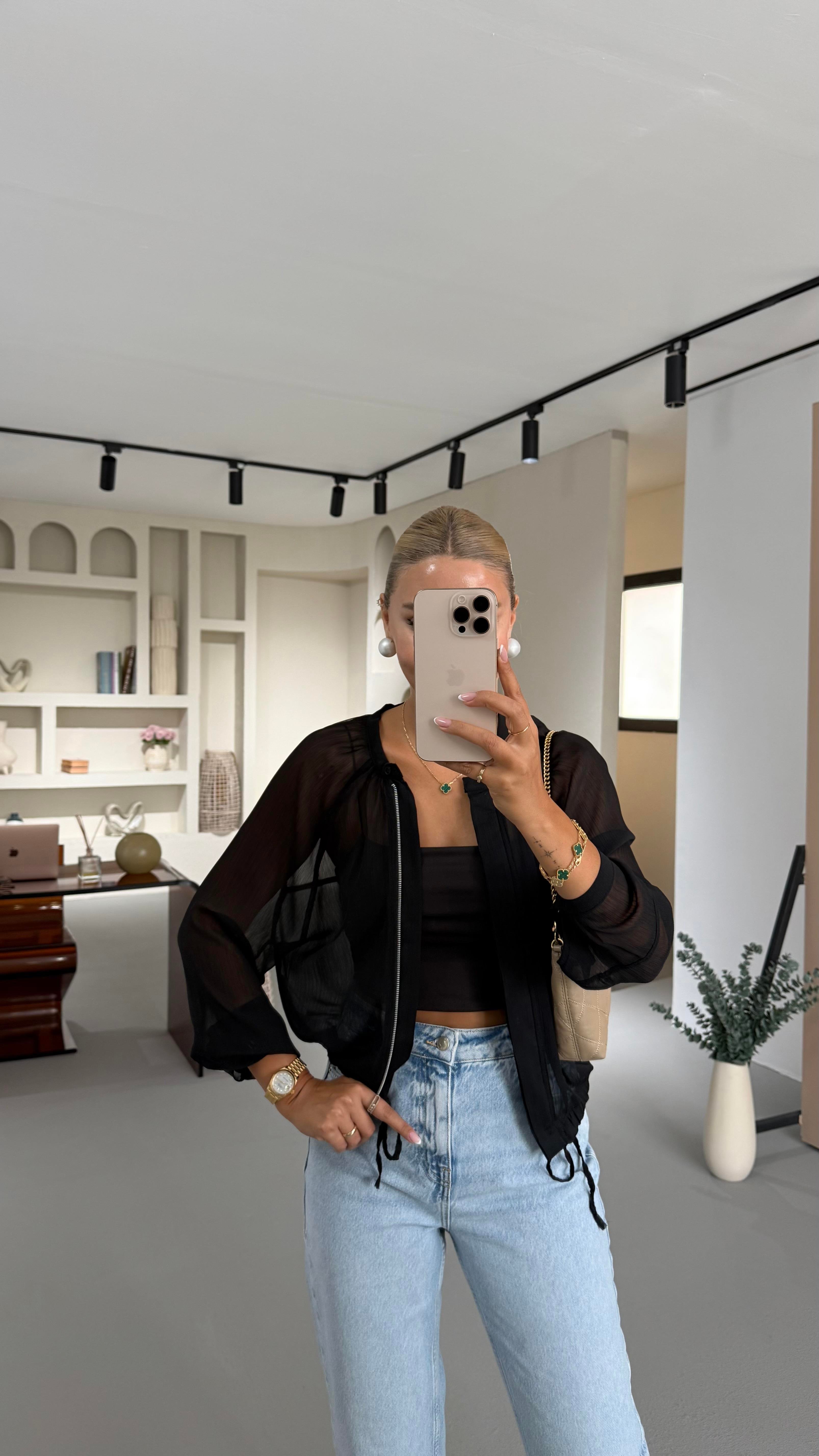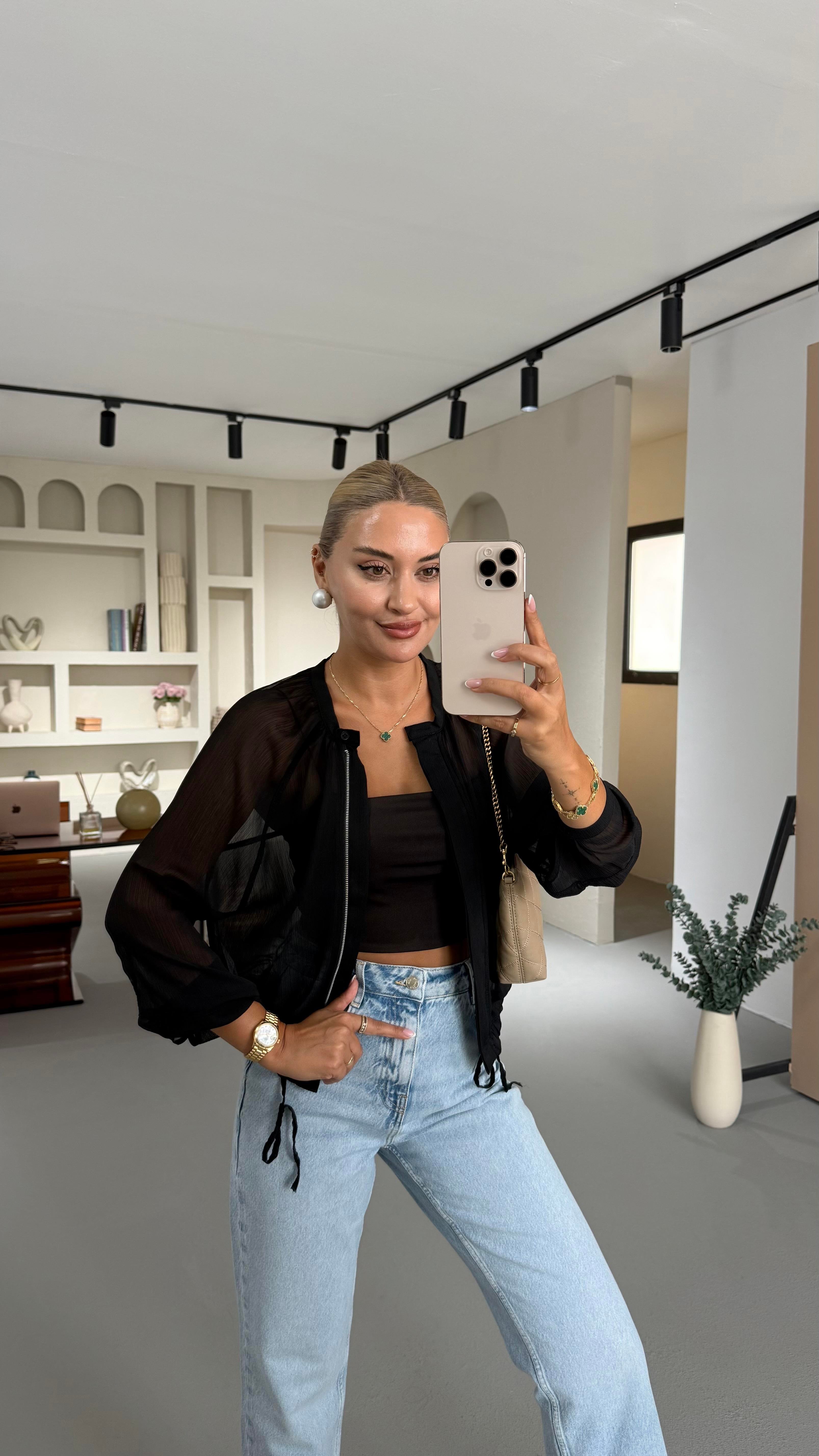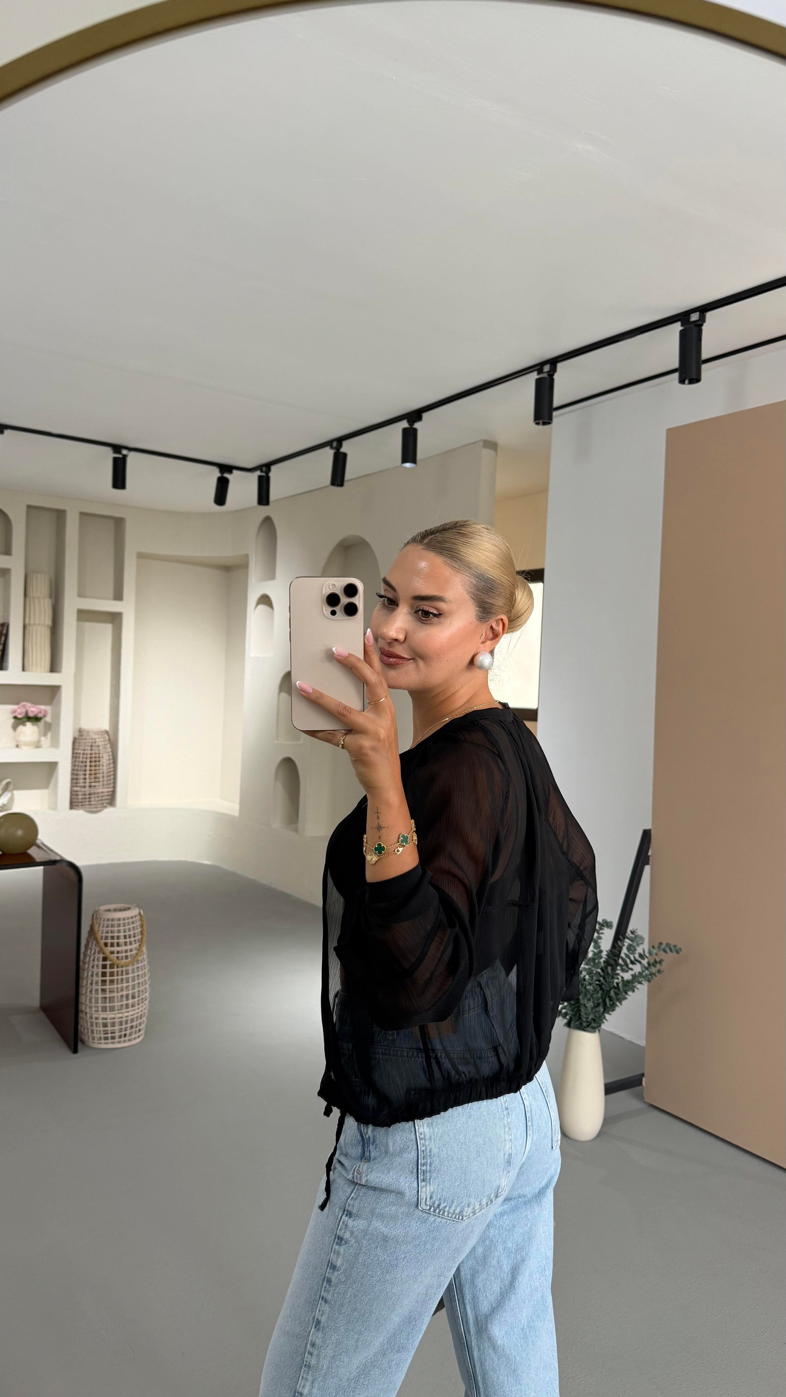 Bel Büzgülü Siyah Şifon Ceket (CKT-0167-SYH)