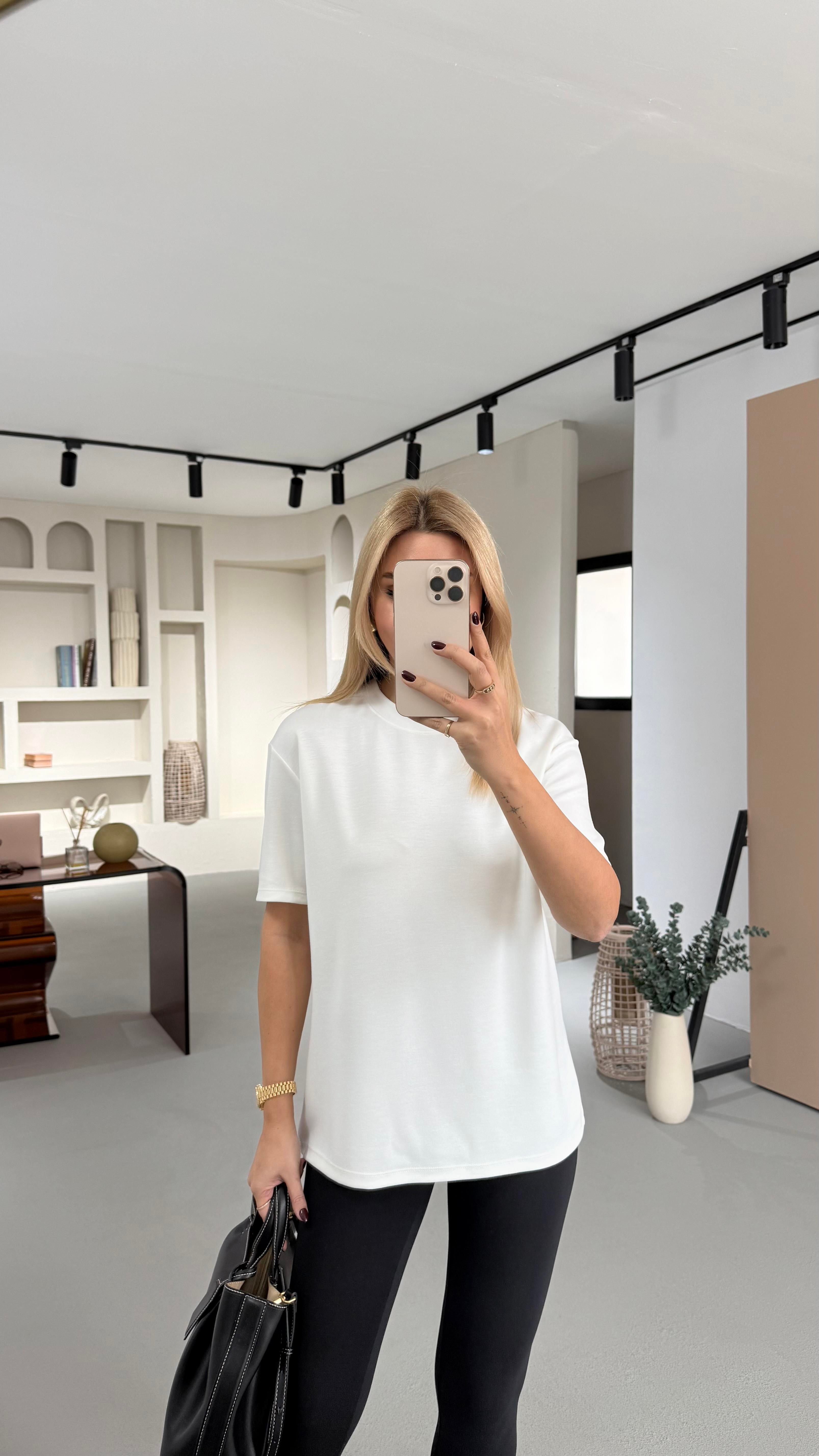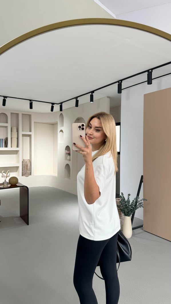Bisiklet Yaka Ekru Oversize Tok Modal Basic Tshirt