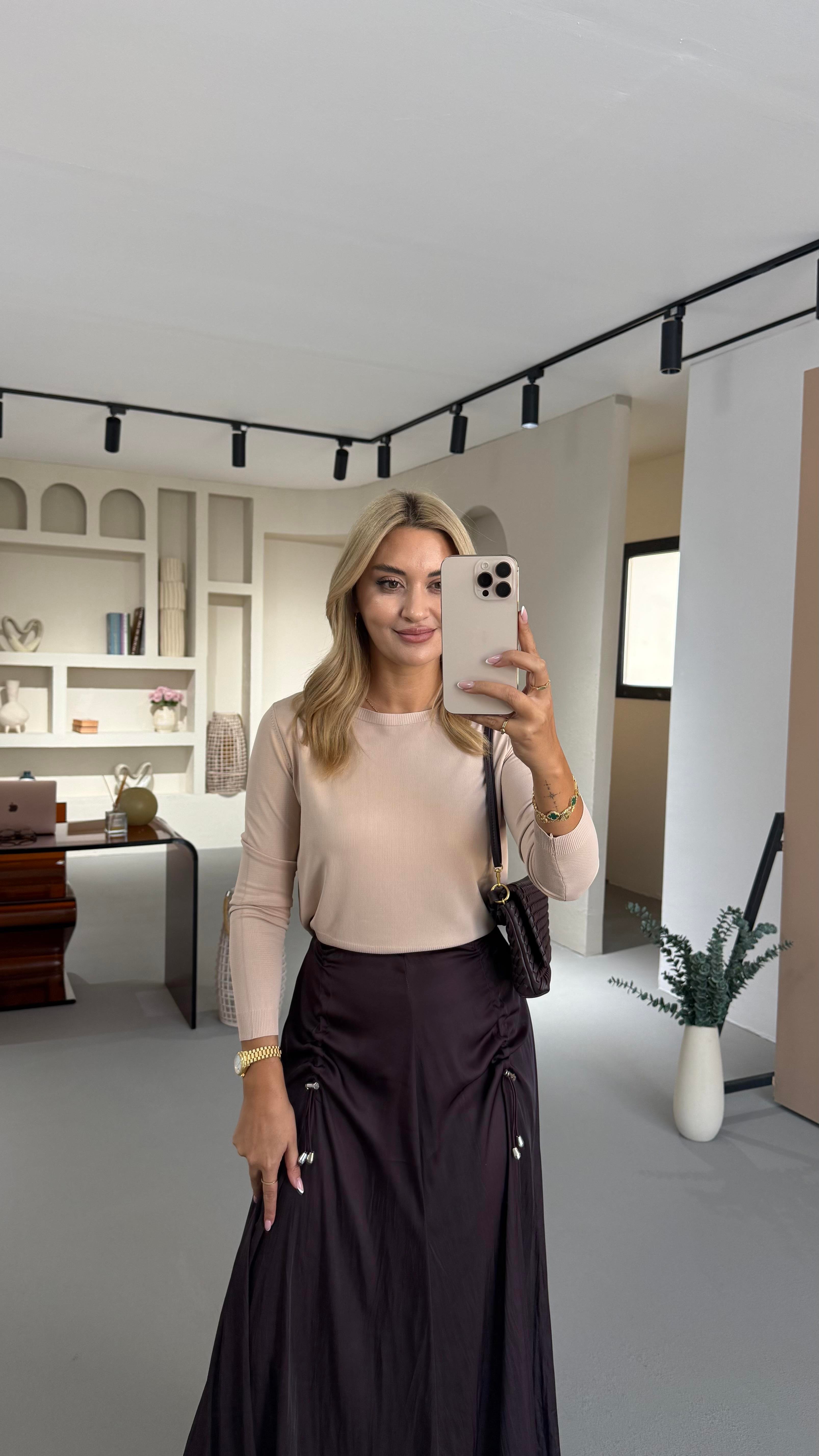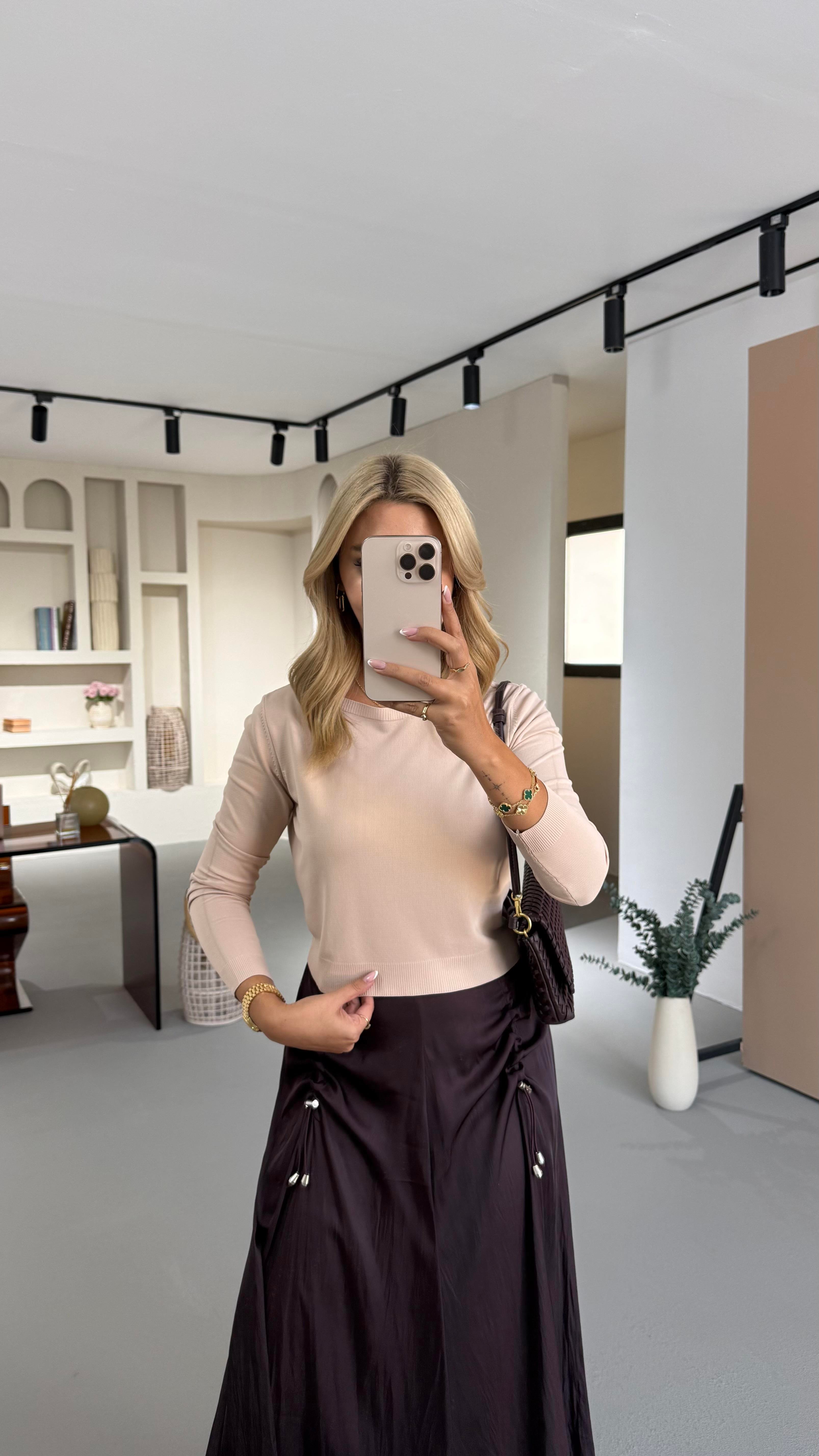 Bisiklet Yaka Uzun Kol Bej Basic Triko (TRK-0158-BEJ)