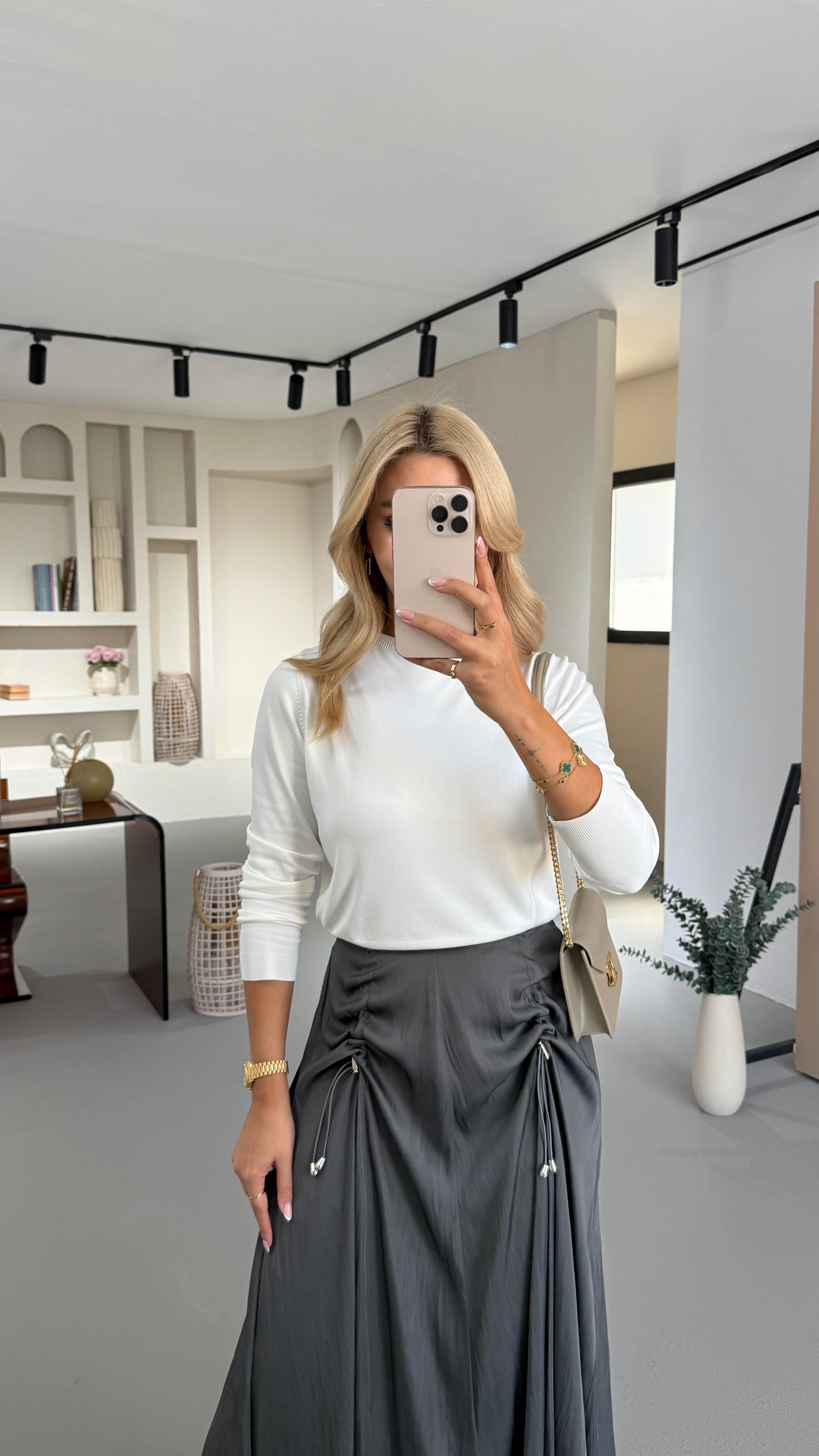 Bisiklet Yaka Uzun Kol Ekru Basic Triko