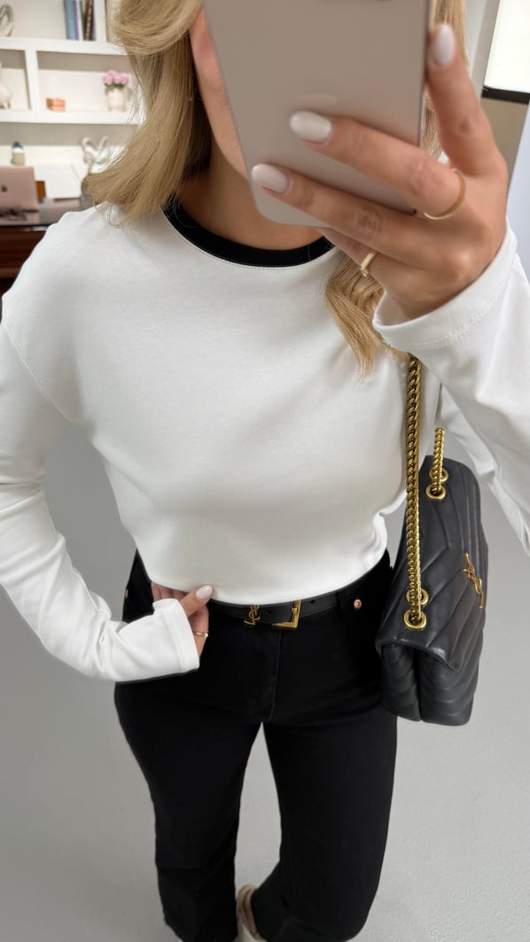 Biye Detay Beyaz Uzun Kol Basic Sweat