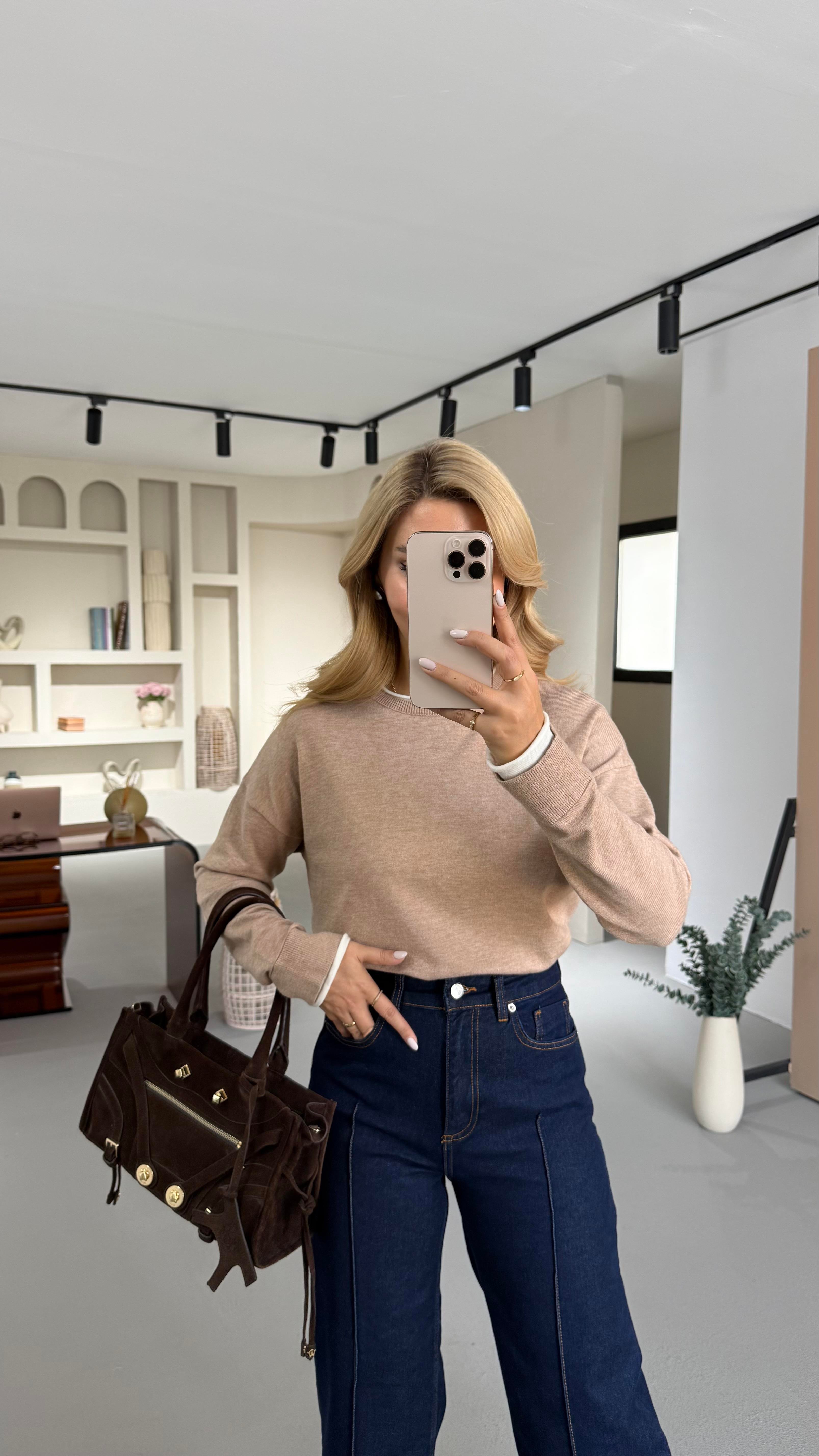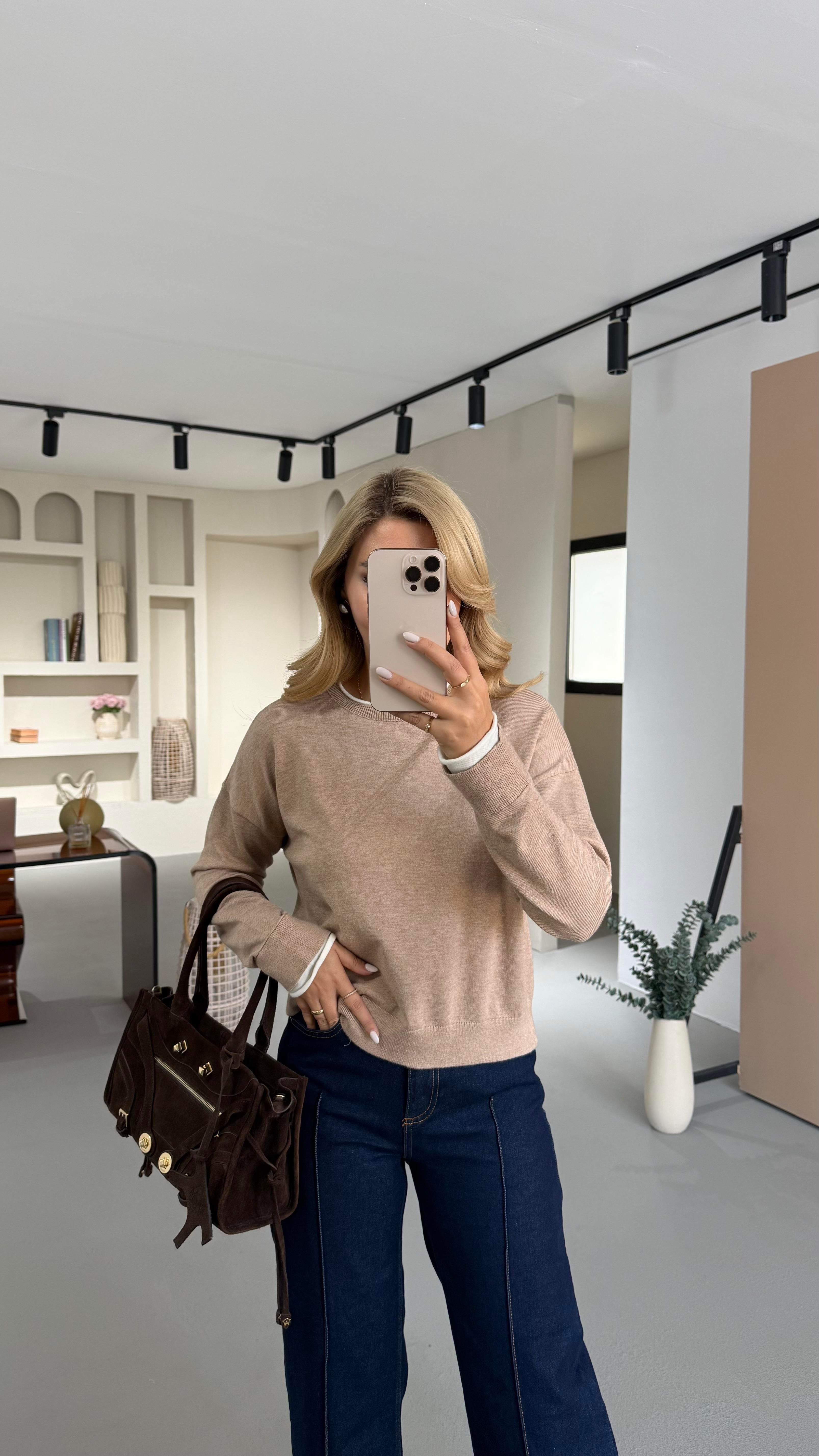 Biye Detay Yumuşak Dokulu Melanjlı Vizon Triko