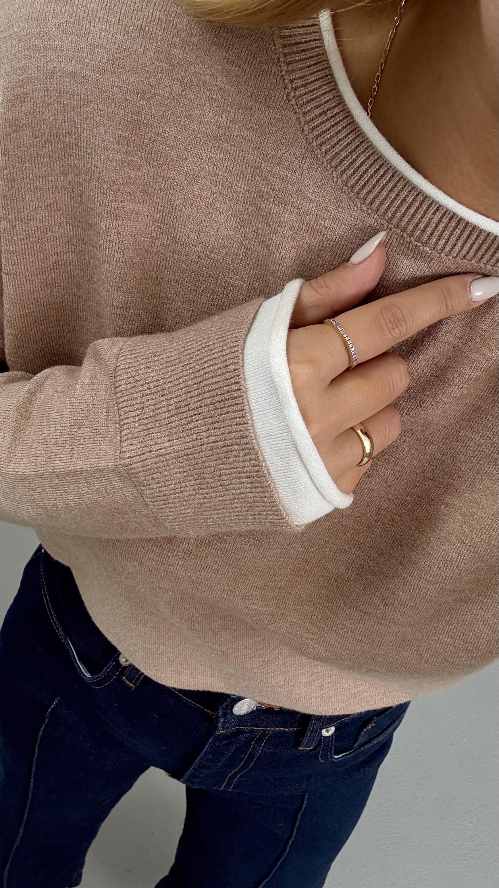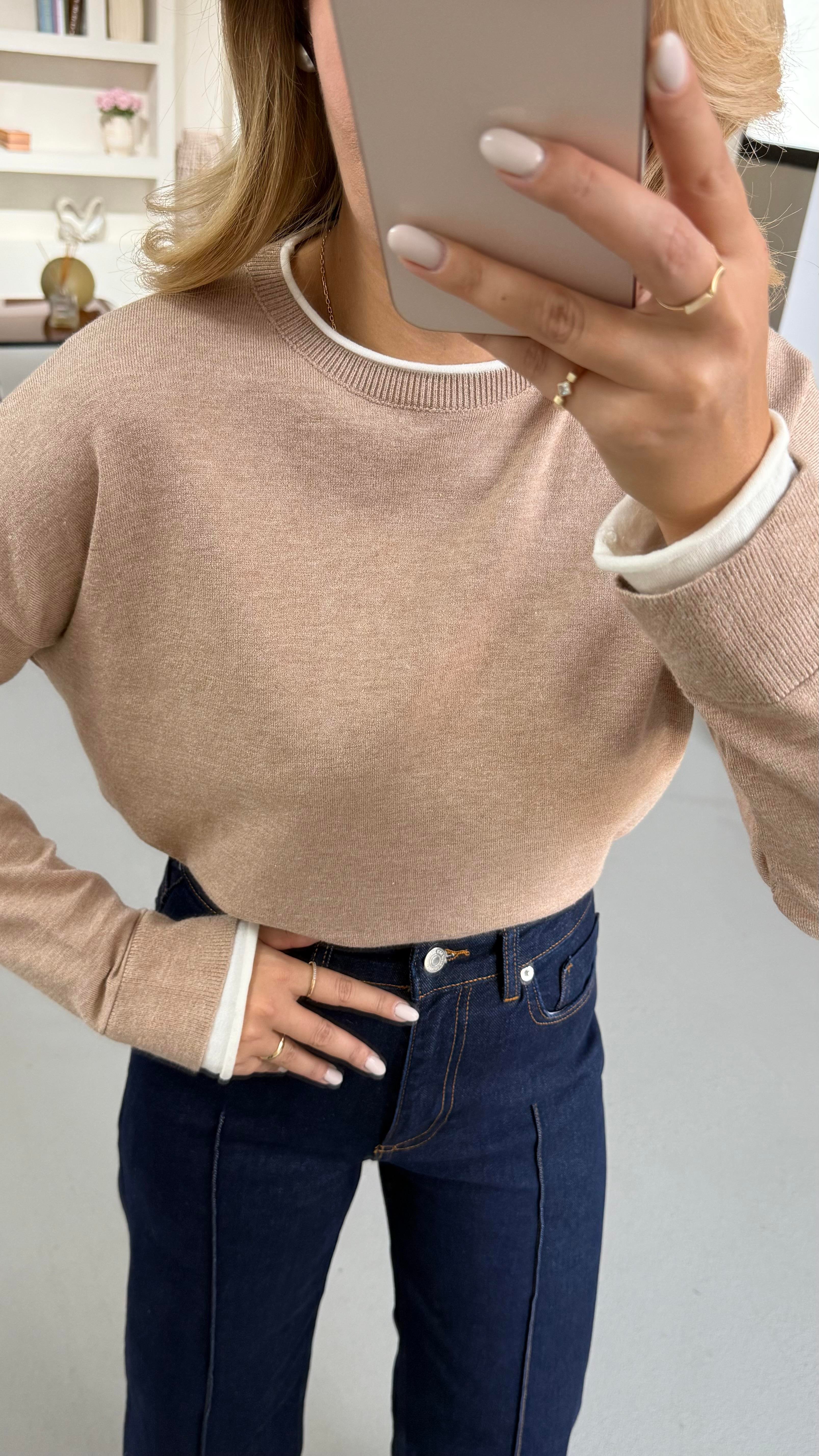 Biye Detay Yumuşak Dokulu Melanjlı Vizon Triko (TRK-0159-M.VZN)