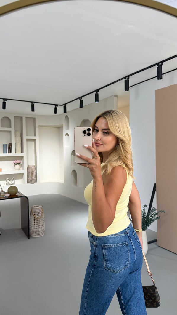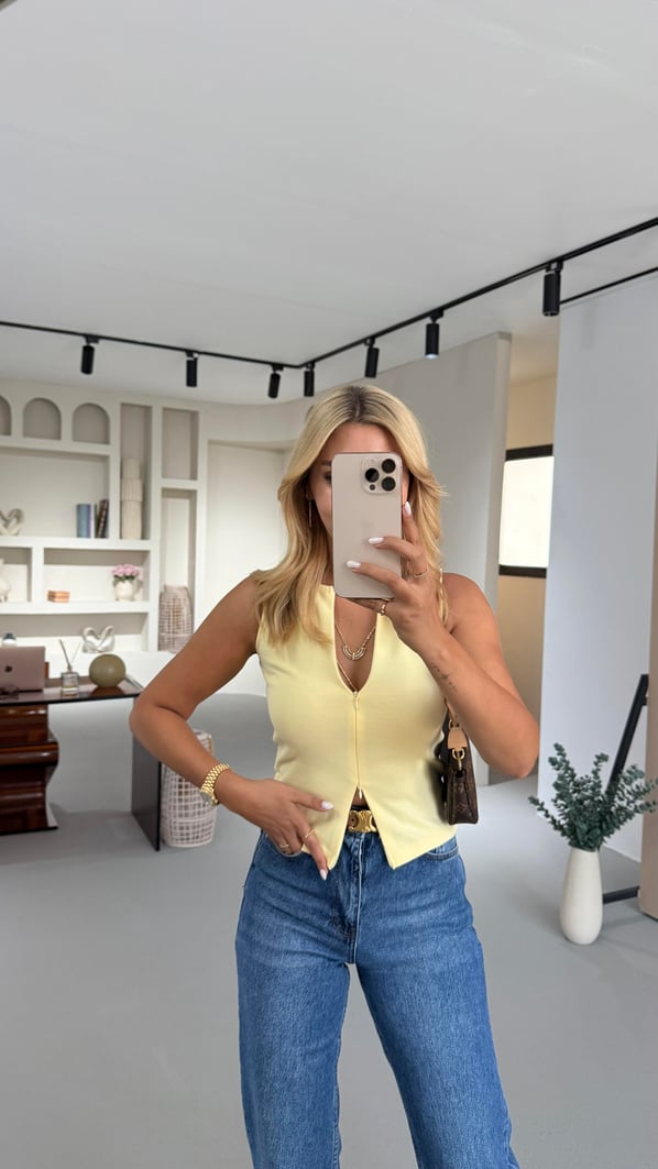 Çift Fermuar Detay Sarı Bluz (BLZ-0208-SARI)