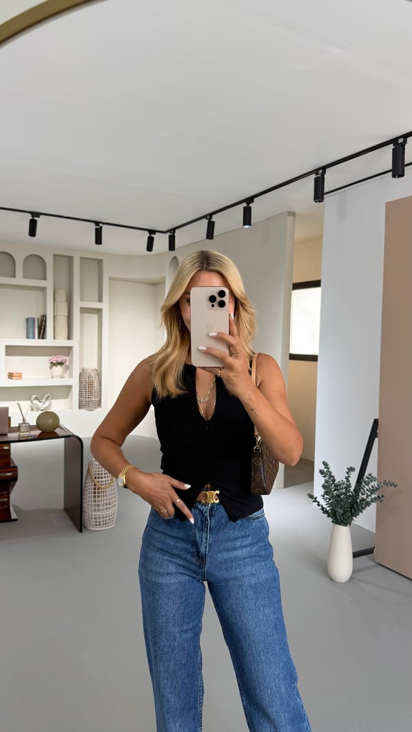 Çift Fermuar Detay Siyah Bluz (BLZ-0208-SYH)