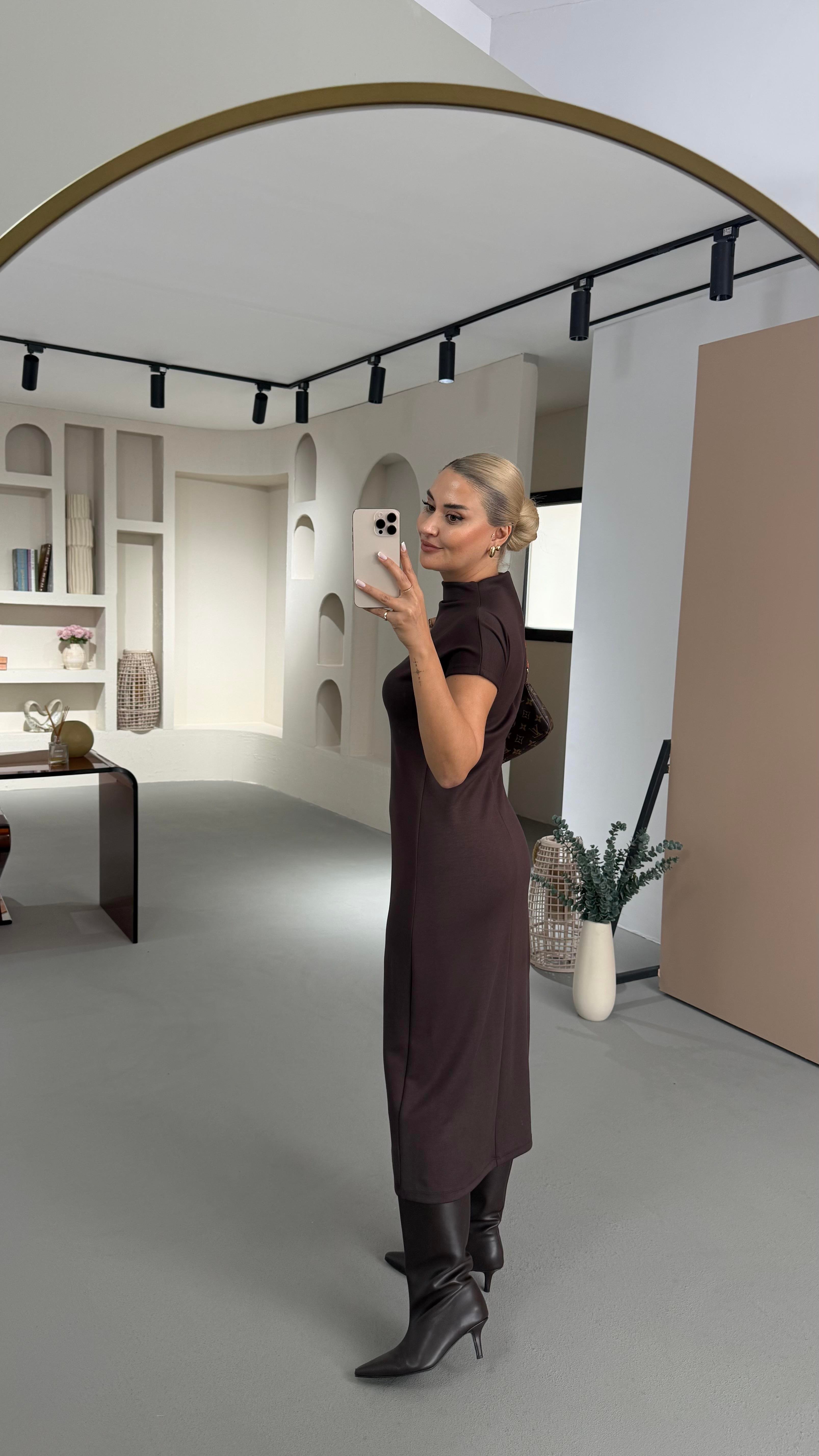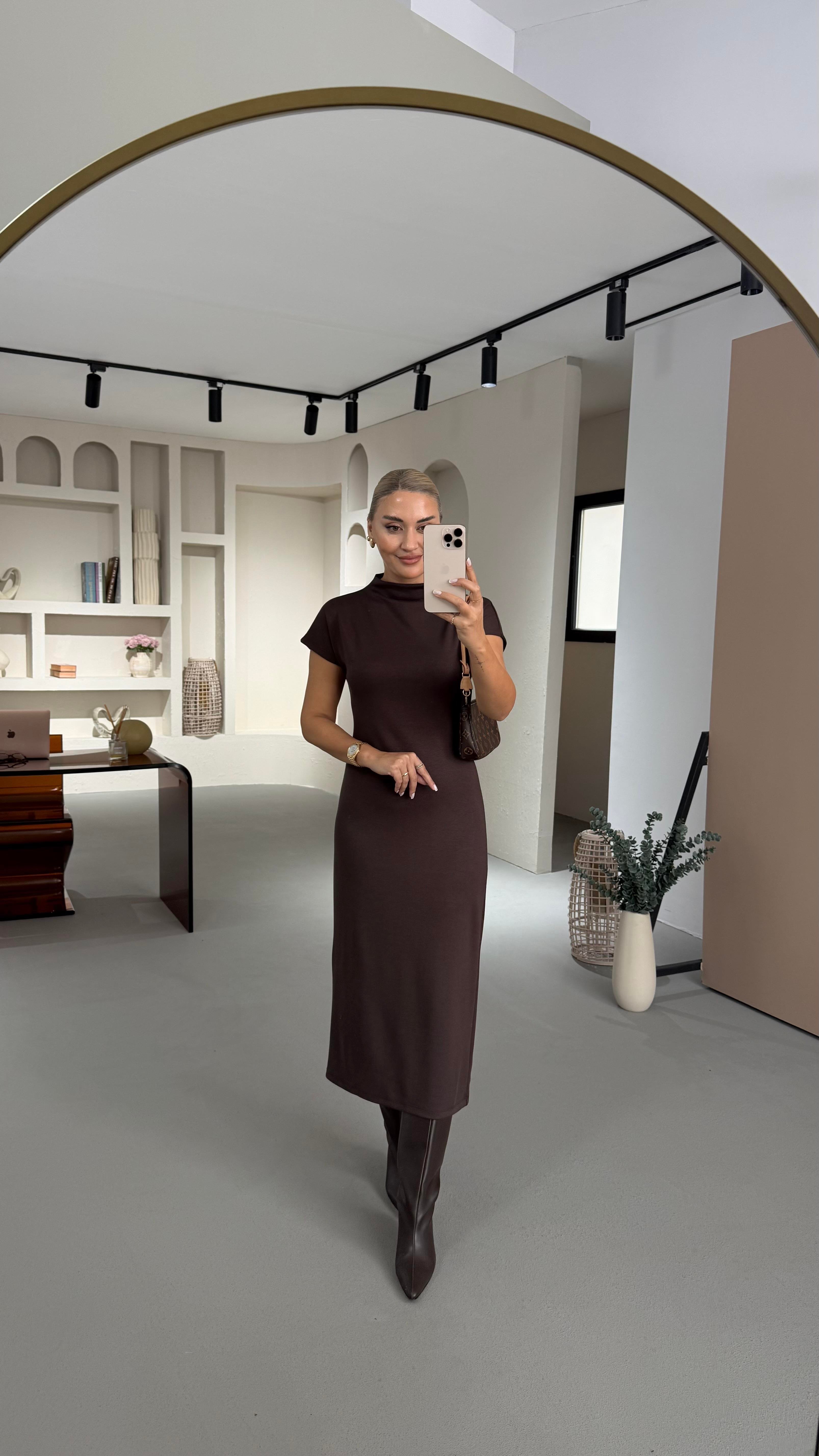 Dik Yaka T Kol Kahve Modal Elbise