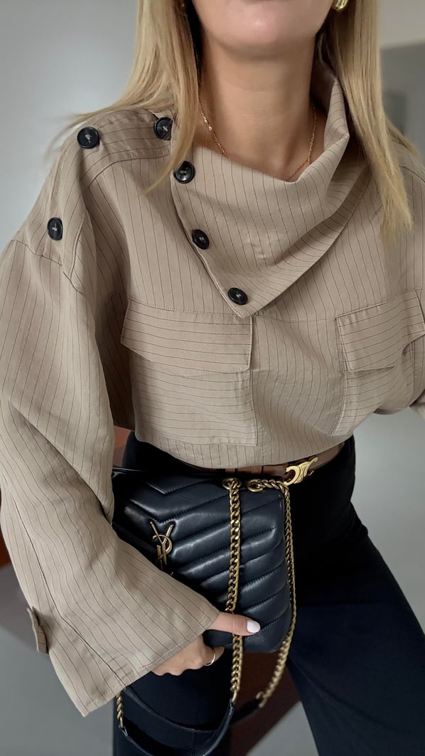 Düğme Detay Çizgili Taş Tasarım Gömlek (GMLK-0189-TAŞ)