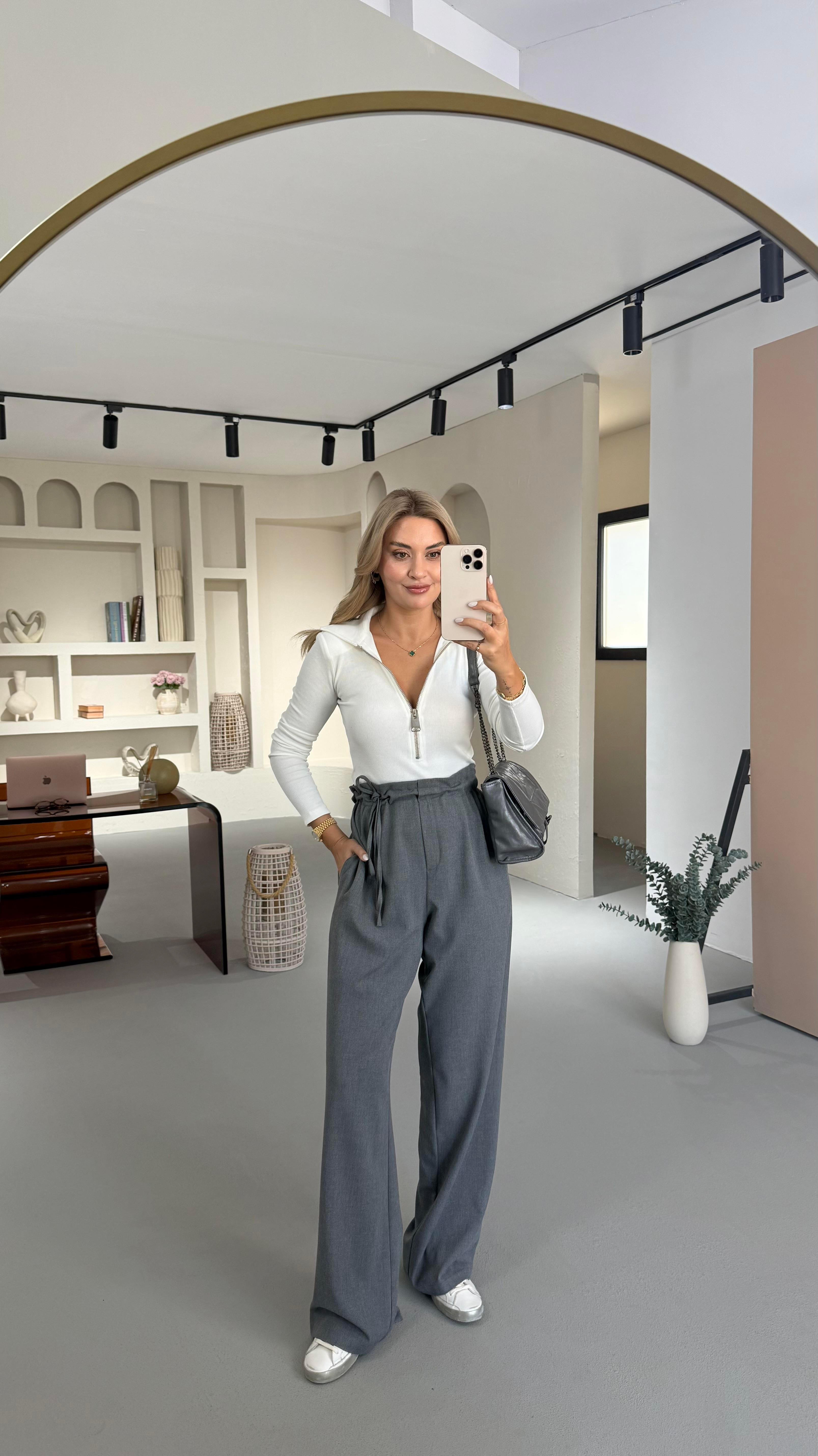 Bel Lastikli Bağlama Detay Antrasit Palazzo Pantolon