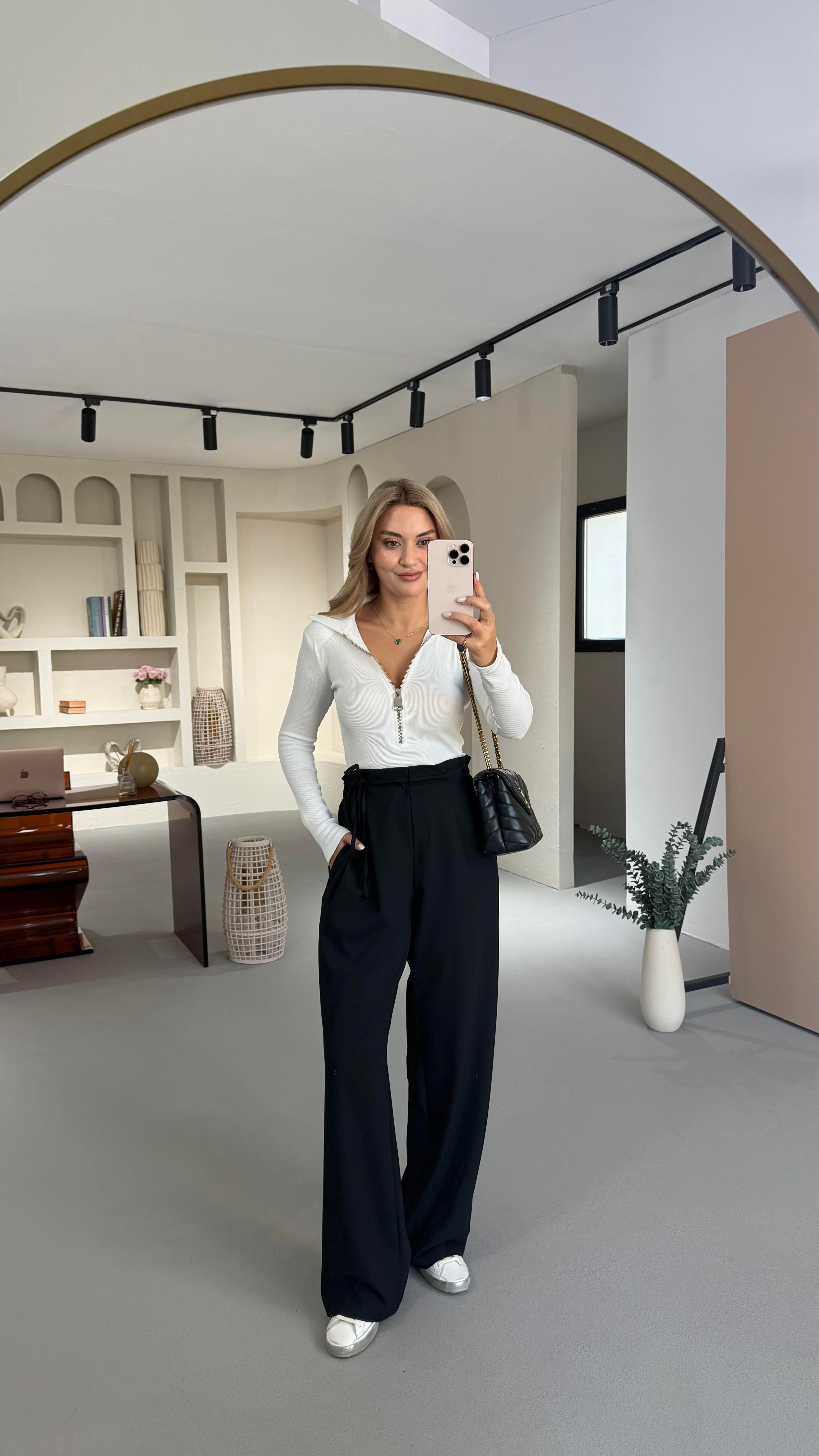 Bel Lastikli Bağlama Detay Siyah Palazzo Pantolon