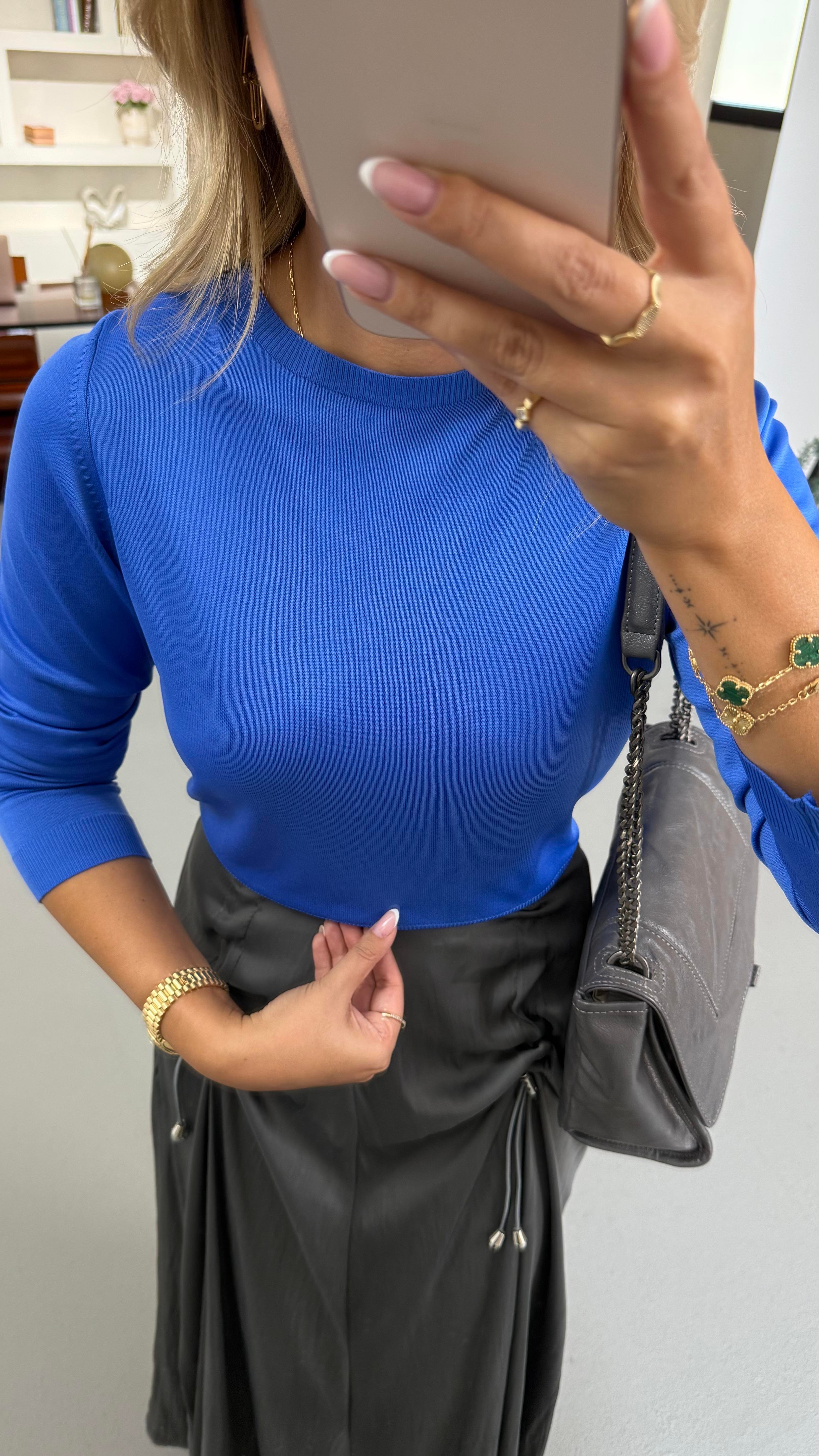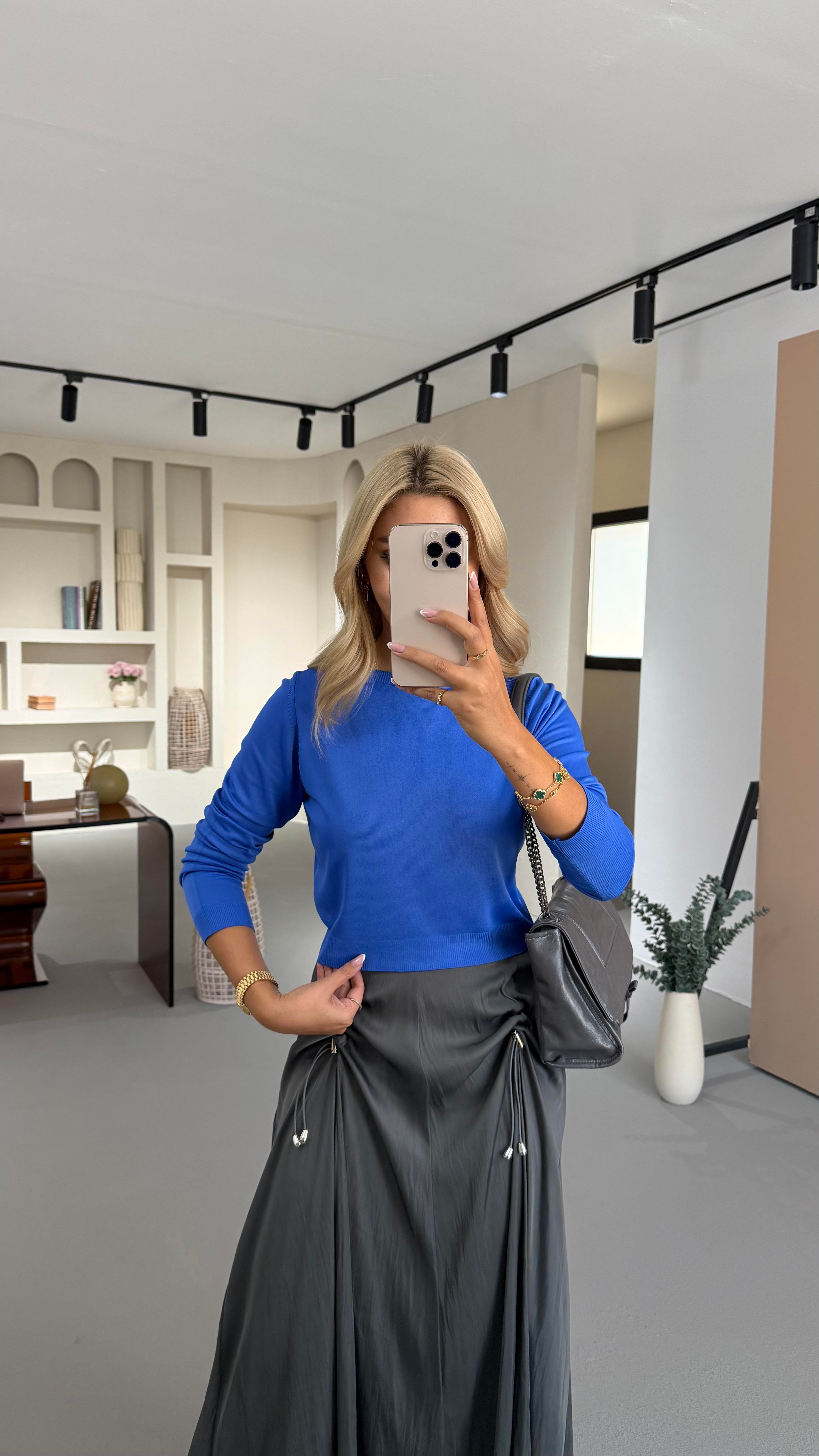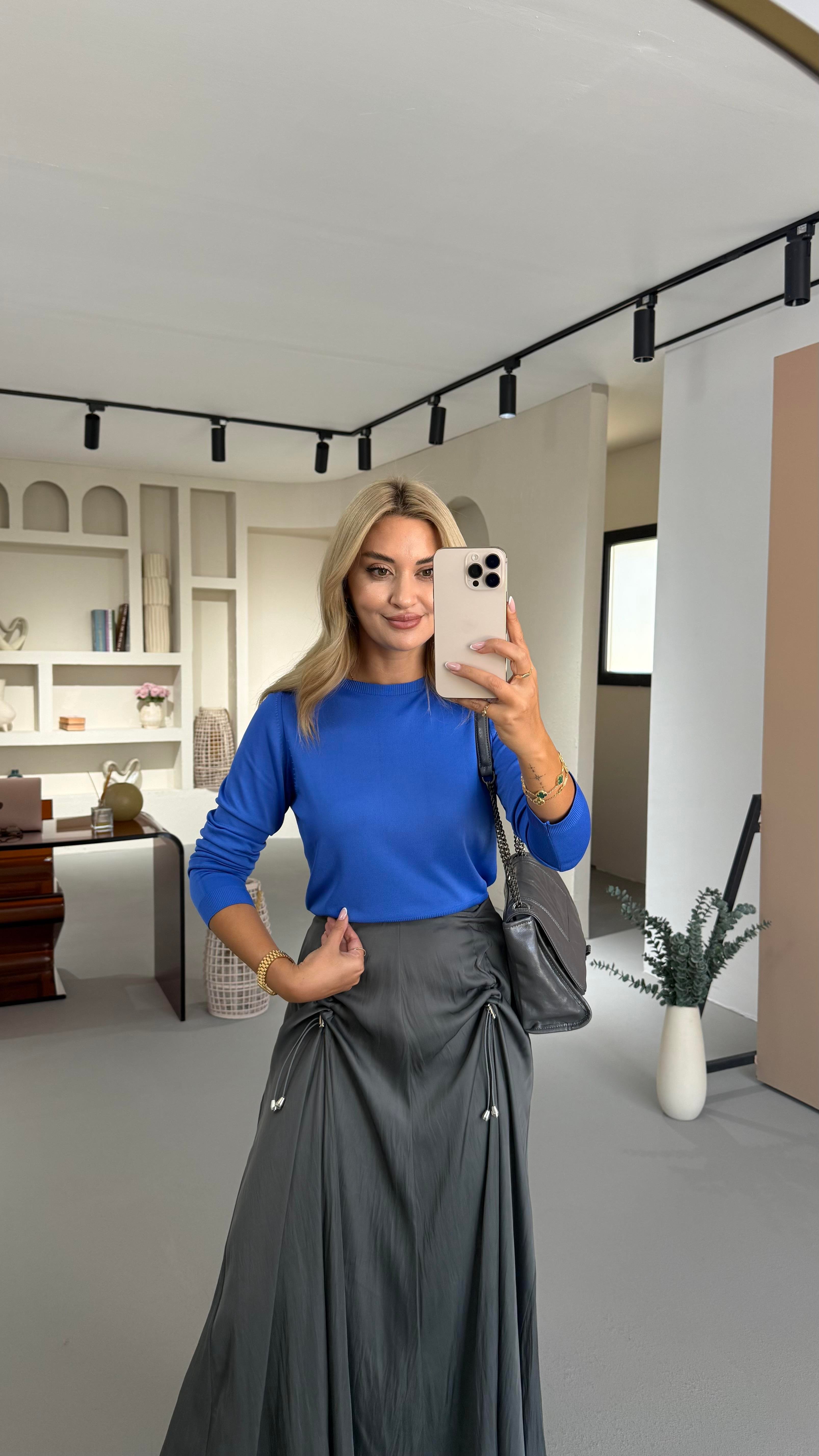 Bisiklet Yaka Uzun Kol Saks Basic Triko (TRK-0158-SAKS)