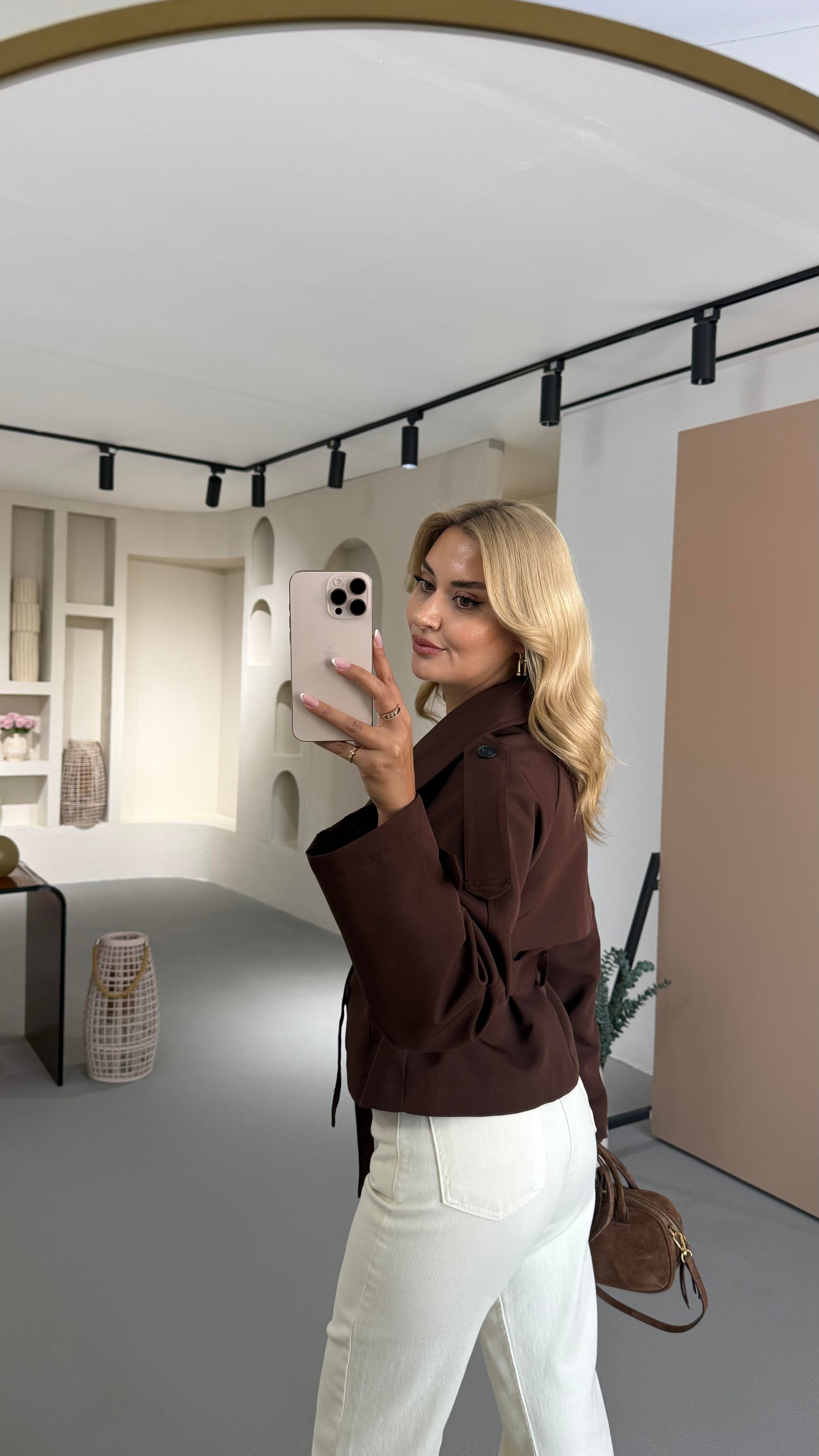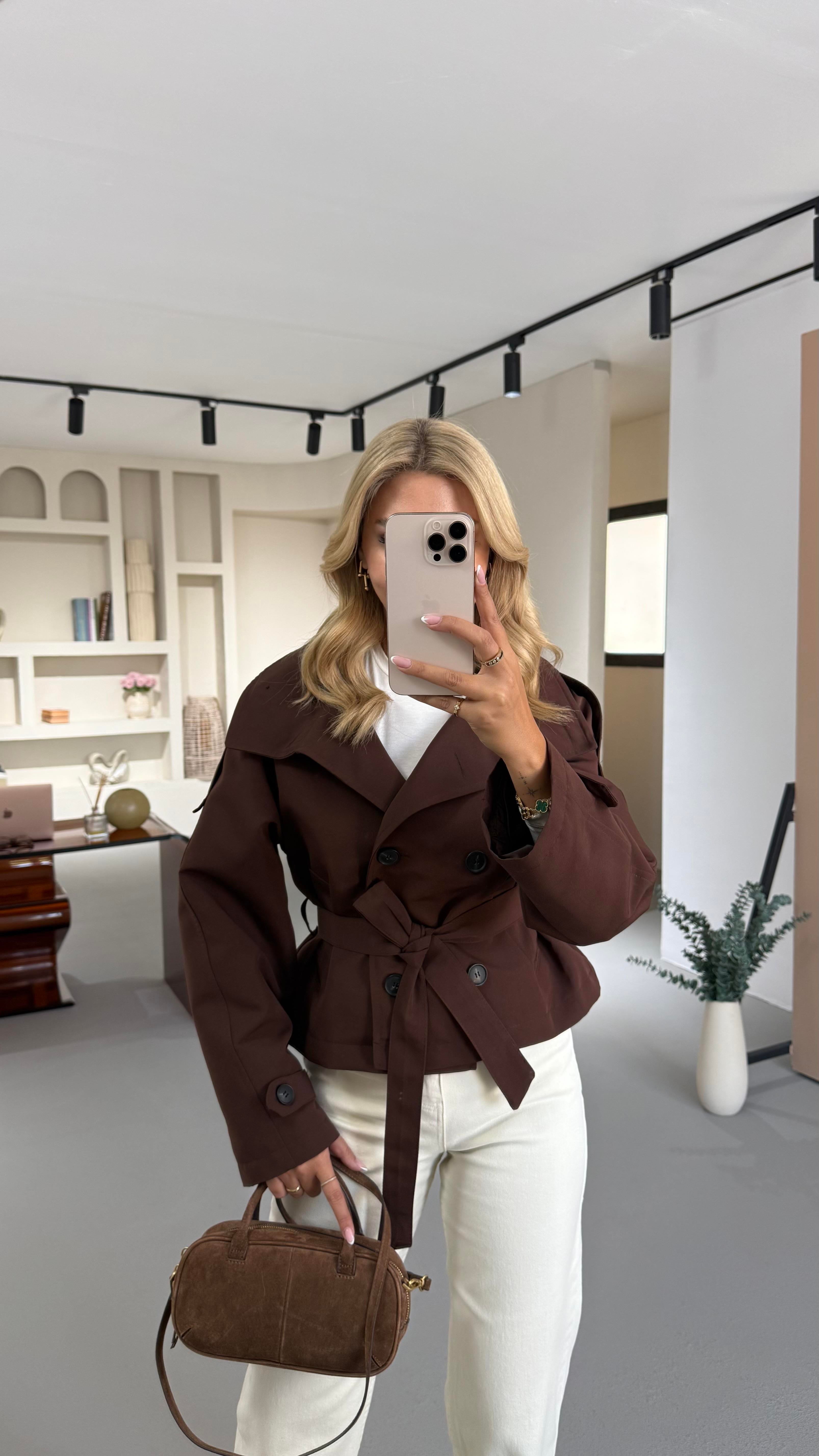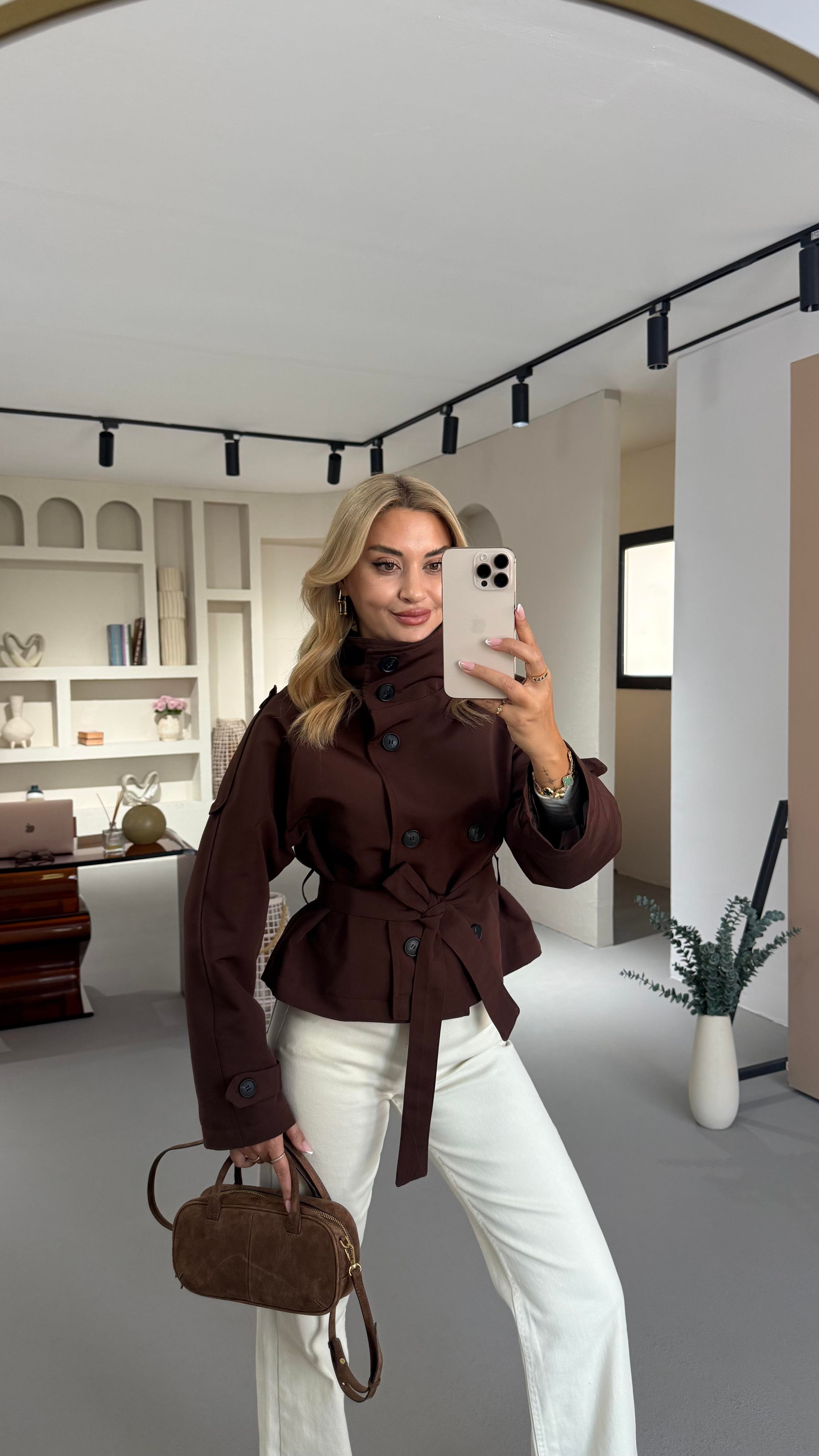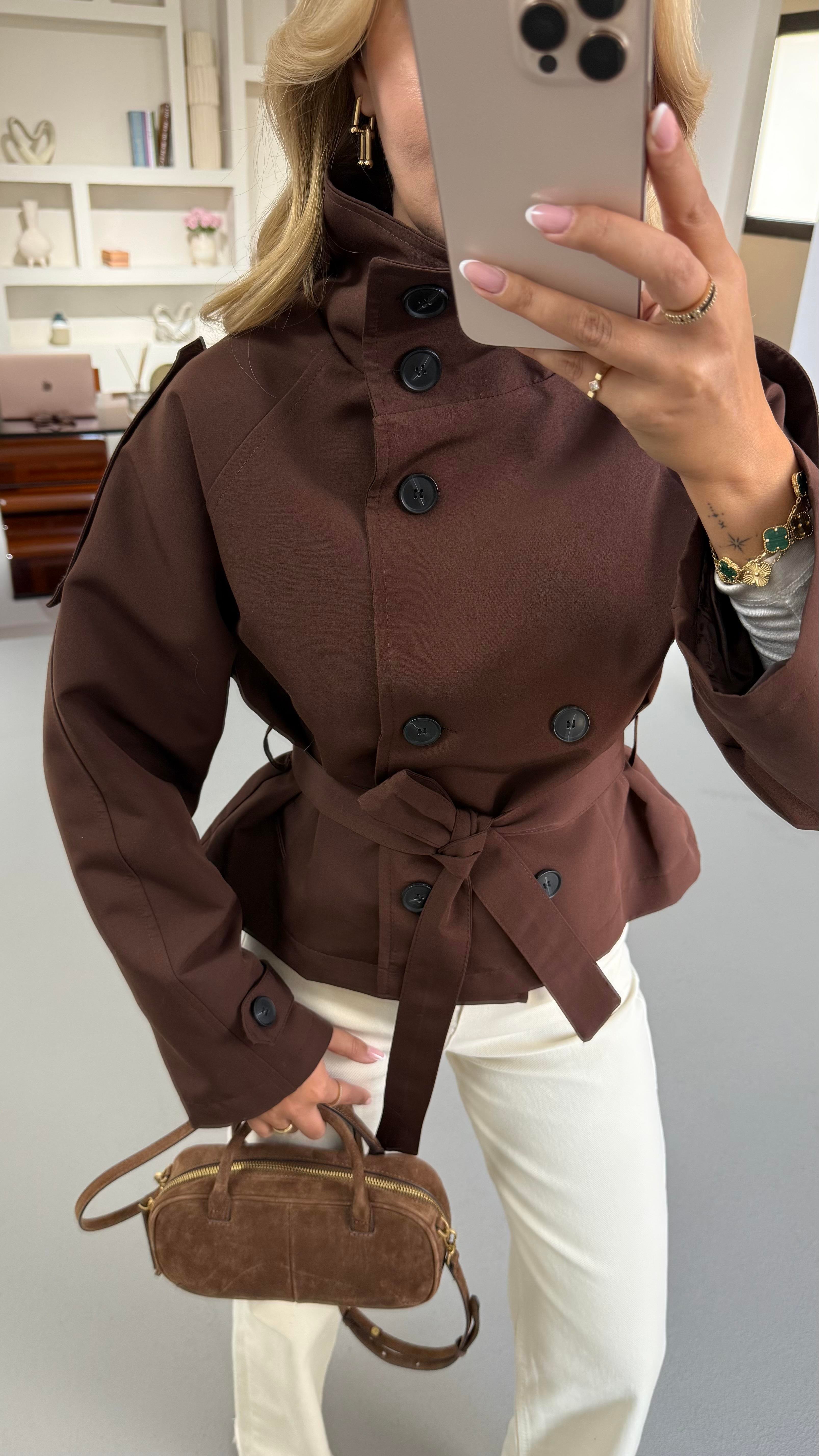 Dik Yaka Apoletli Acı Kahve Trenç