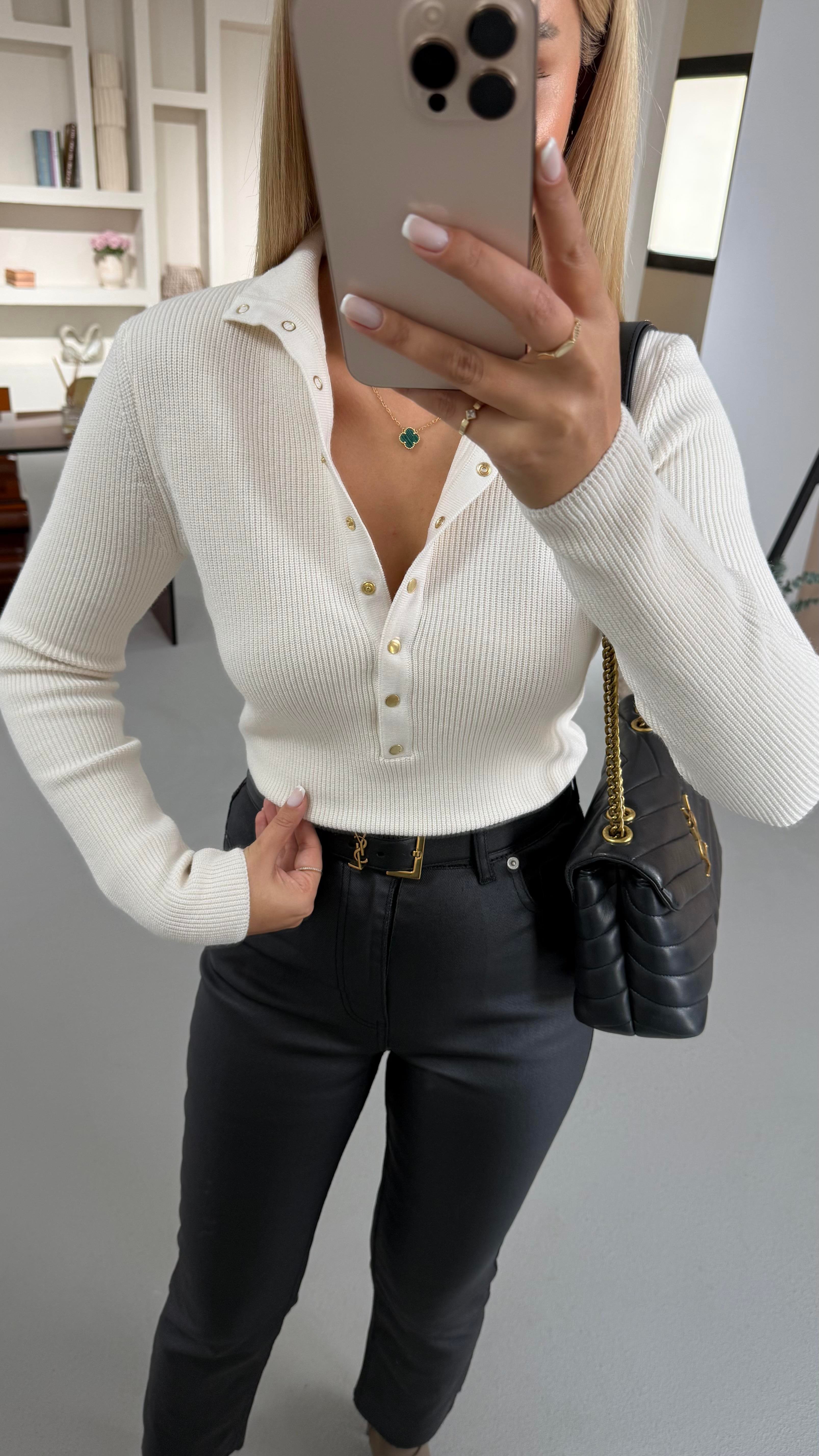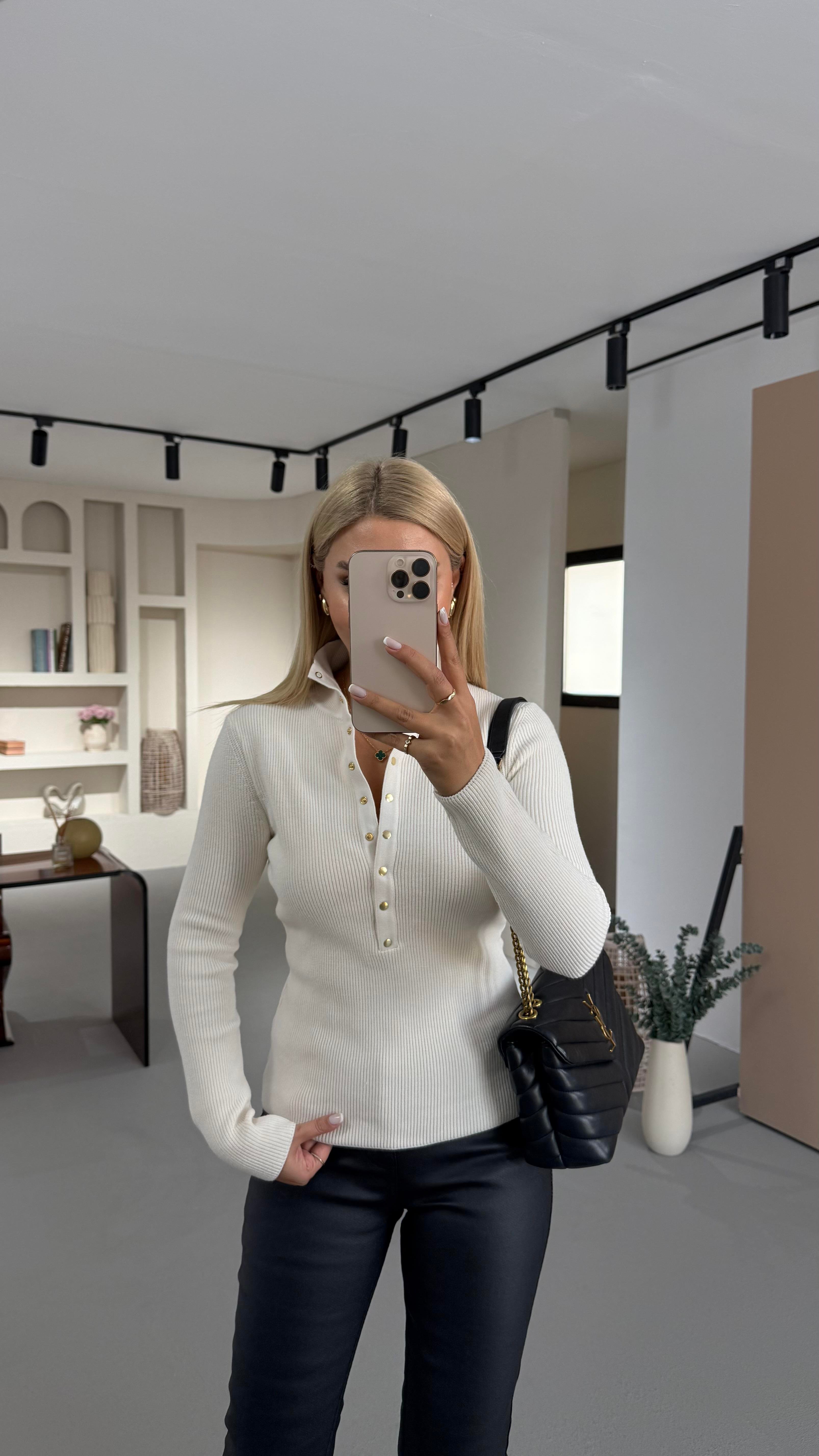 Dik Yaka Pat Düğmeli Ekru Çelik Triko (TRK-0160-EKR)