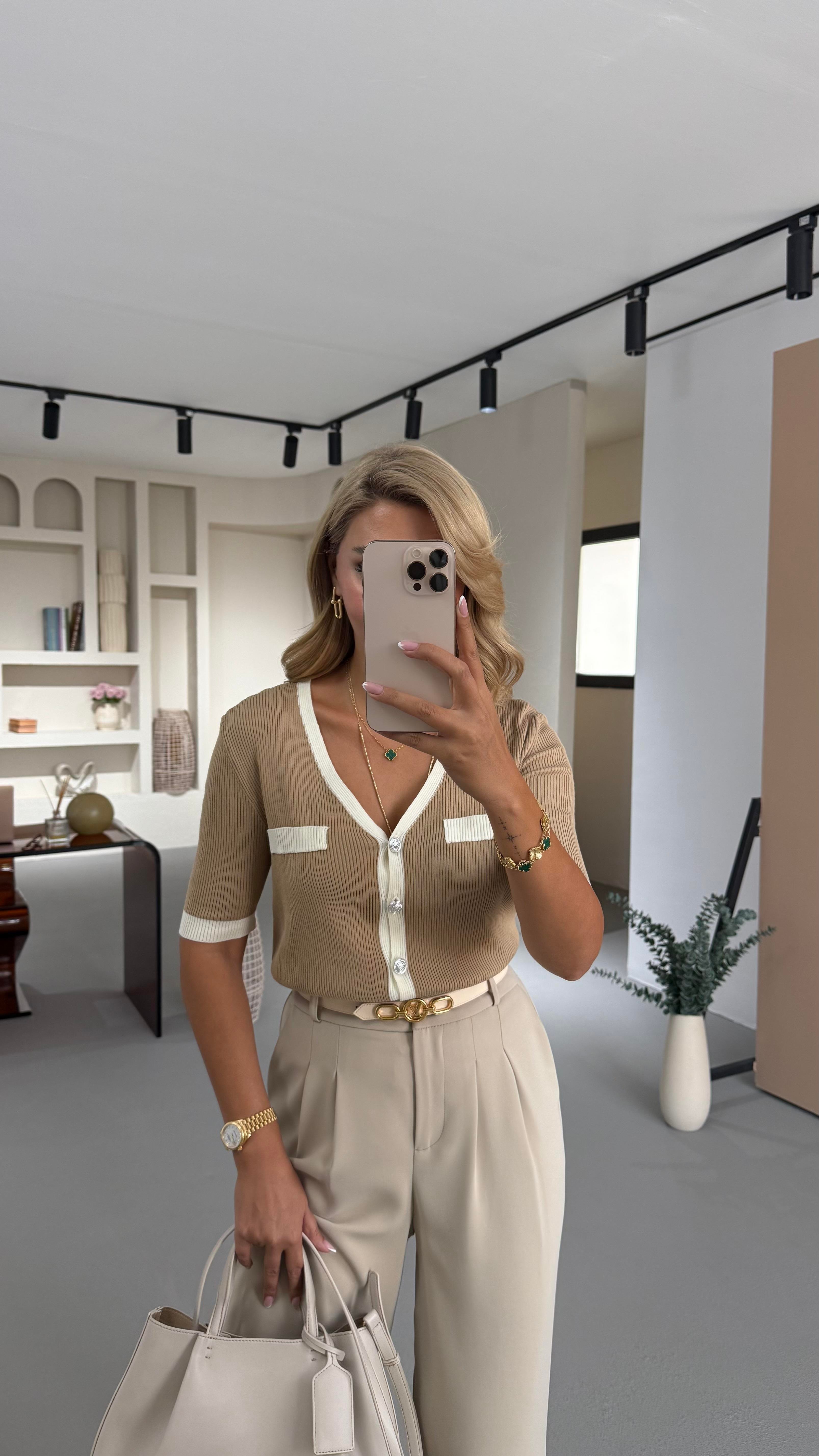 Ekru Biyeli Düğme Detay Camel Triko (TRK-0157-CML)