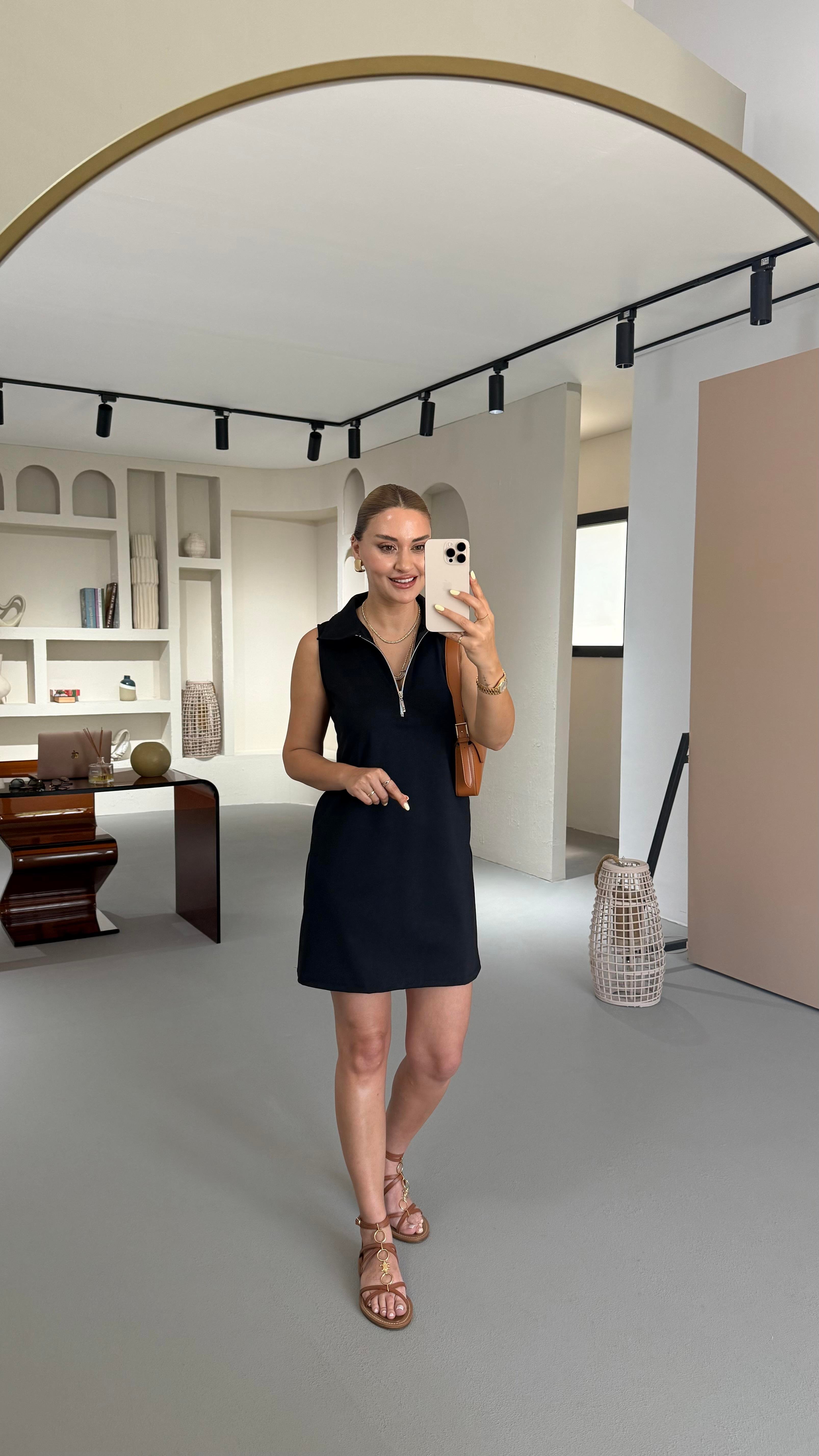 Fermuar Detay Kolsuz Siyah Scuba Elbise (ELB-0691-SYH)