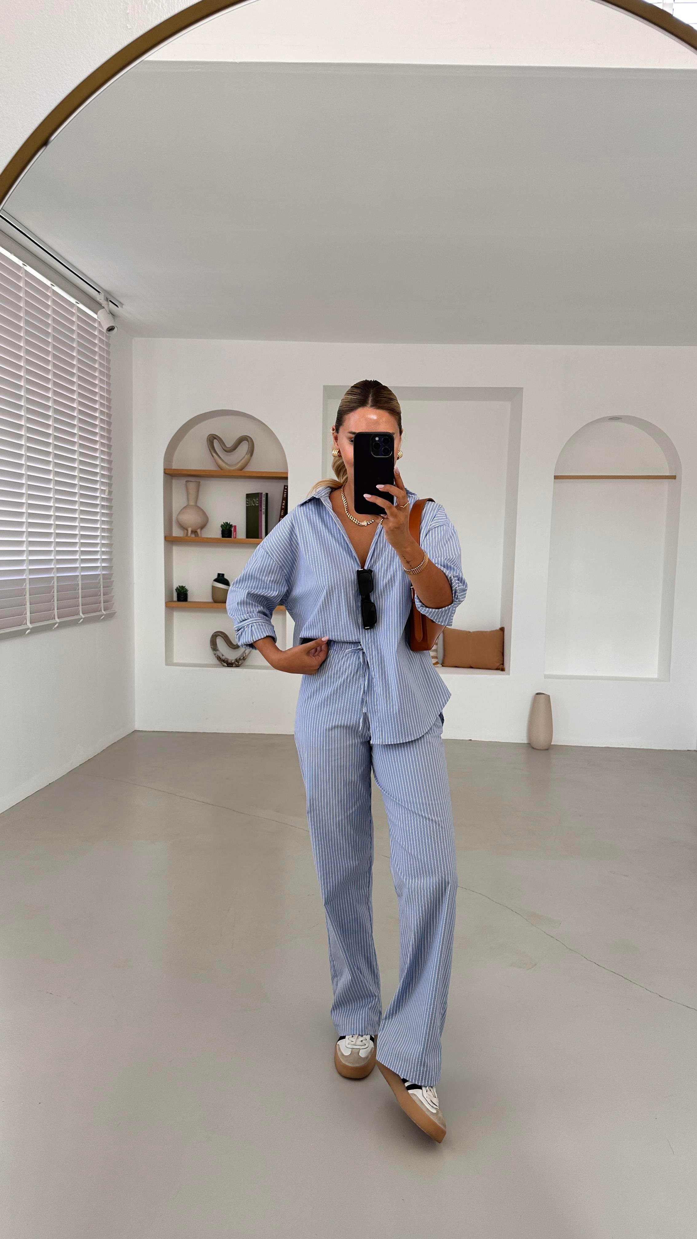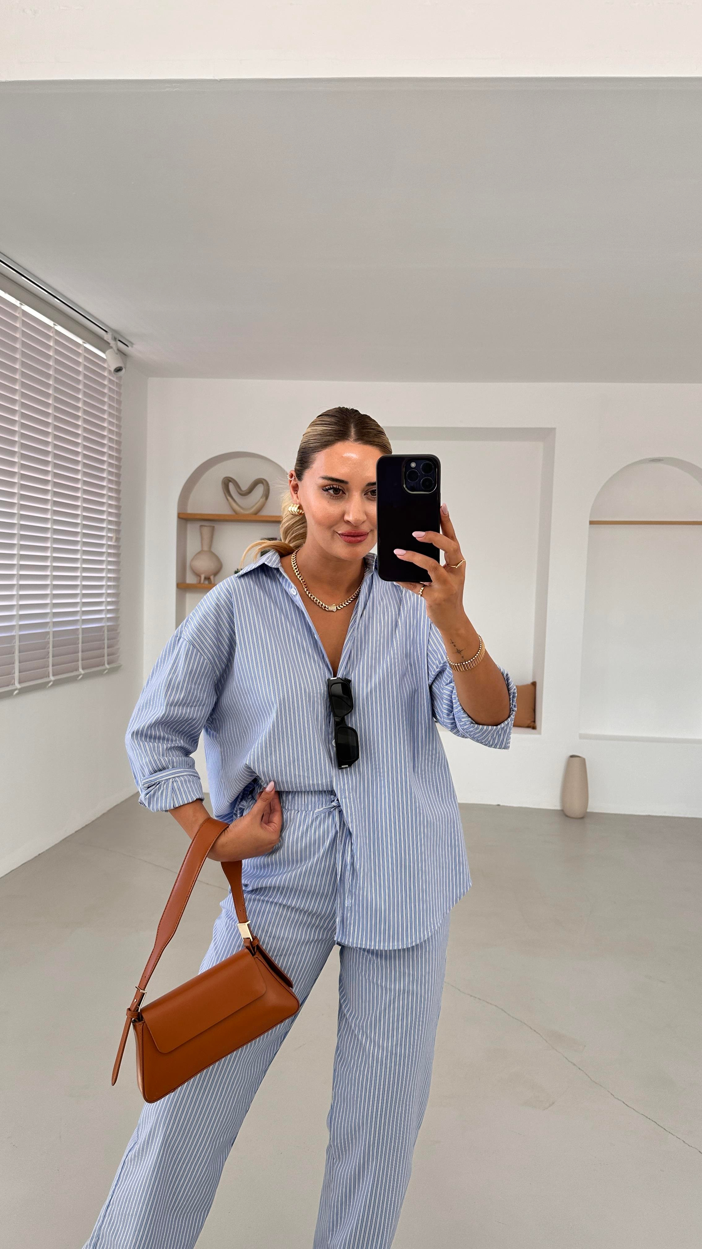 Gömlek Pantolon Çizgili Mavi Poplin Takım