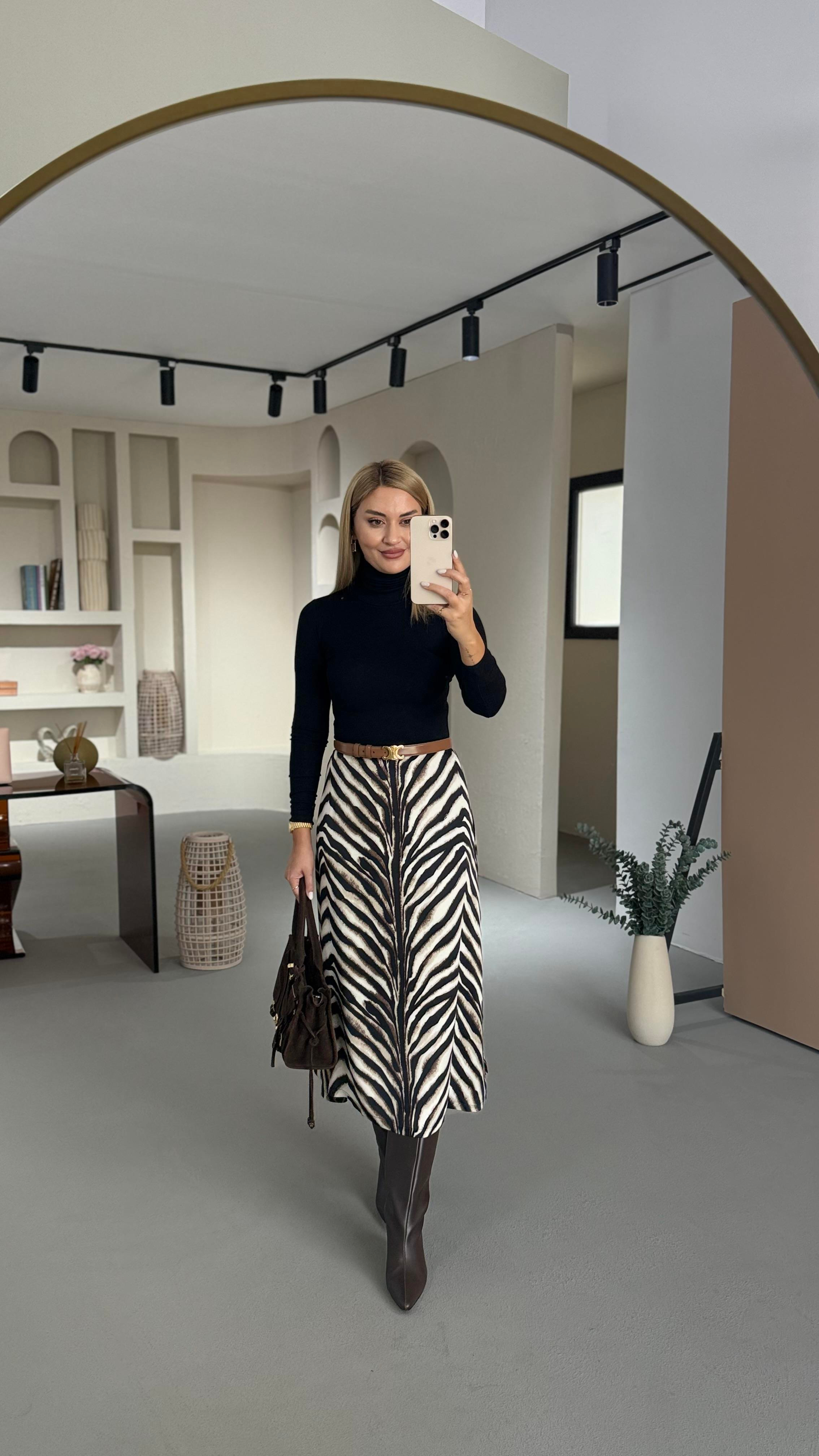 Kaplan Desen Saten Ekru Midi Etek (ETK-0257-EKR)