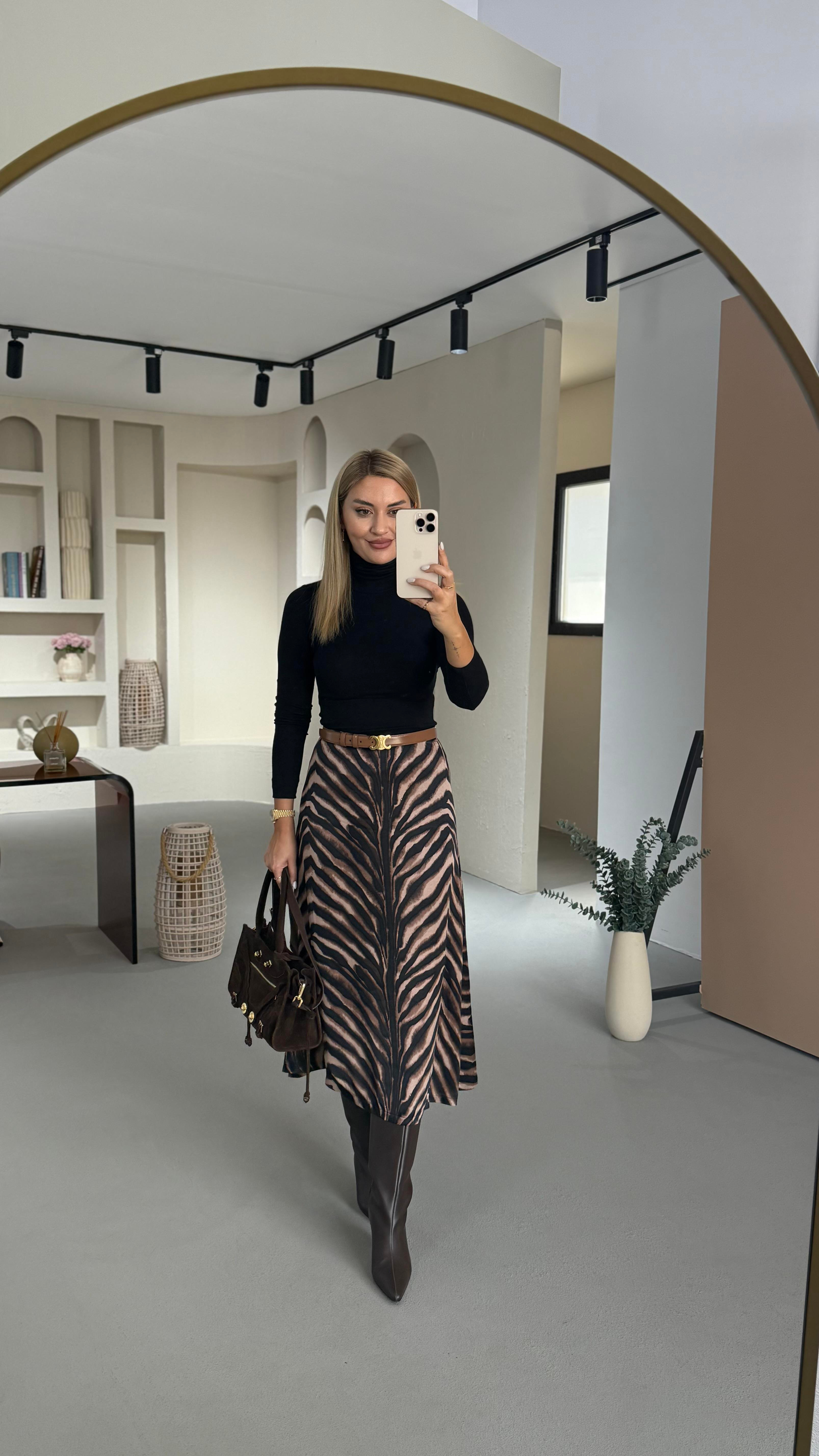 Kaplan Desen Saten Kahve Midi Etek (ETK-0257-KHV)