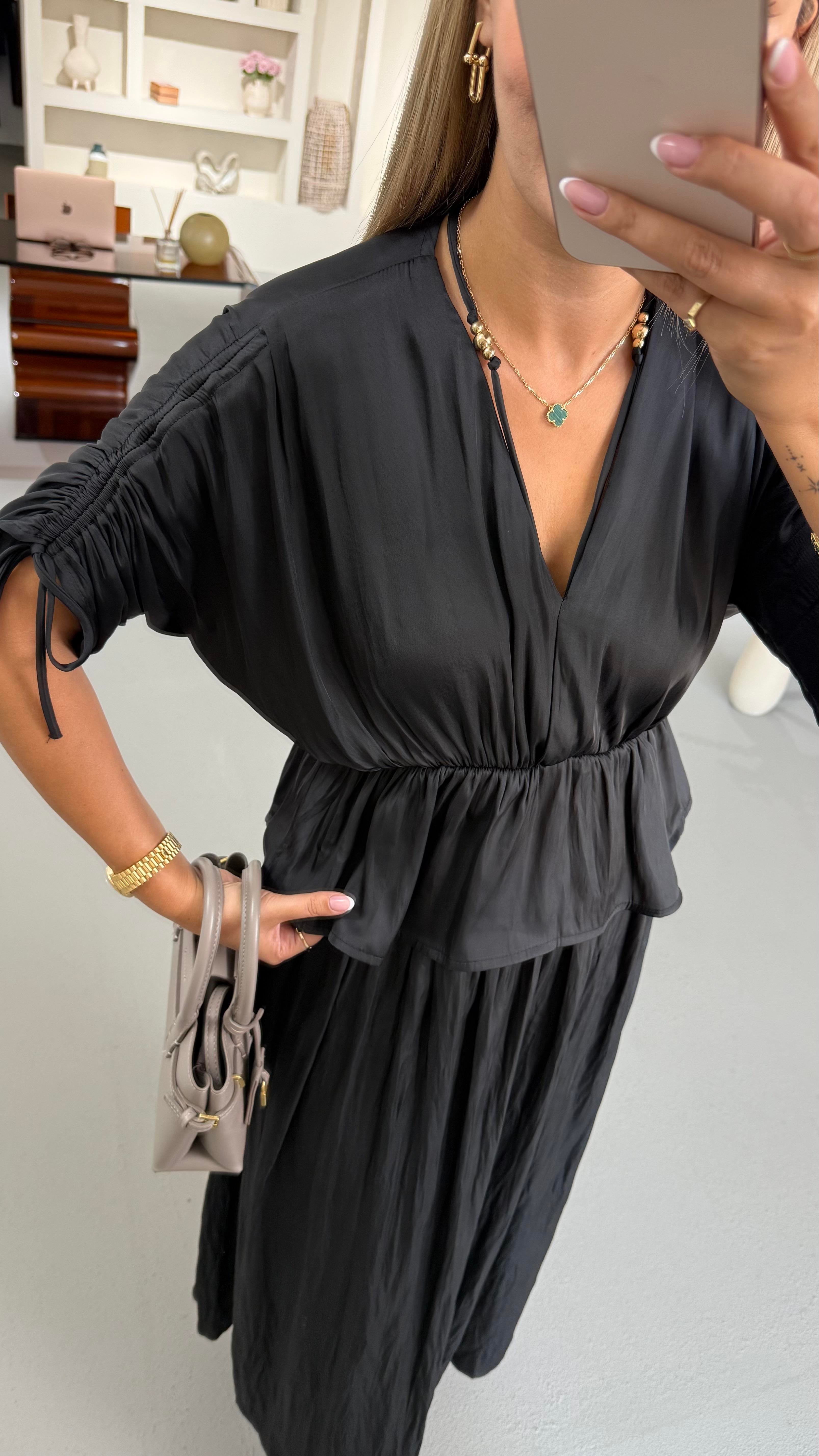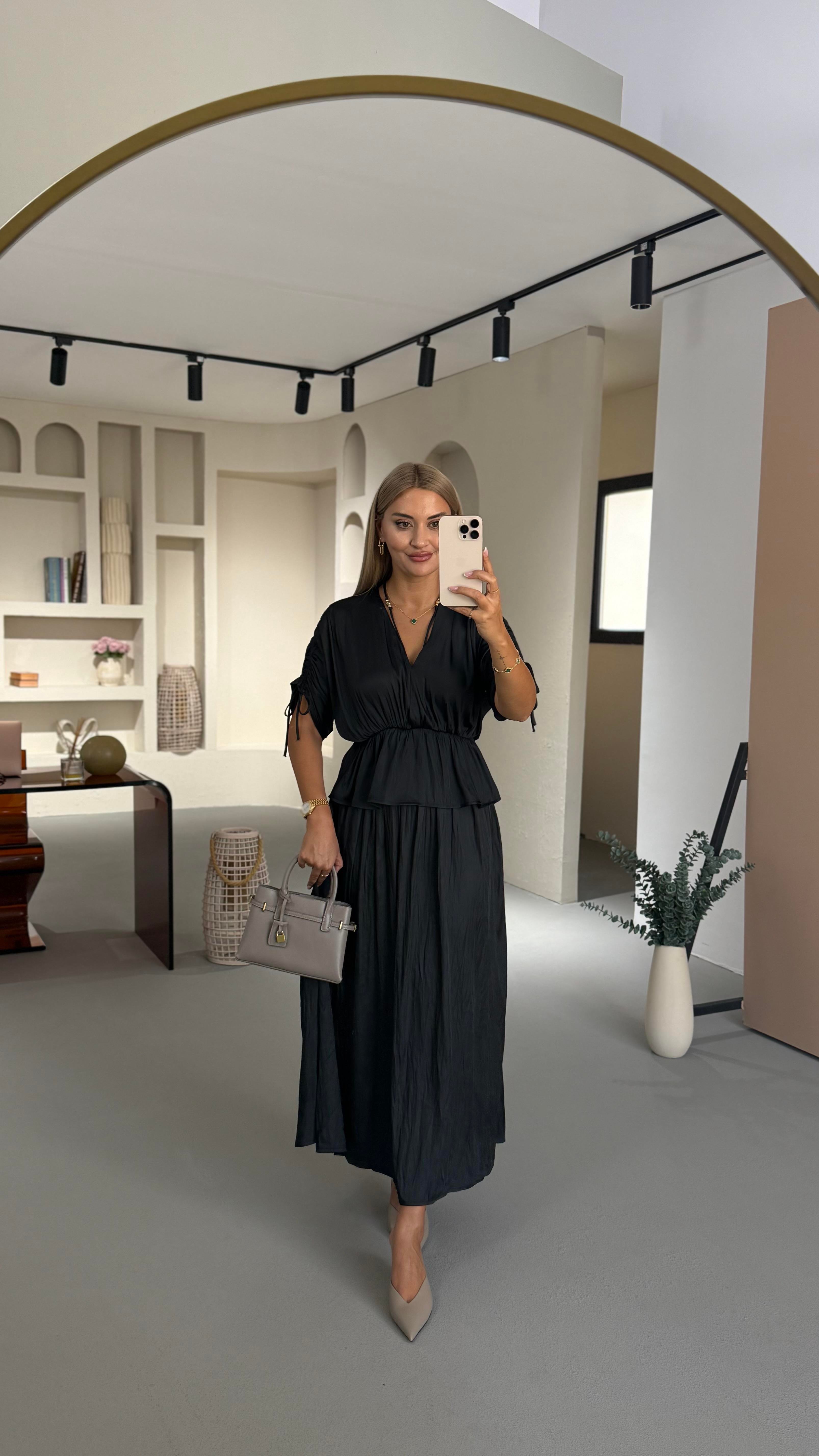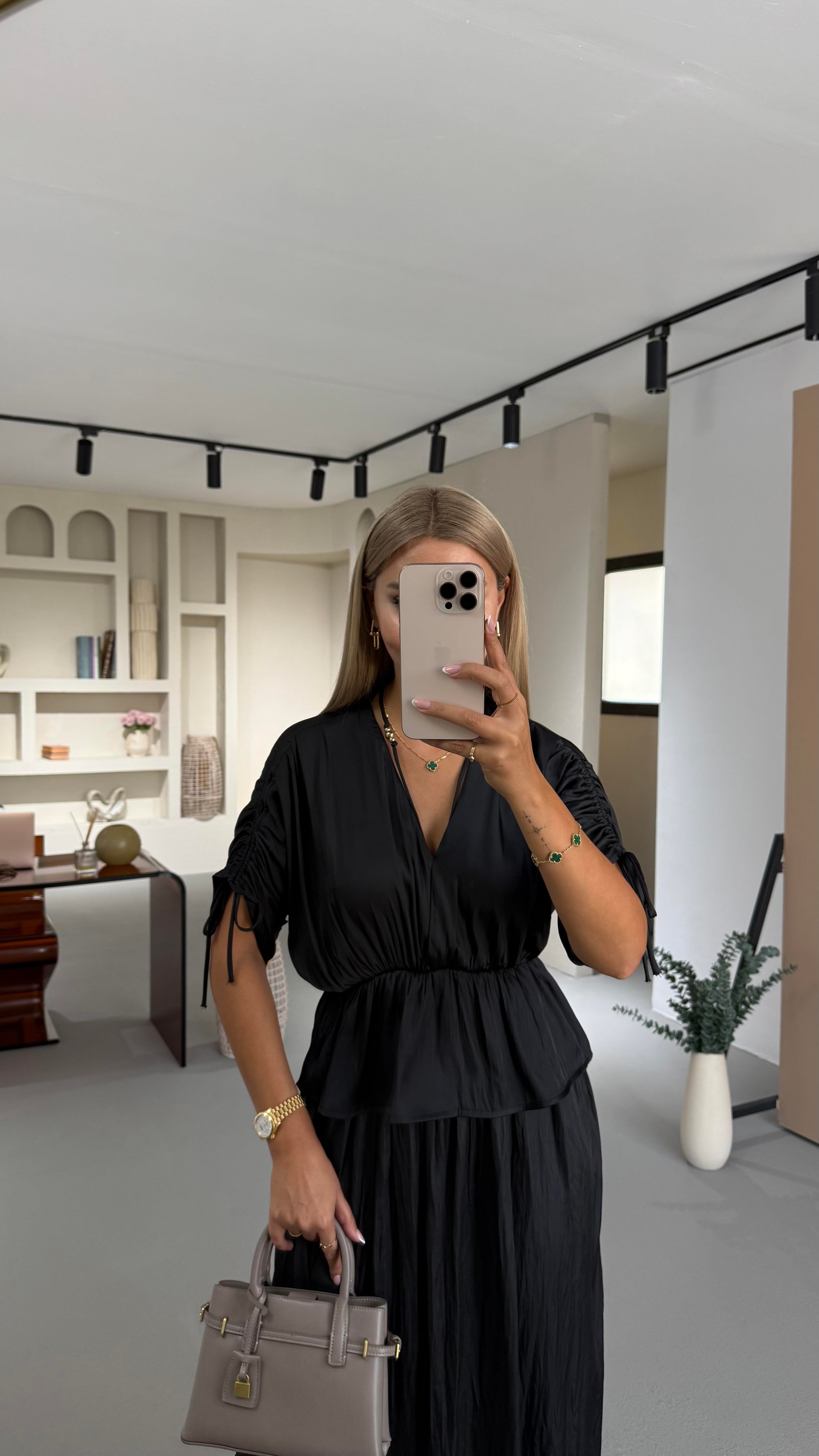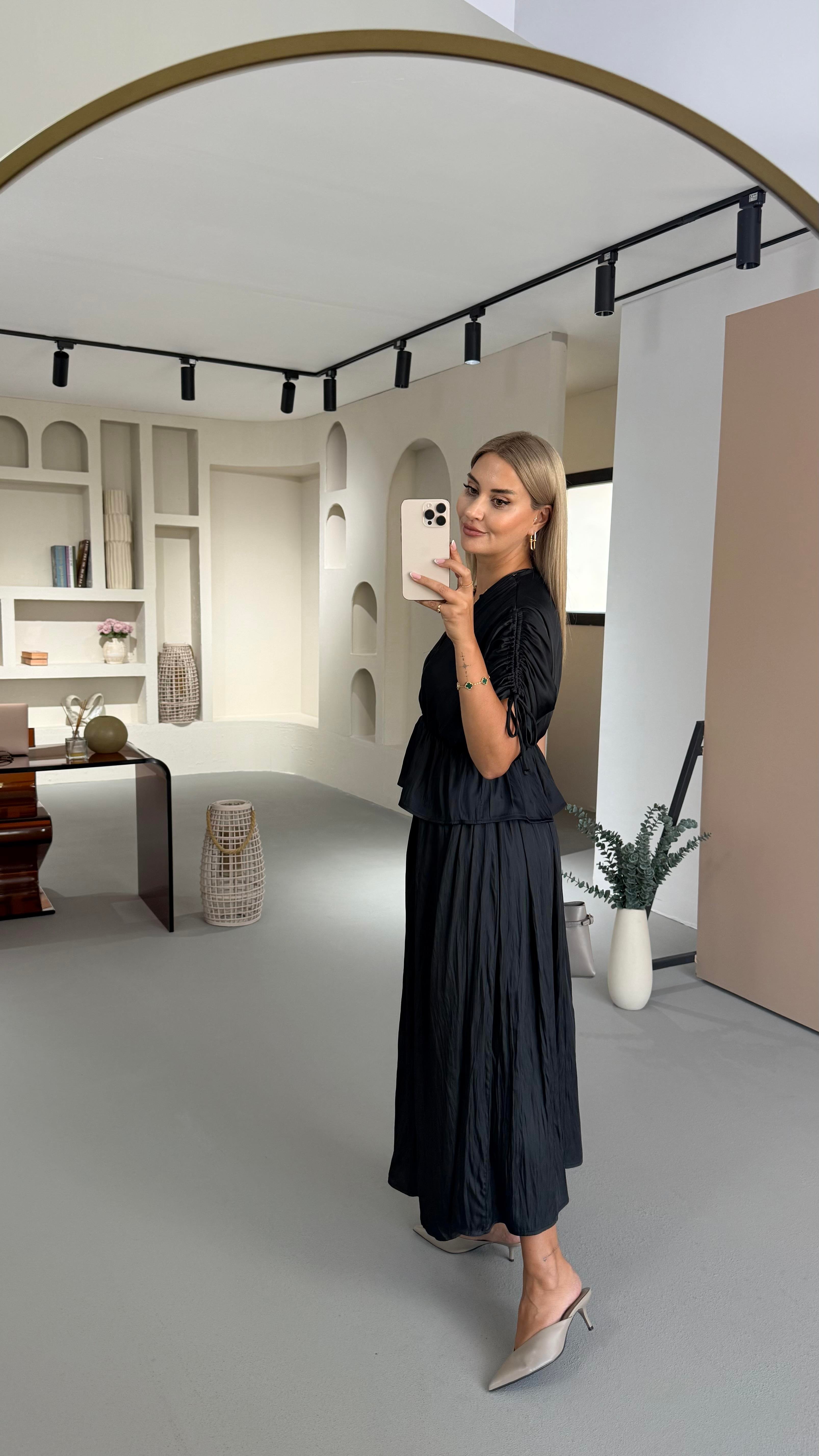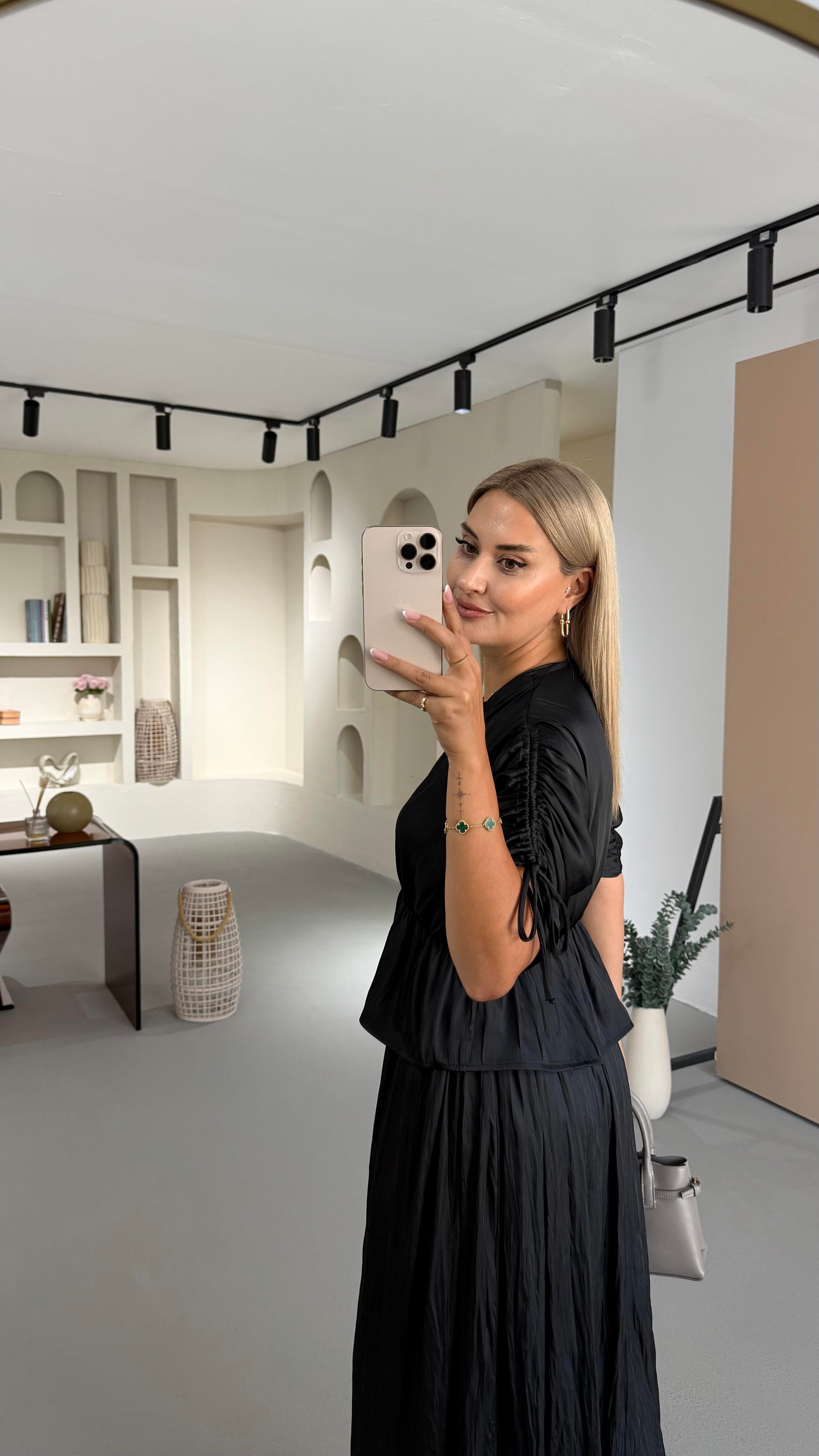 Kırışık Efektli Siyah Etek Bluz Takım (TKM-0155-SYH)