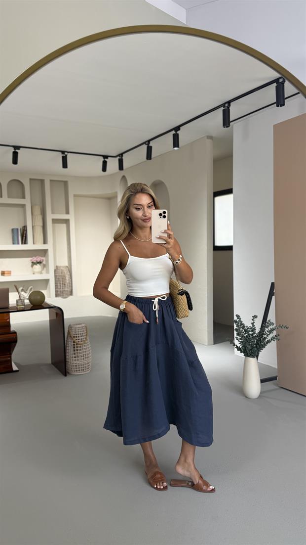 Lacivert Keten Şalvar Pantolon (PNT-0552-LCV)