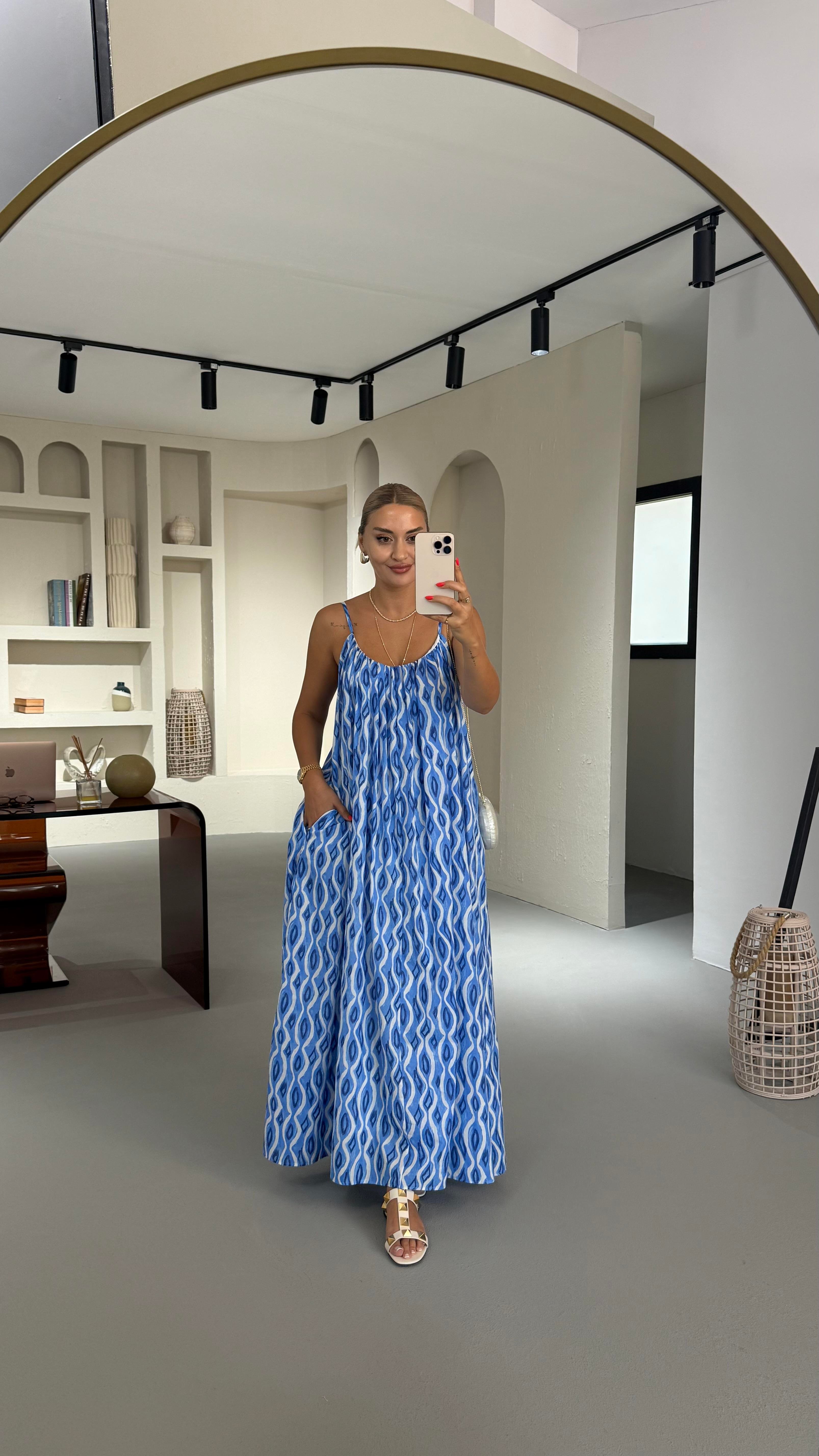 Mavi Desenli Maxi Vual Elbise (ELB-0732-MAVİ)