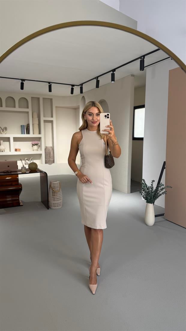 Omuz Detay Taş Kalem Elbise (ELB-0672-TAŞ)