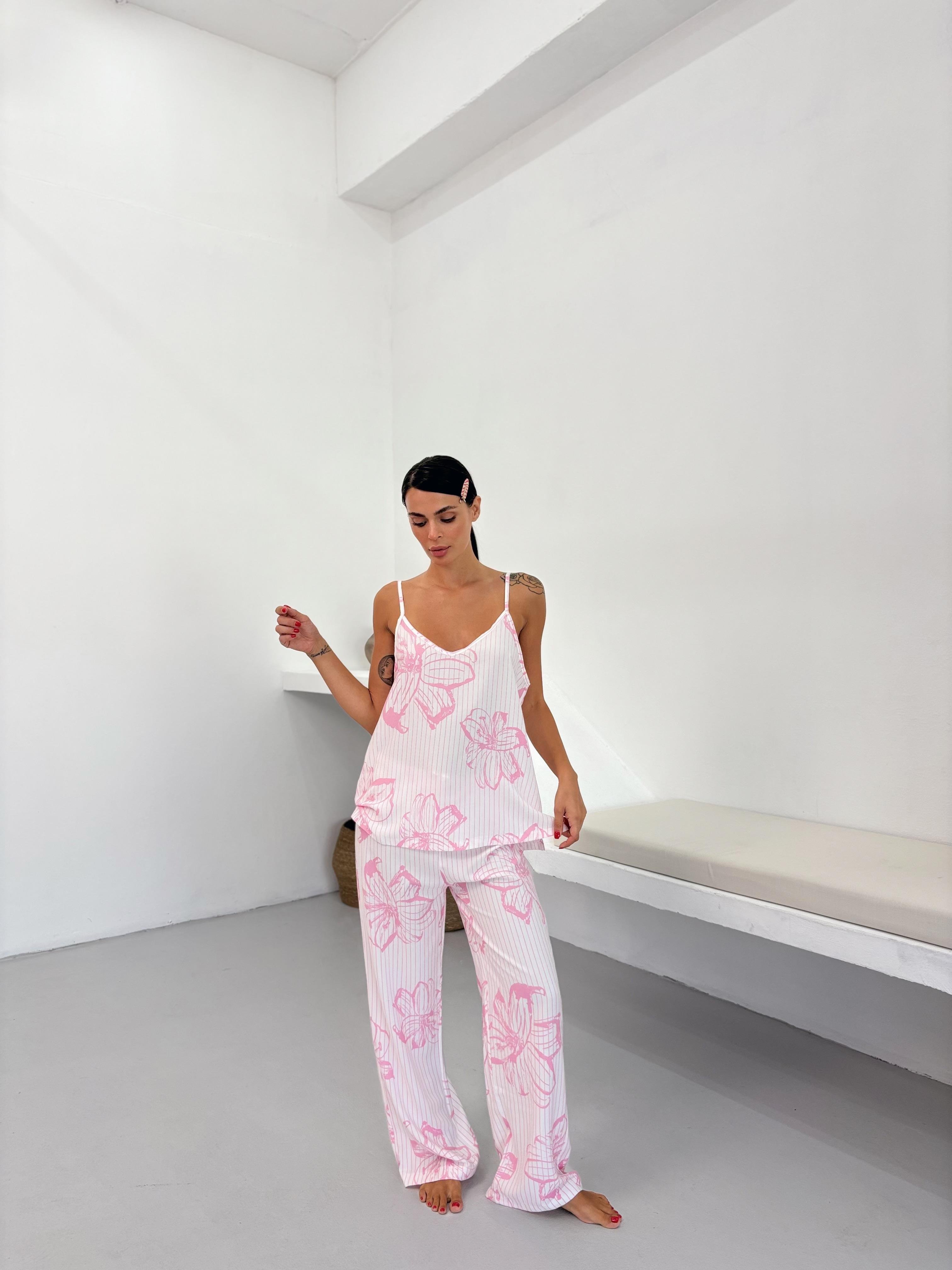 Pembe Çiçek Desen Ayarlanabilir Askı Pamuklu Atlet (PJS-0002-PMB)