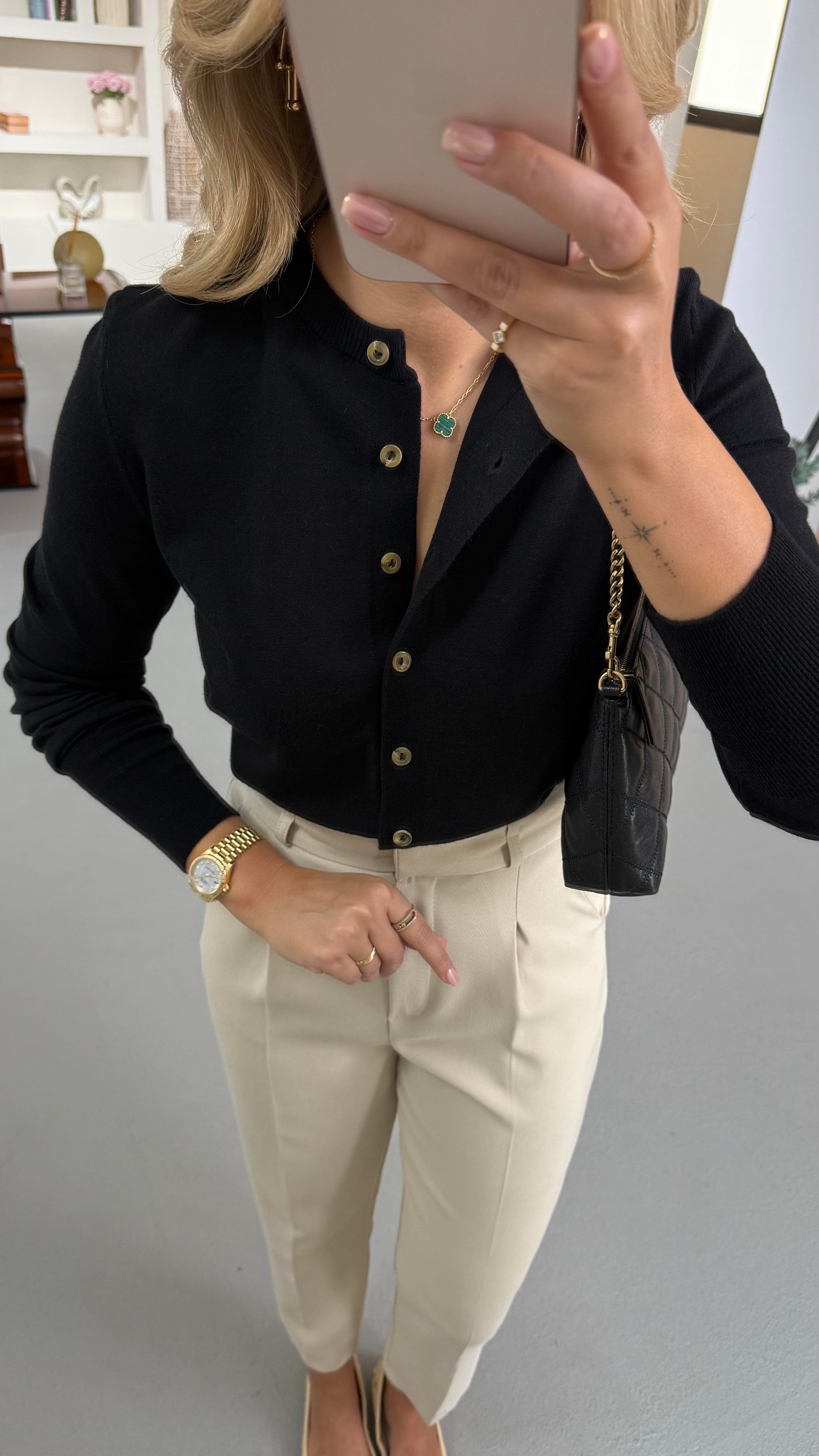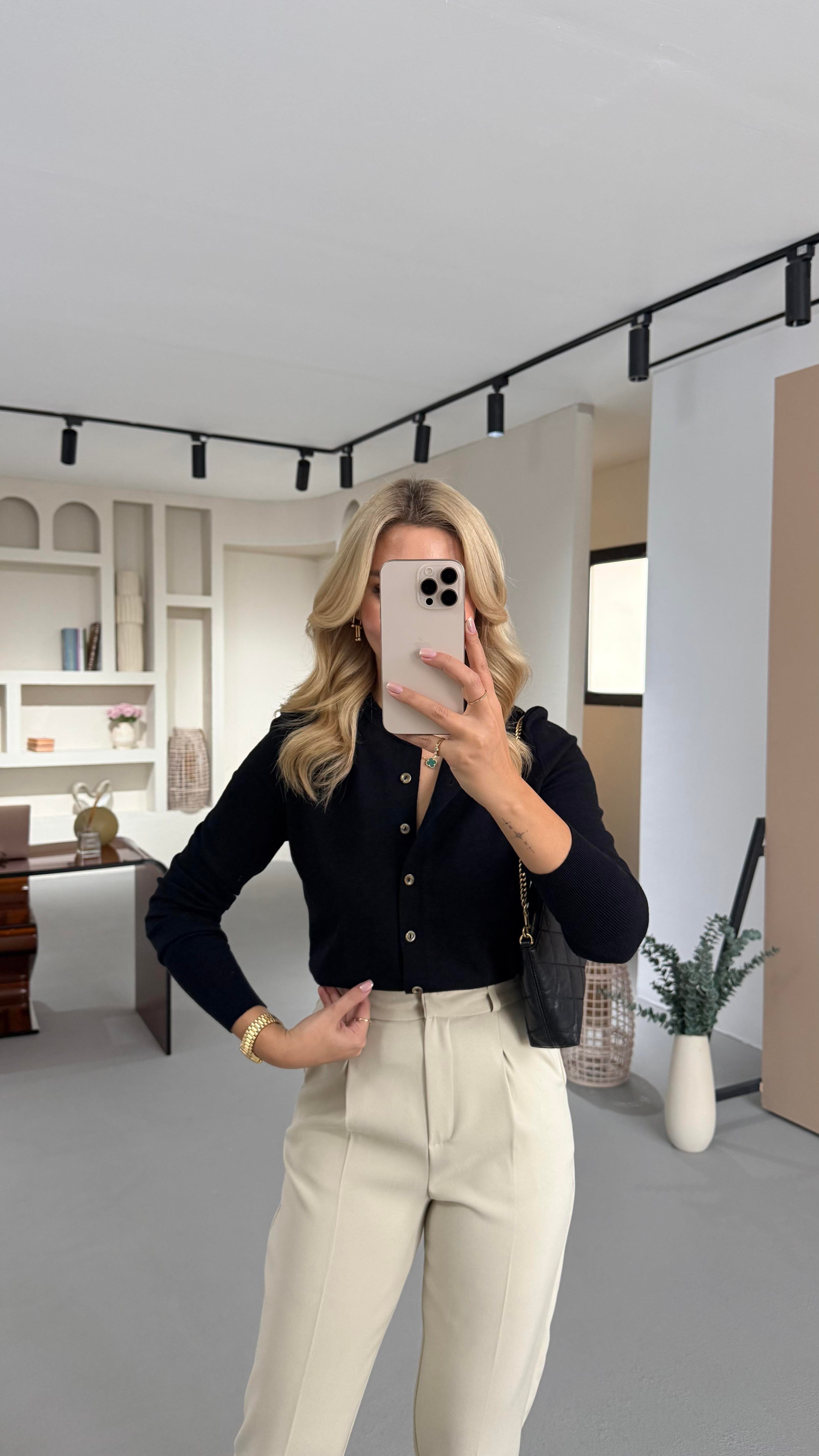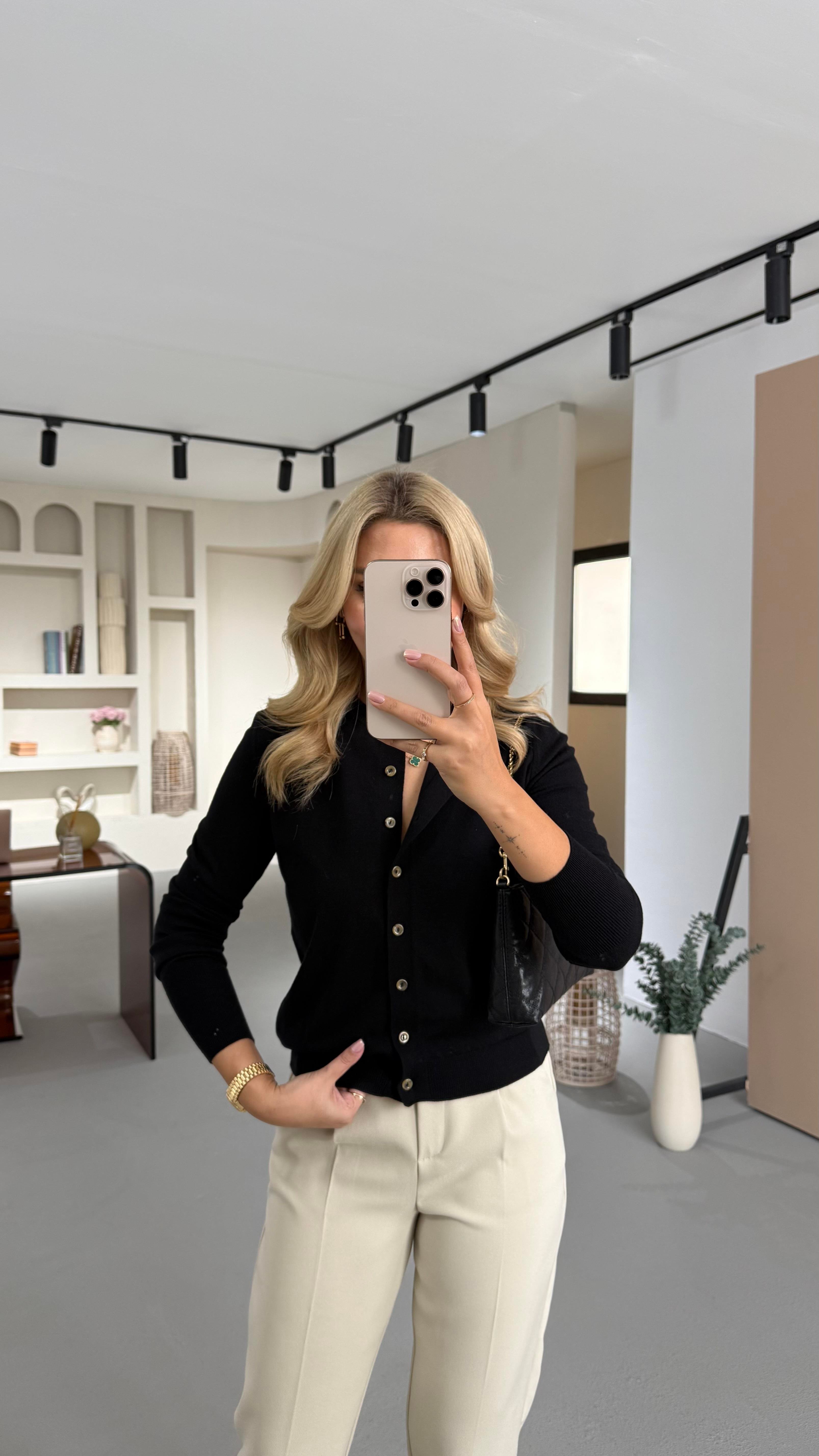 Premium Seri Kemik Düğme Detay Siyah Yumoş Hırka