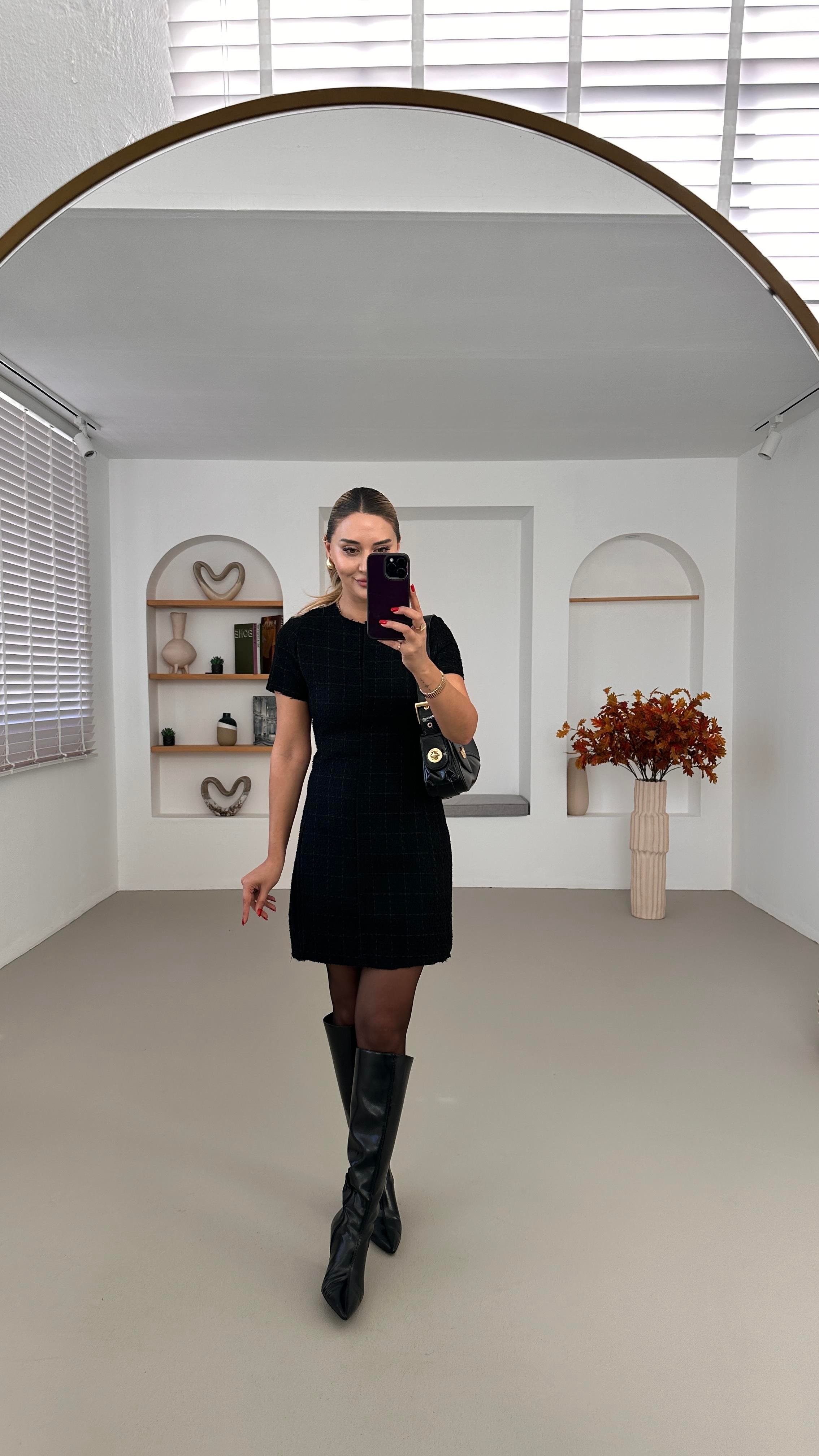 Premium Seri Kısa Kol Siyah Tüvit Elbise