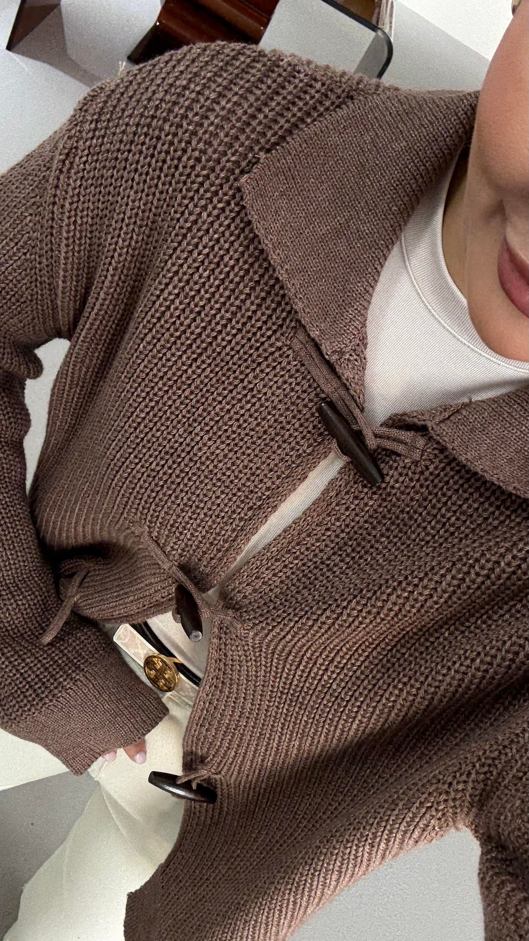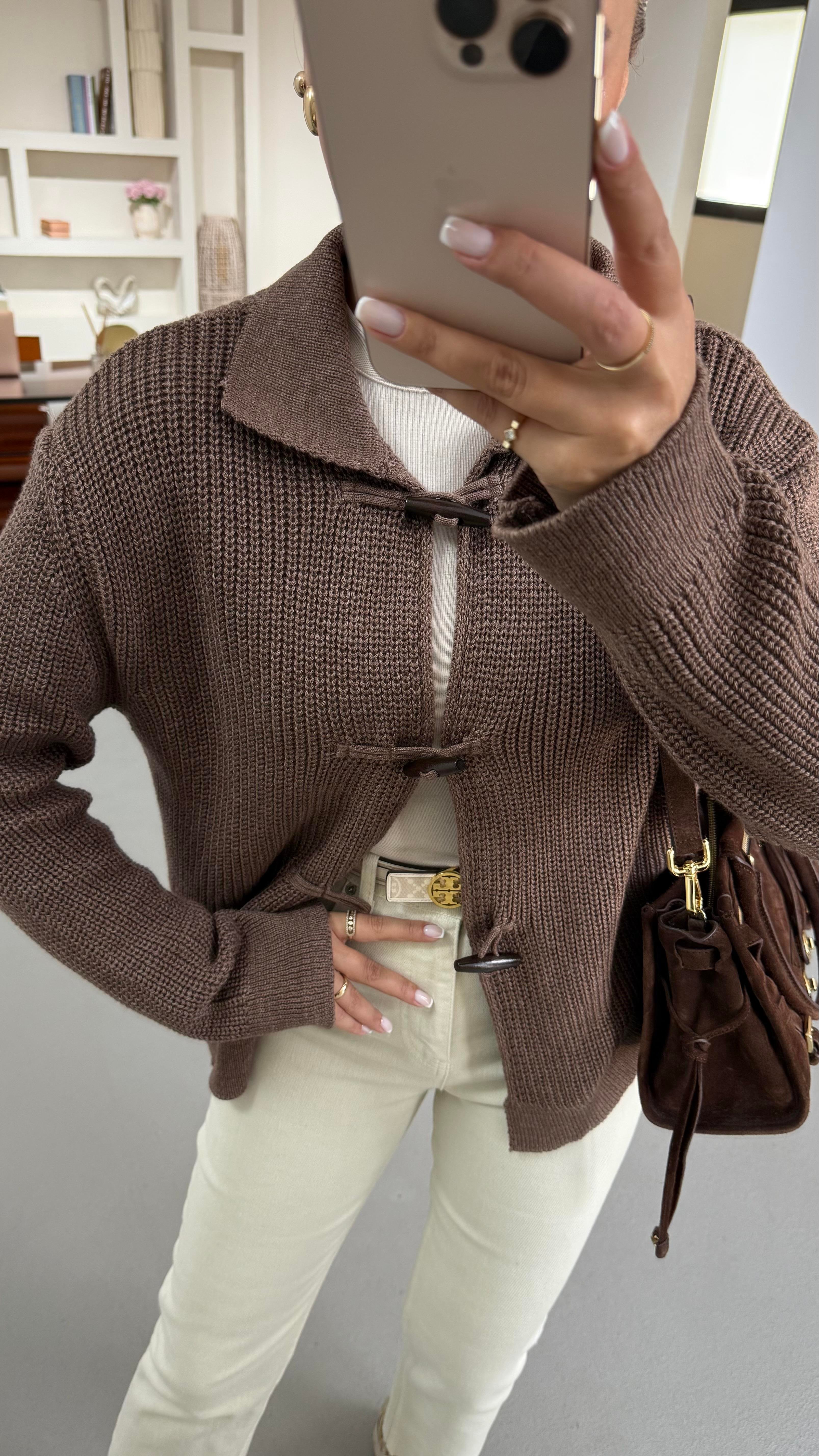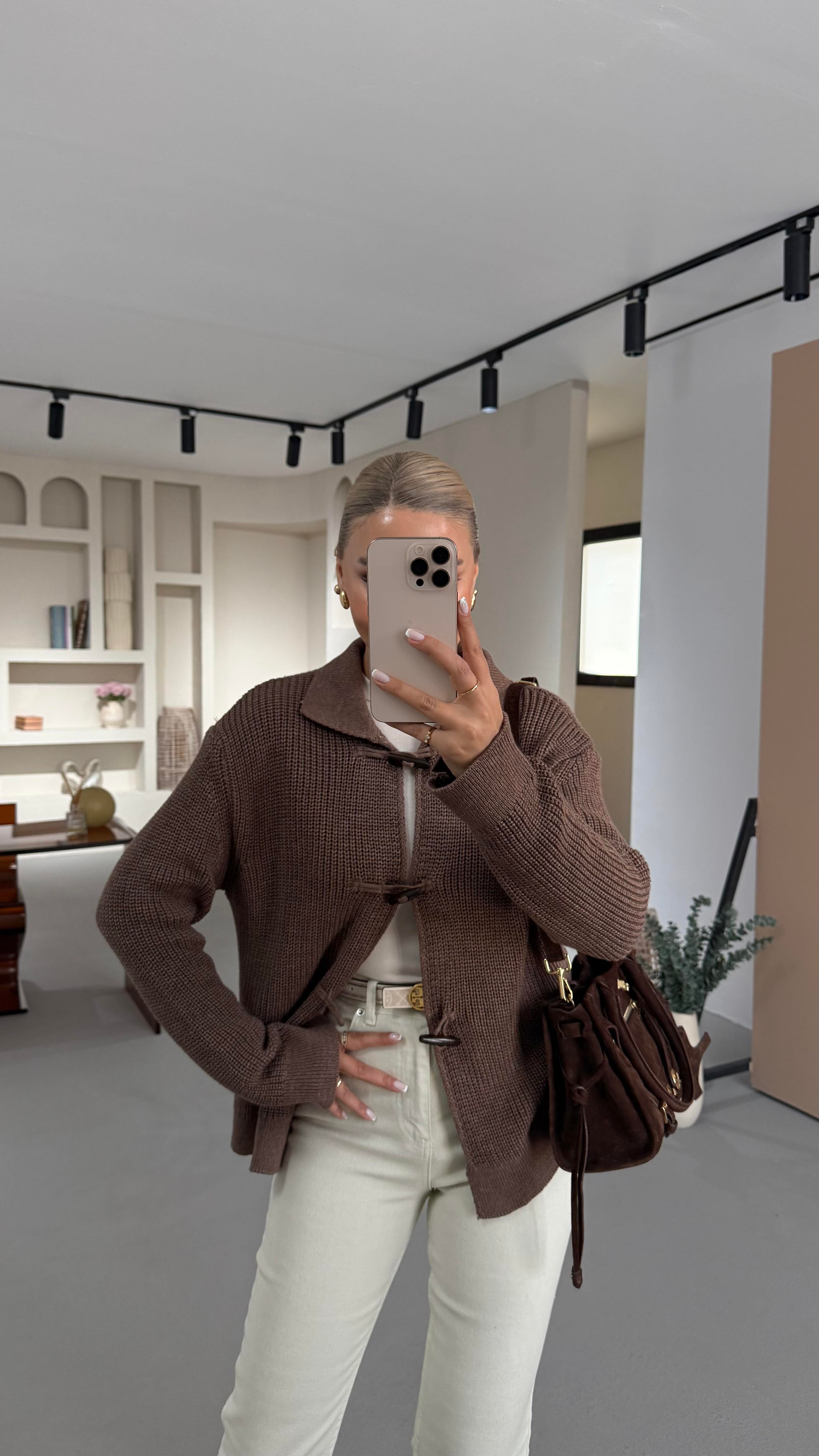 Premium Seri Kordon İlikli Selanik Örgü Kahve Hırka