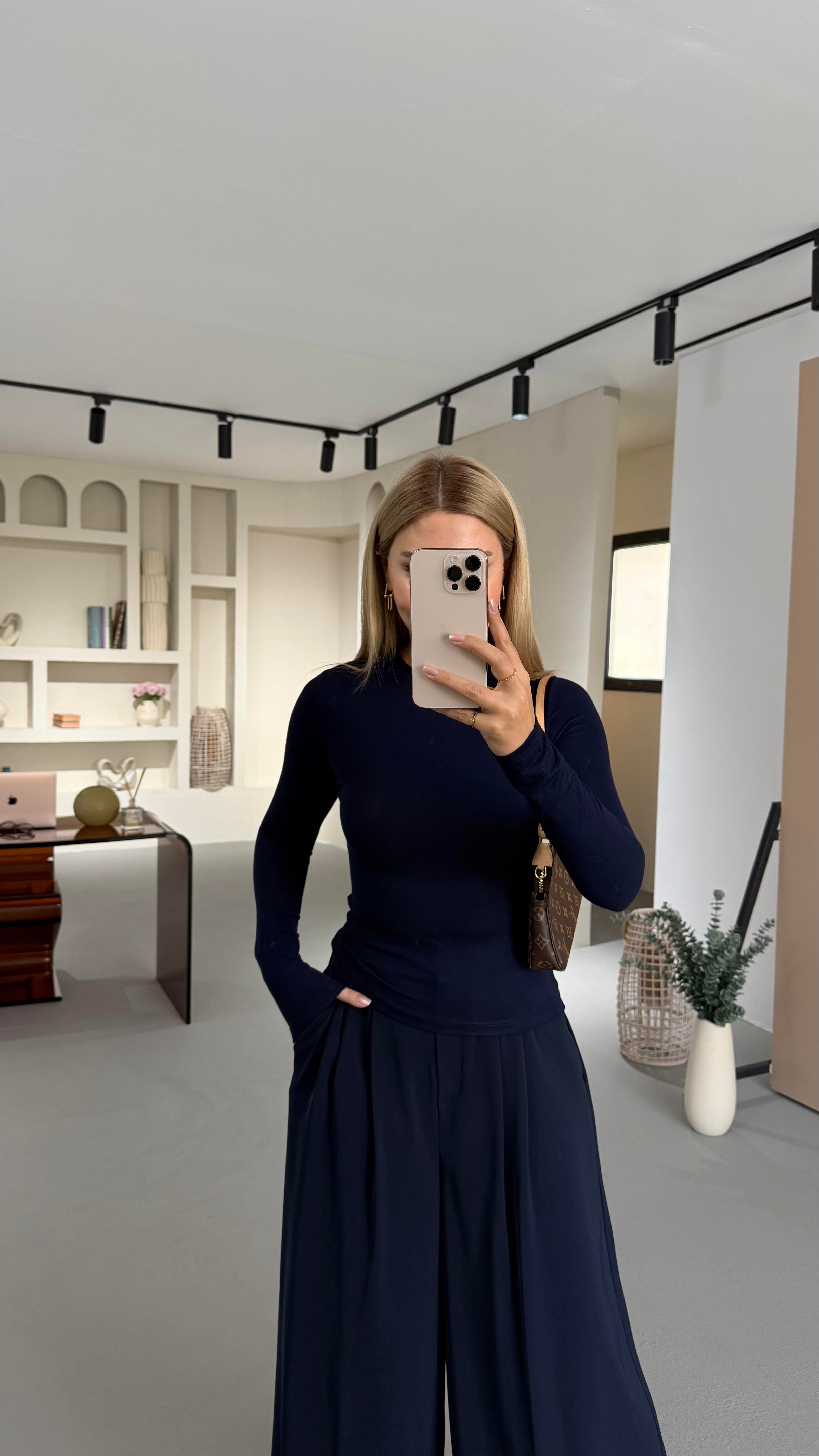 Premium Seri Yumuşak Dokulu Likralı Lacivert Basic Bluz