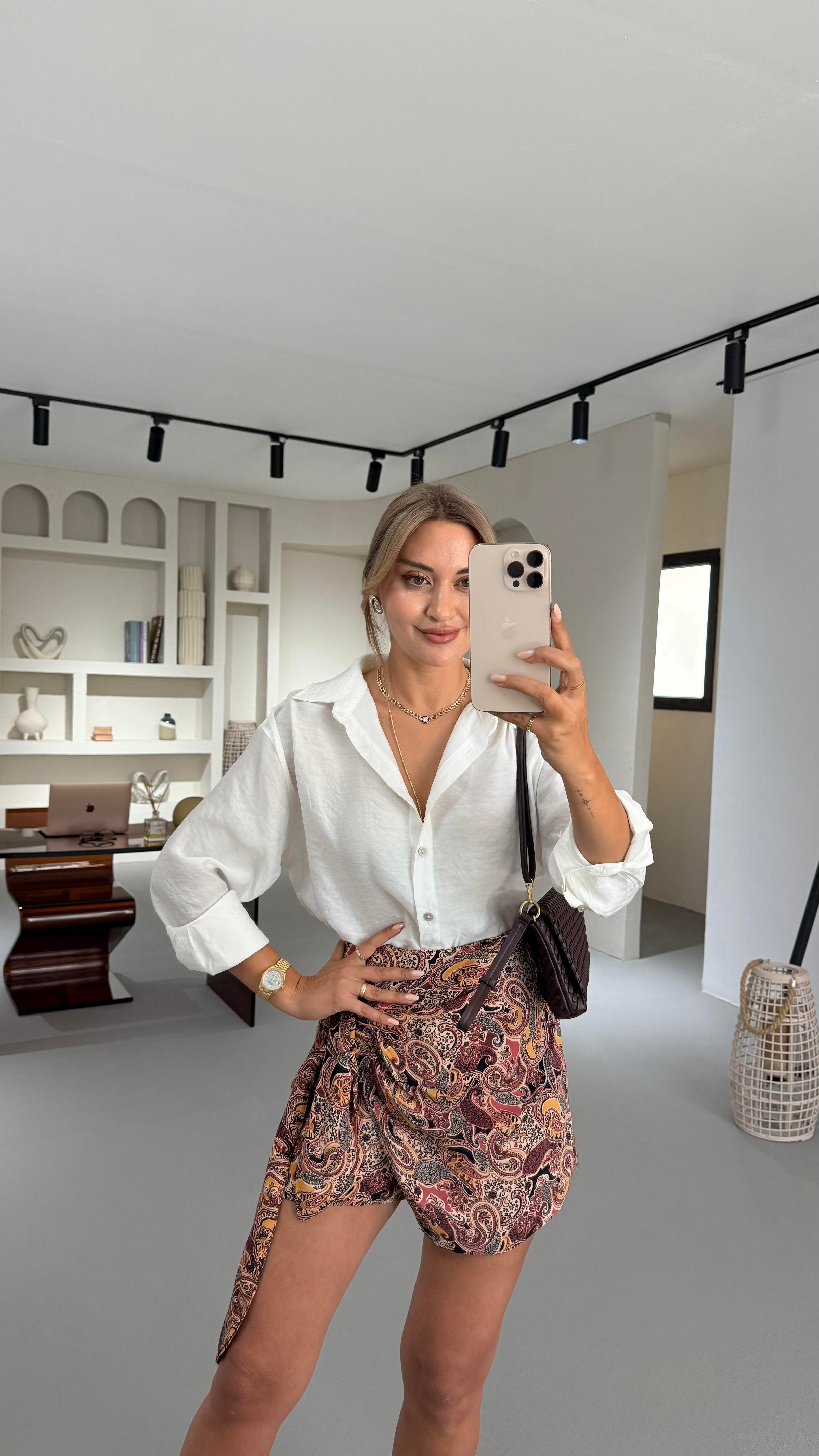 Şal Desen Kuşaklı Şort Etek (ETK-0246-DSN)
