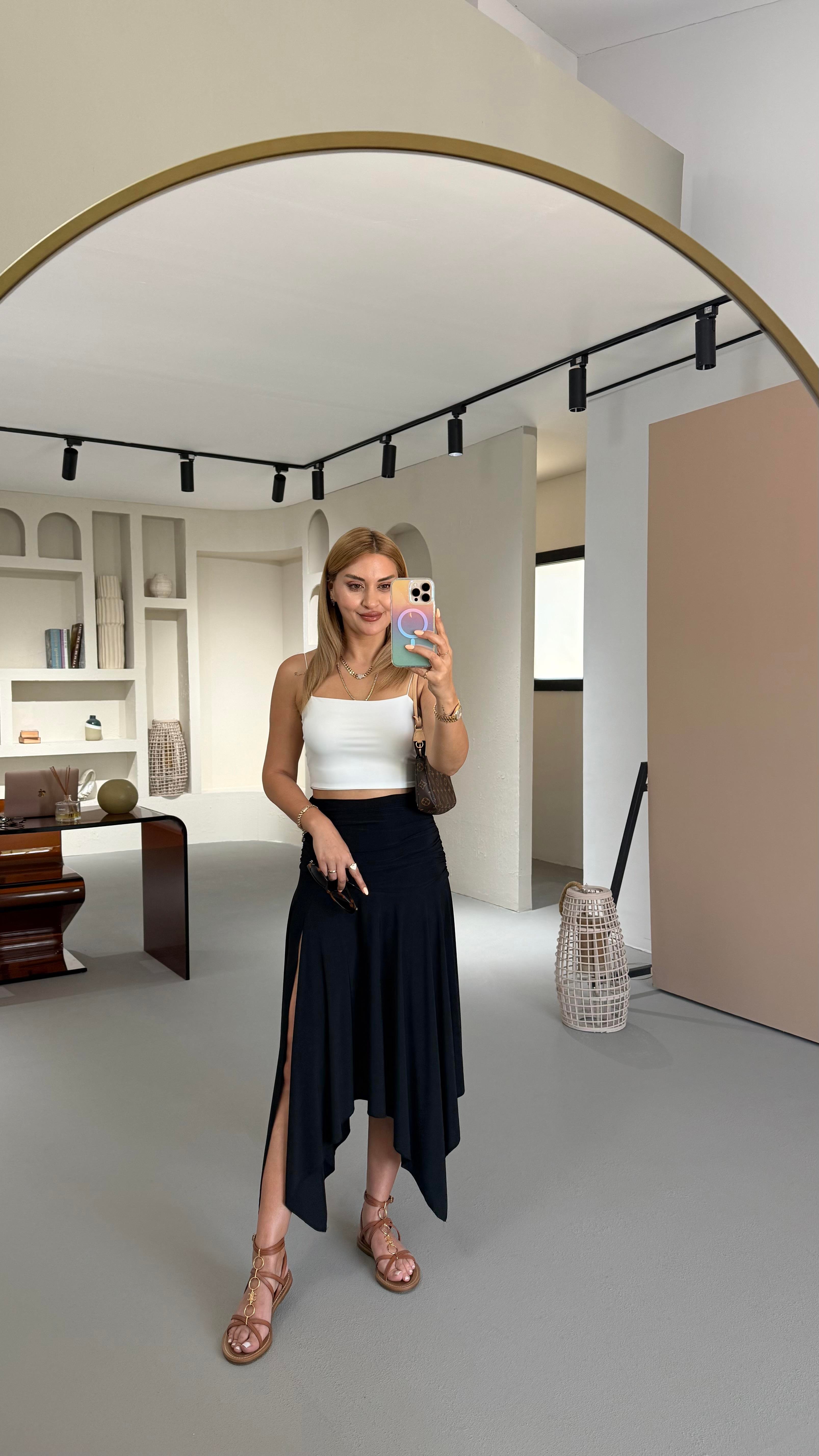Tek Yırtmaç Detay Siyah Gode Etek