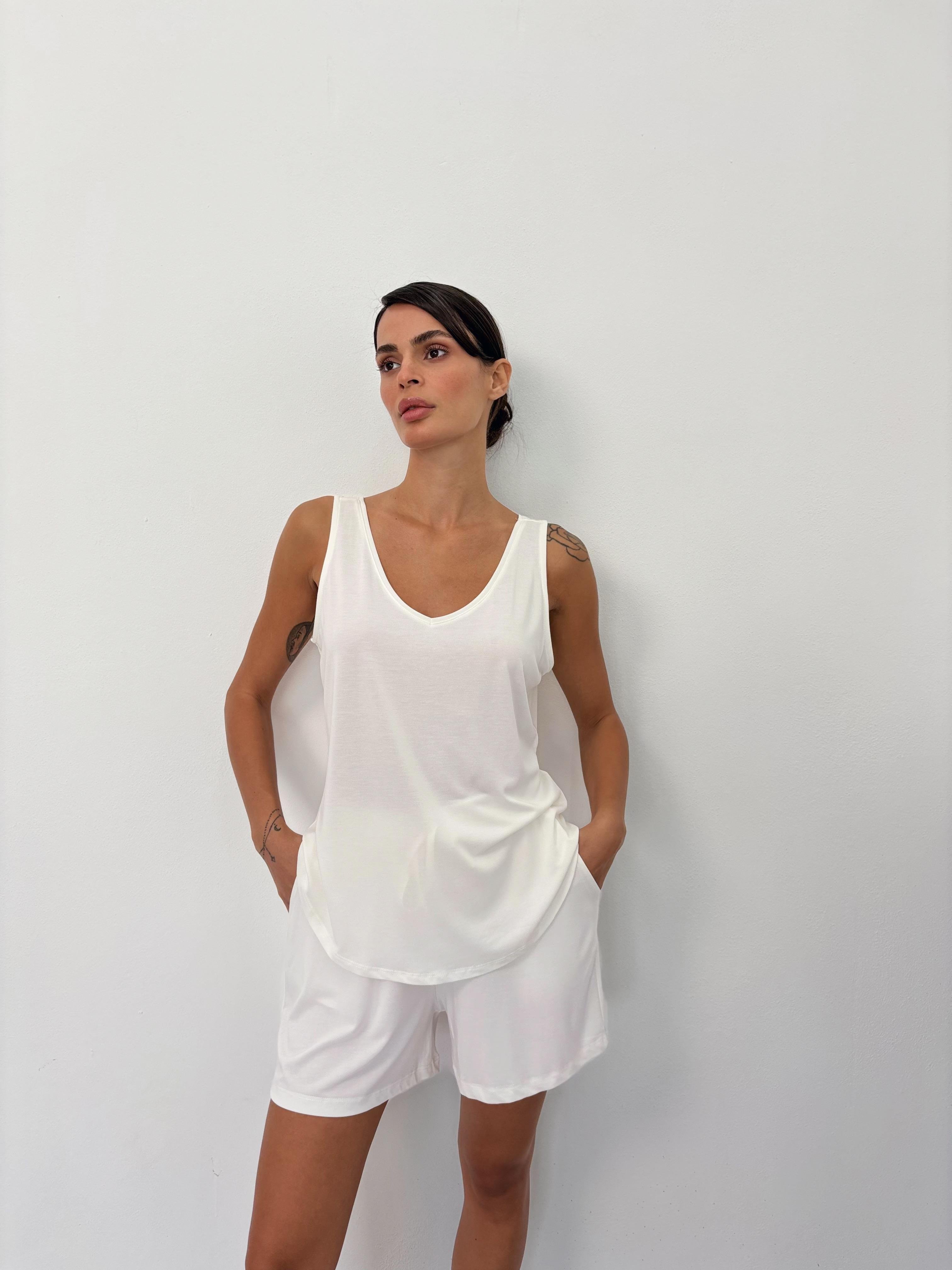 V Yaka Dökümlü Ekru Modal Atlet (PJS-0003-EKR)