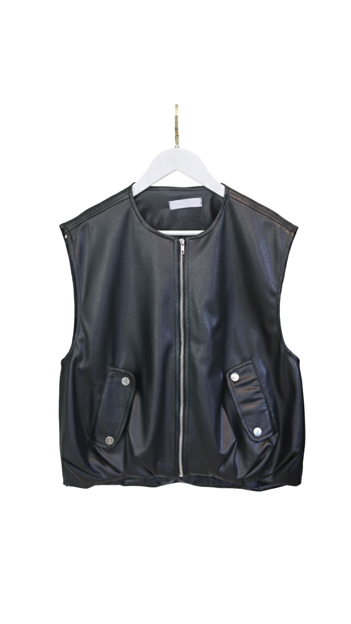 Fermuarlı Siyah Deri Yelek (YLK-0066-SYH)