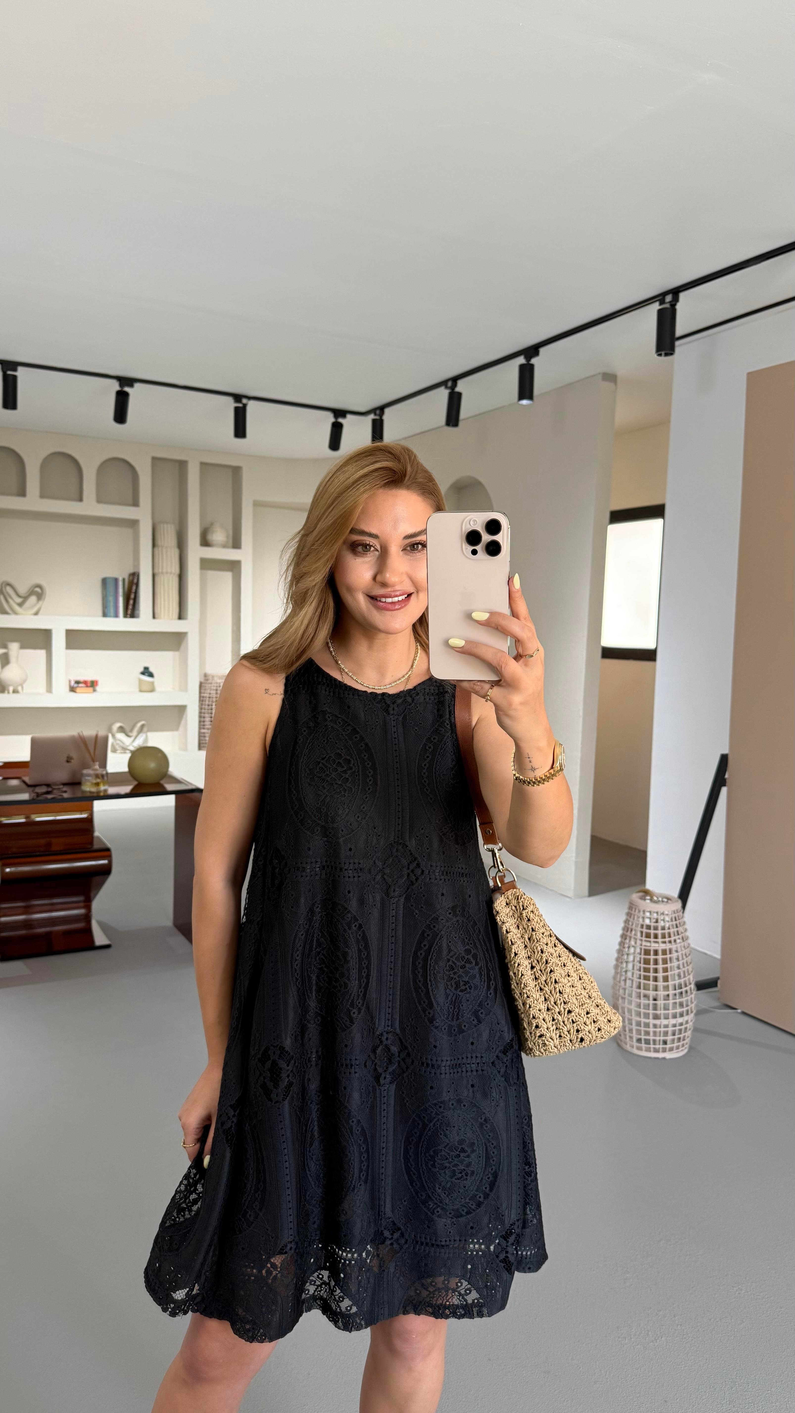 Fisto Detay Astarlı Siyah Elbise (ELB-0690-SYH)