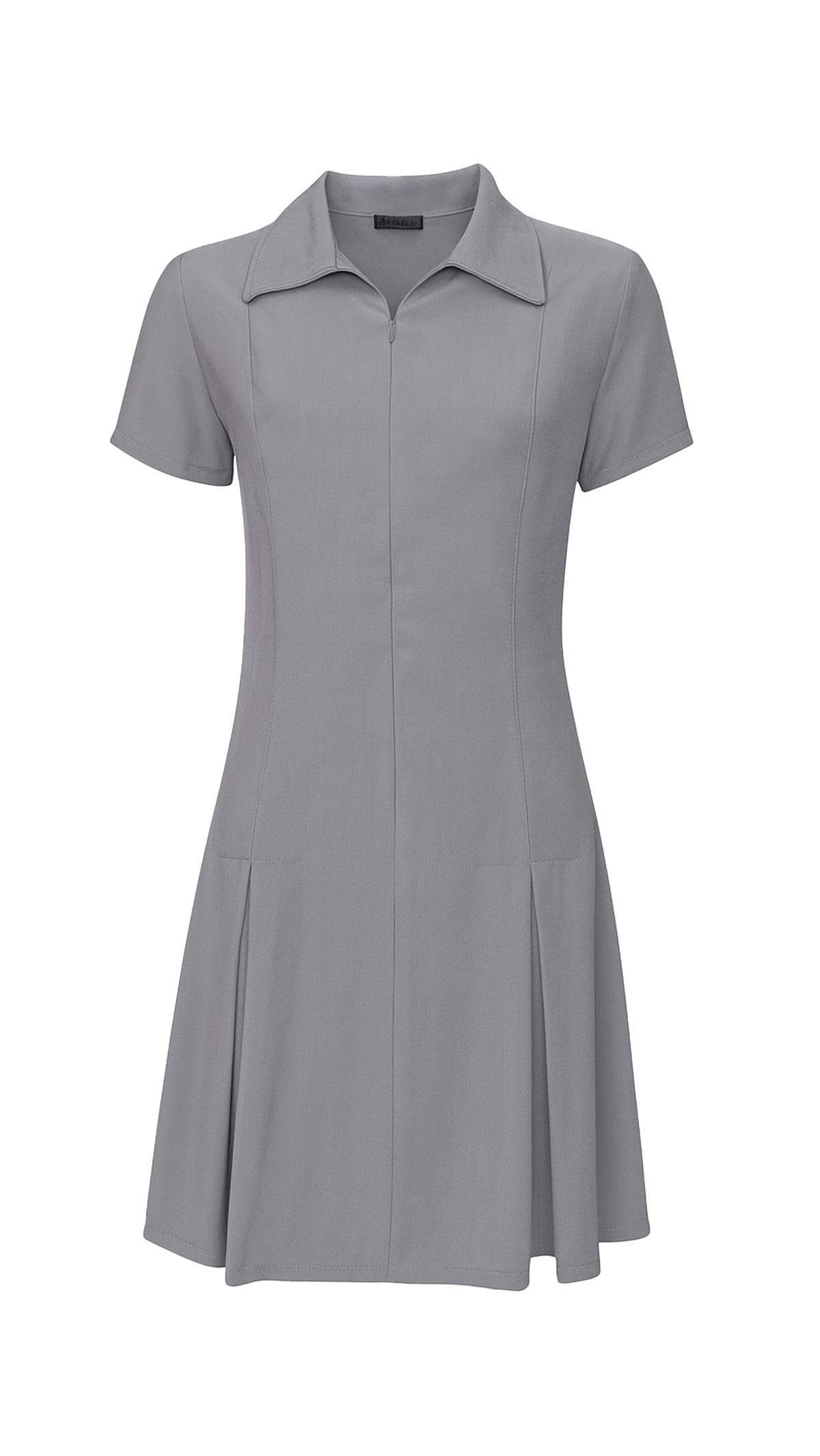 Gömlek Yaka Önden Fermuarlı Gri Tensel Elbise (ELB-0752-GRİ)