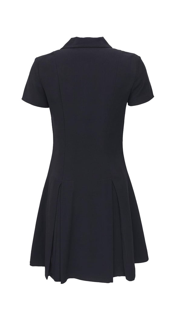Gömlek Yaka Önden Fermuarlı Siyah Tensel Elbise (ELB-0752-SYH)