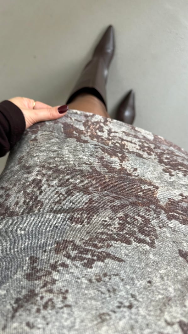 Kahve-Turkuaz Renk Geçişli Mini Denim Etek