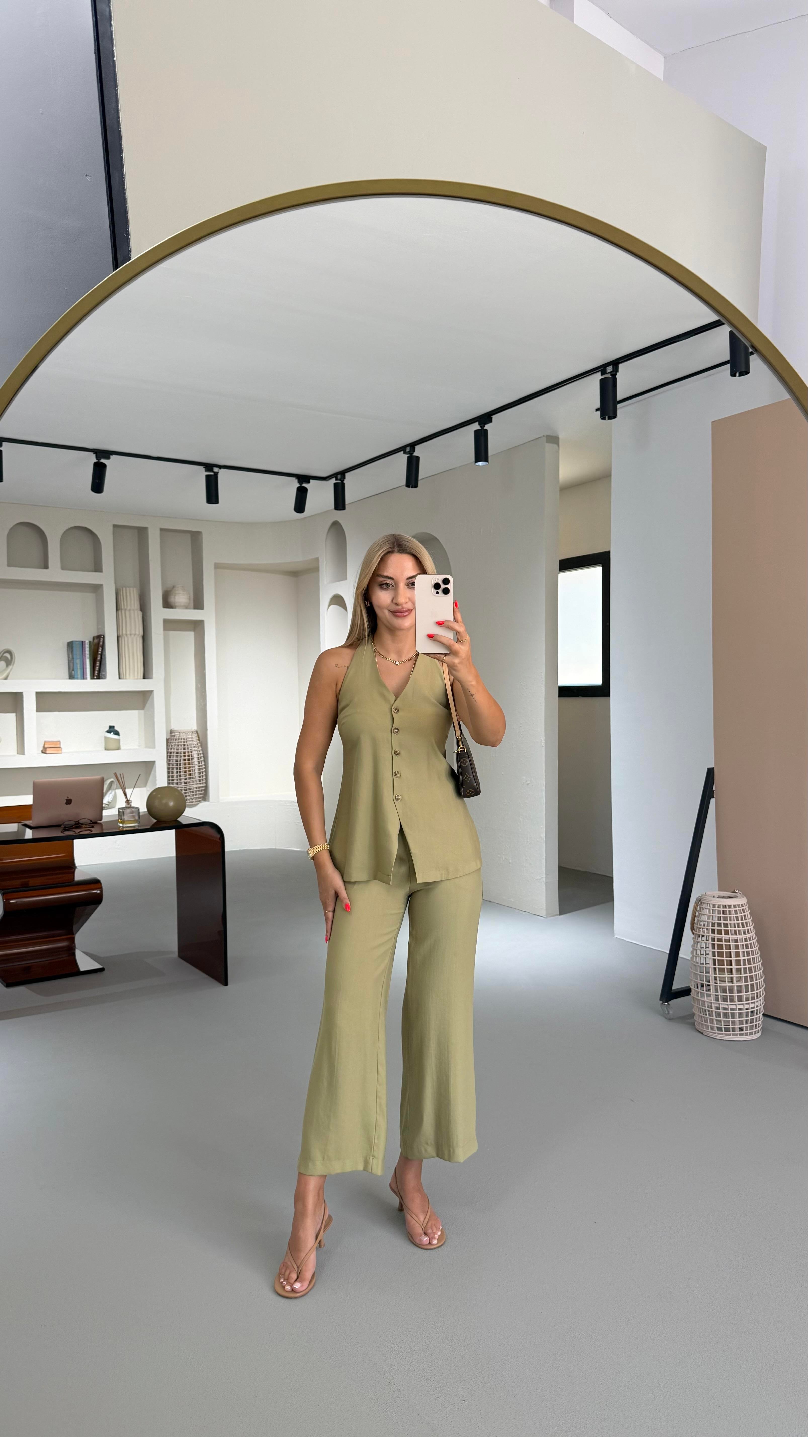 Kemik Düğme Detay Haki Flare Pantolon (PNT-0546-HAKİ)