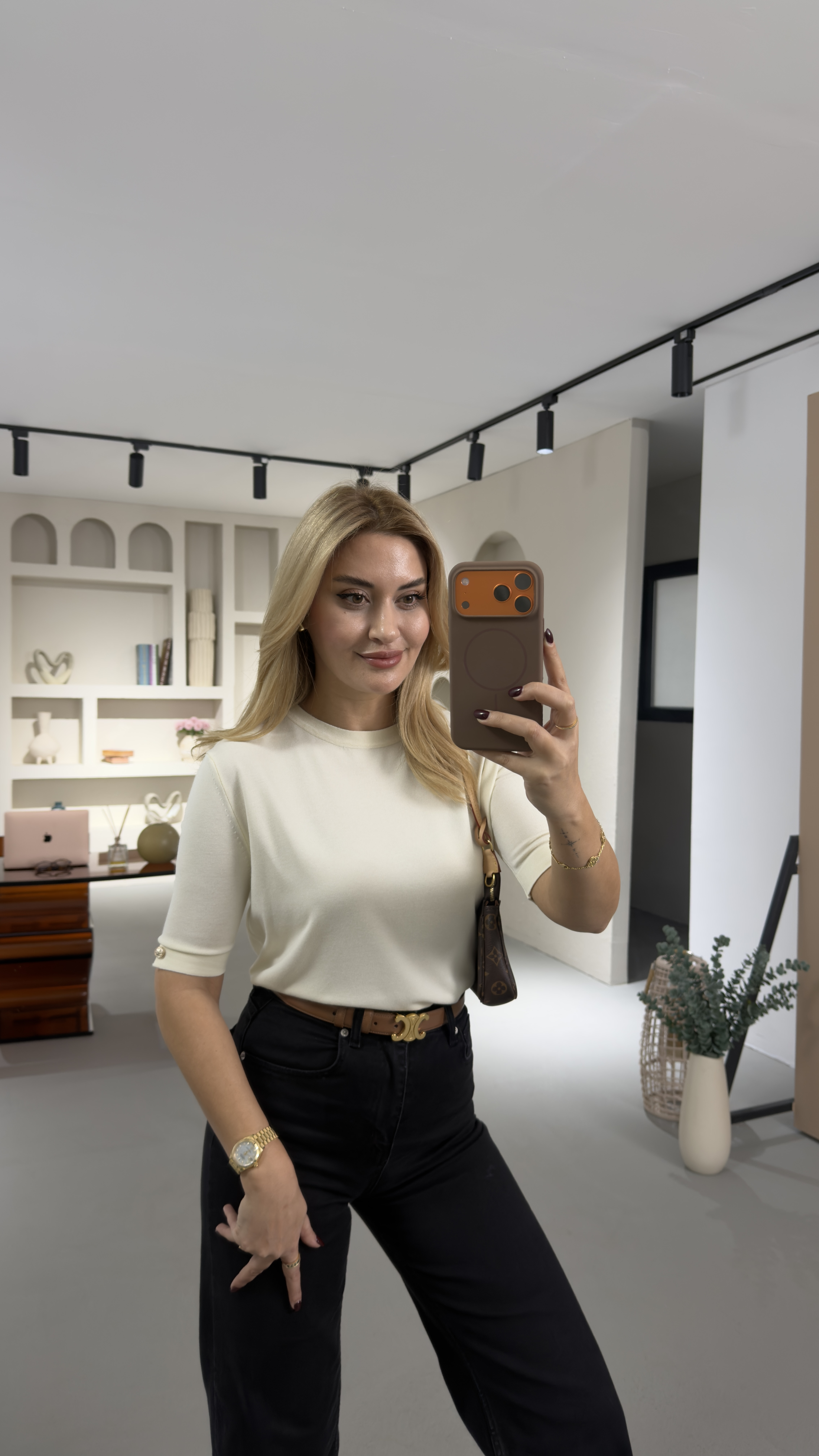 Kol Düğme Detay Ekru Triko