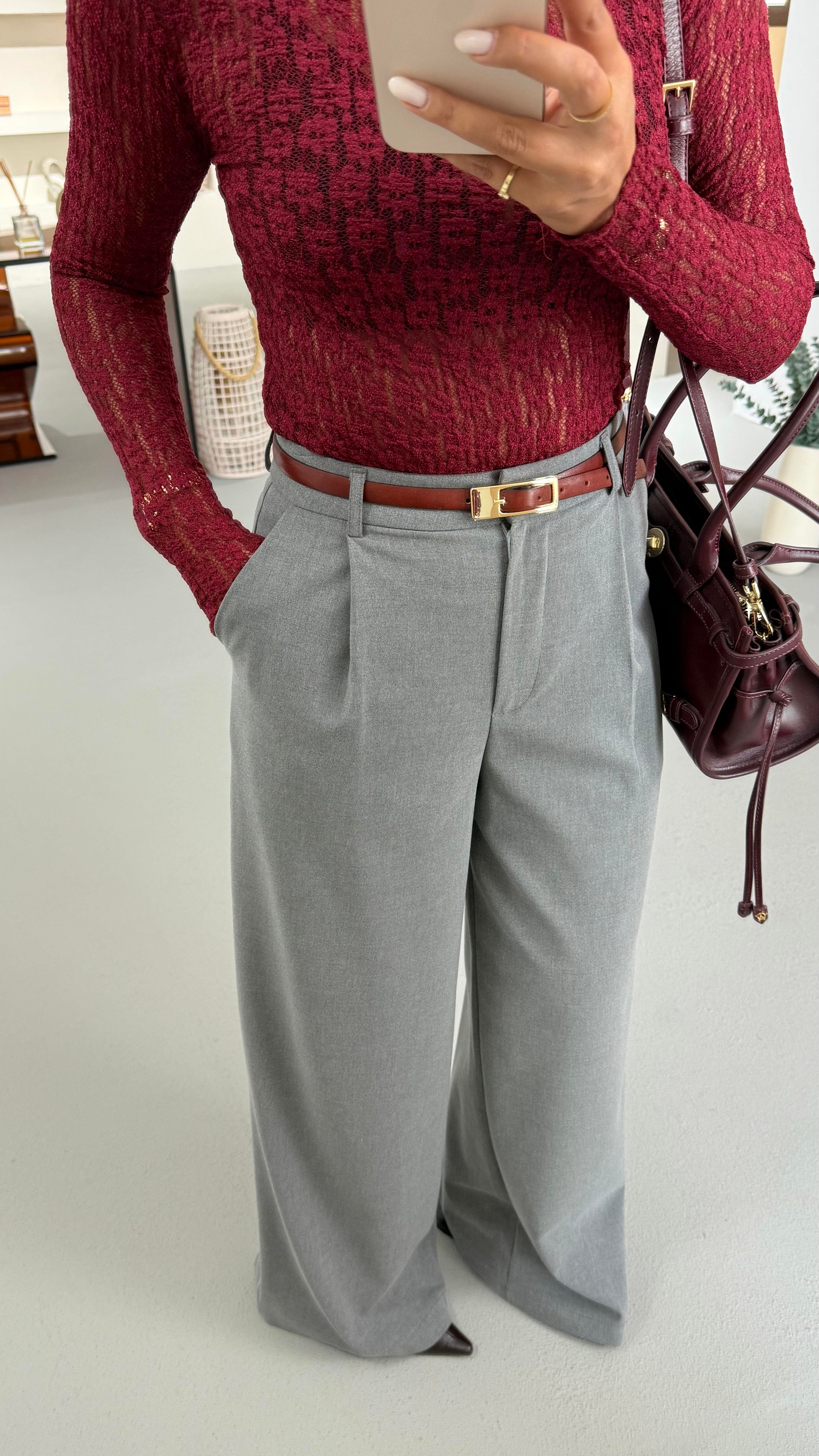Maskülen Gri Palazzo Pantolon (PNT-0557-GRİ)