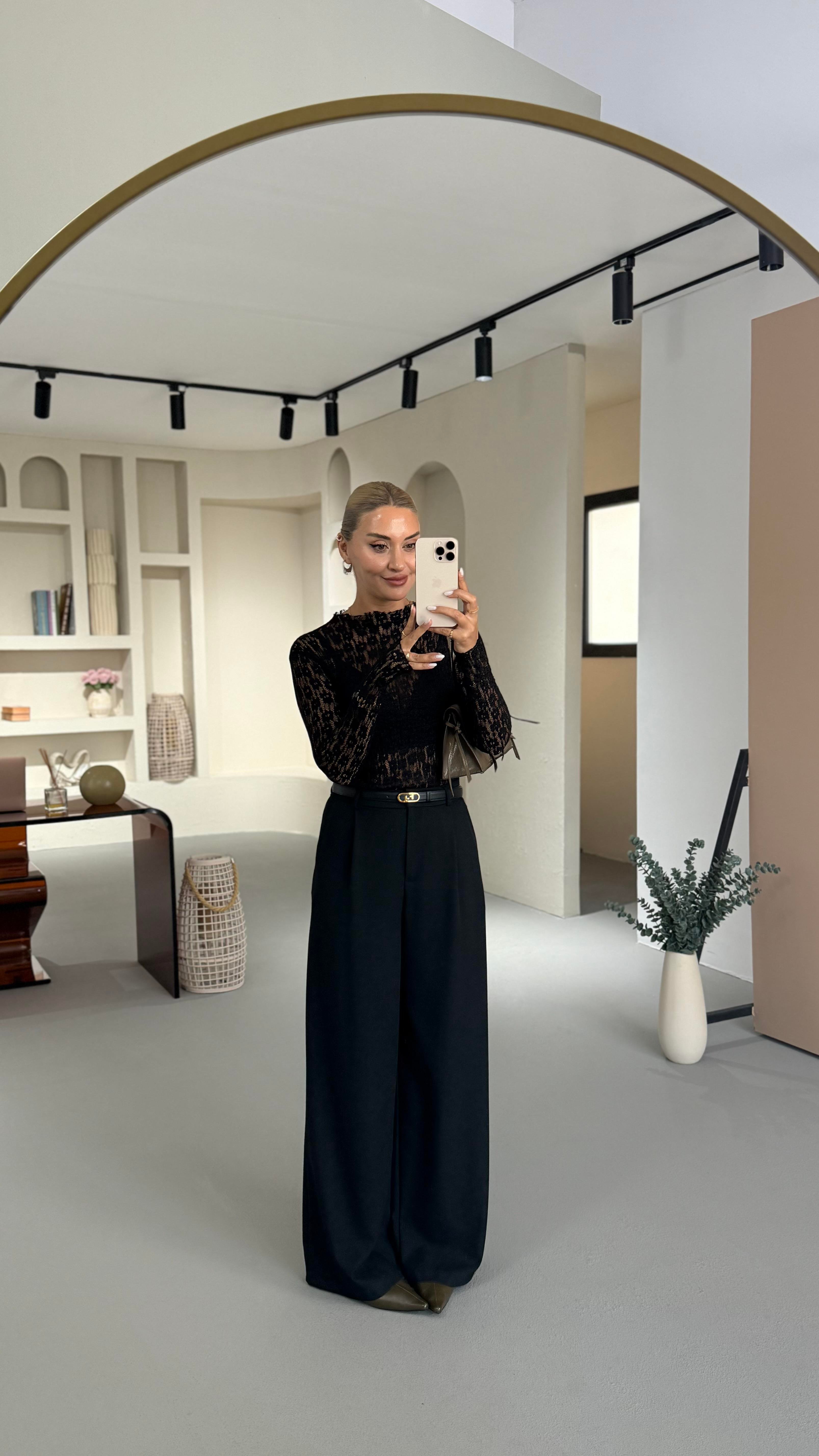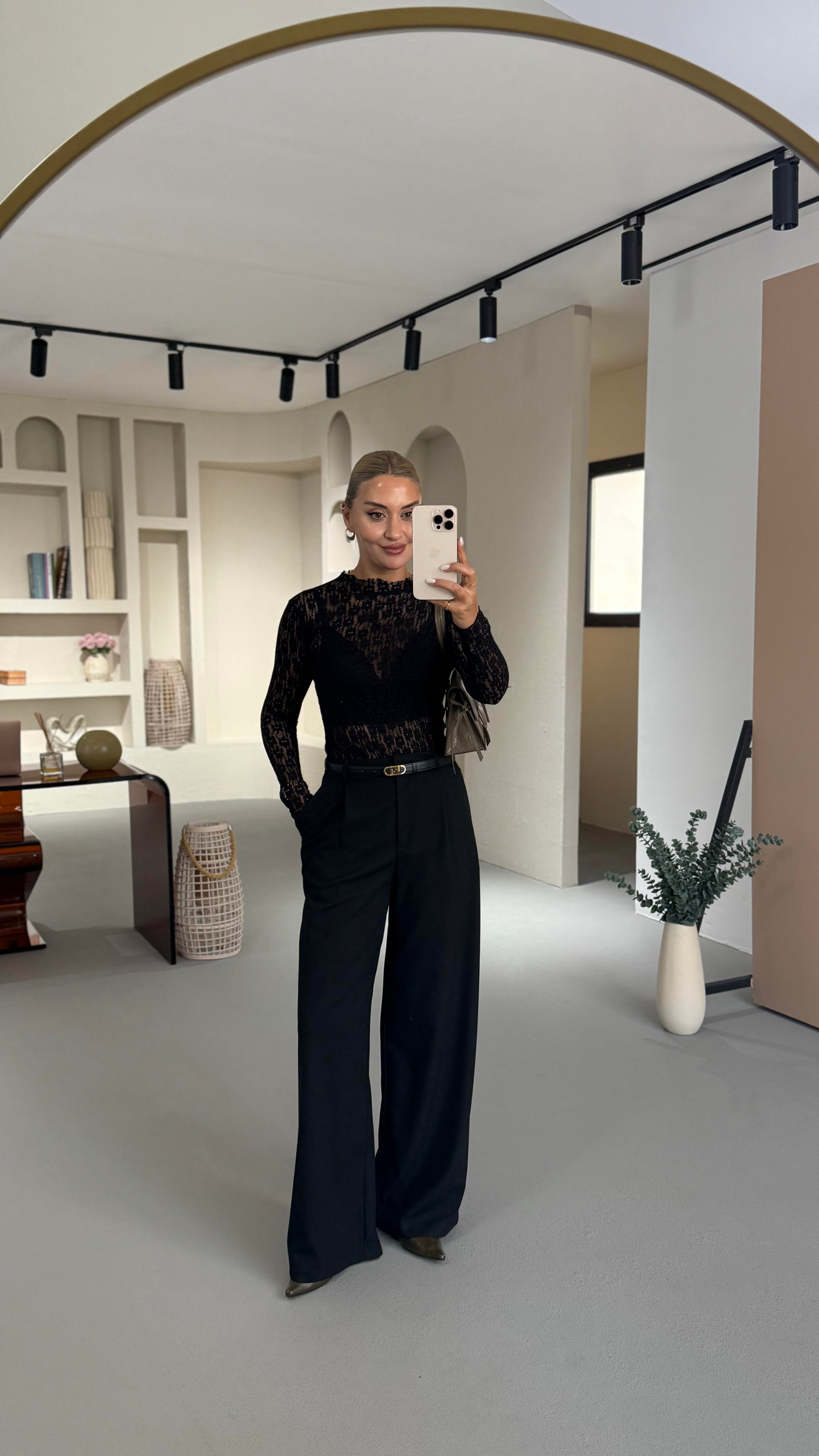 Maskülen Siyah Palazzo Pantolon
