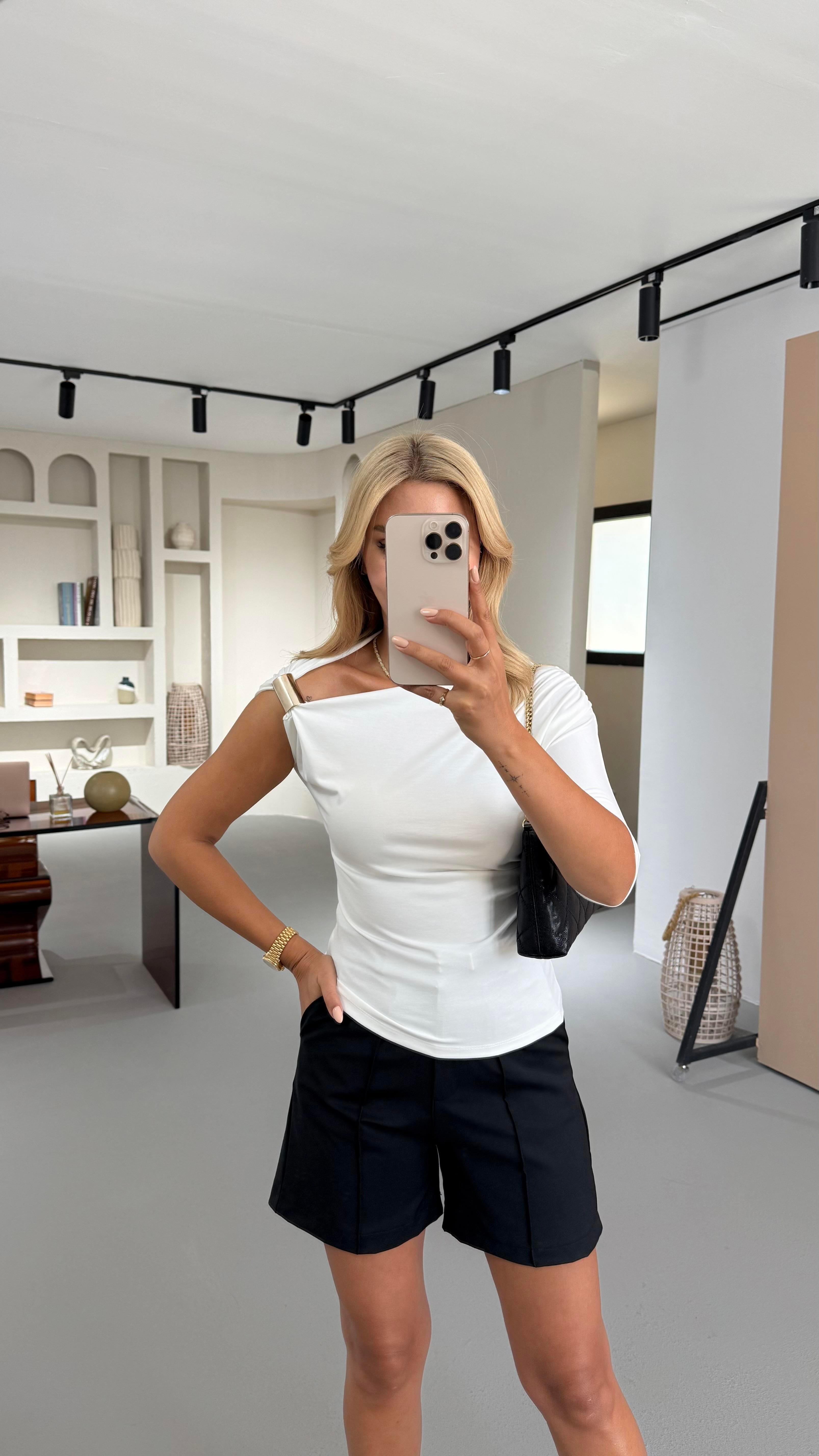Omuz Aksesuar Detay Drapeli Ekru Bluz